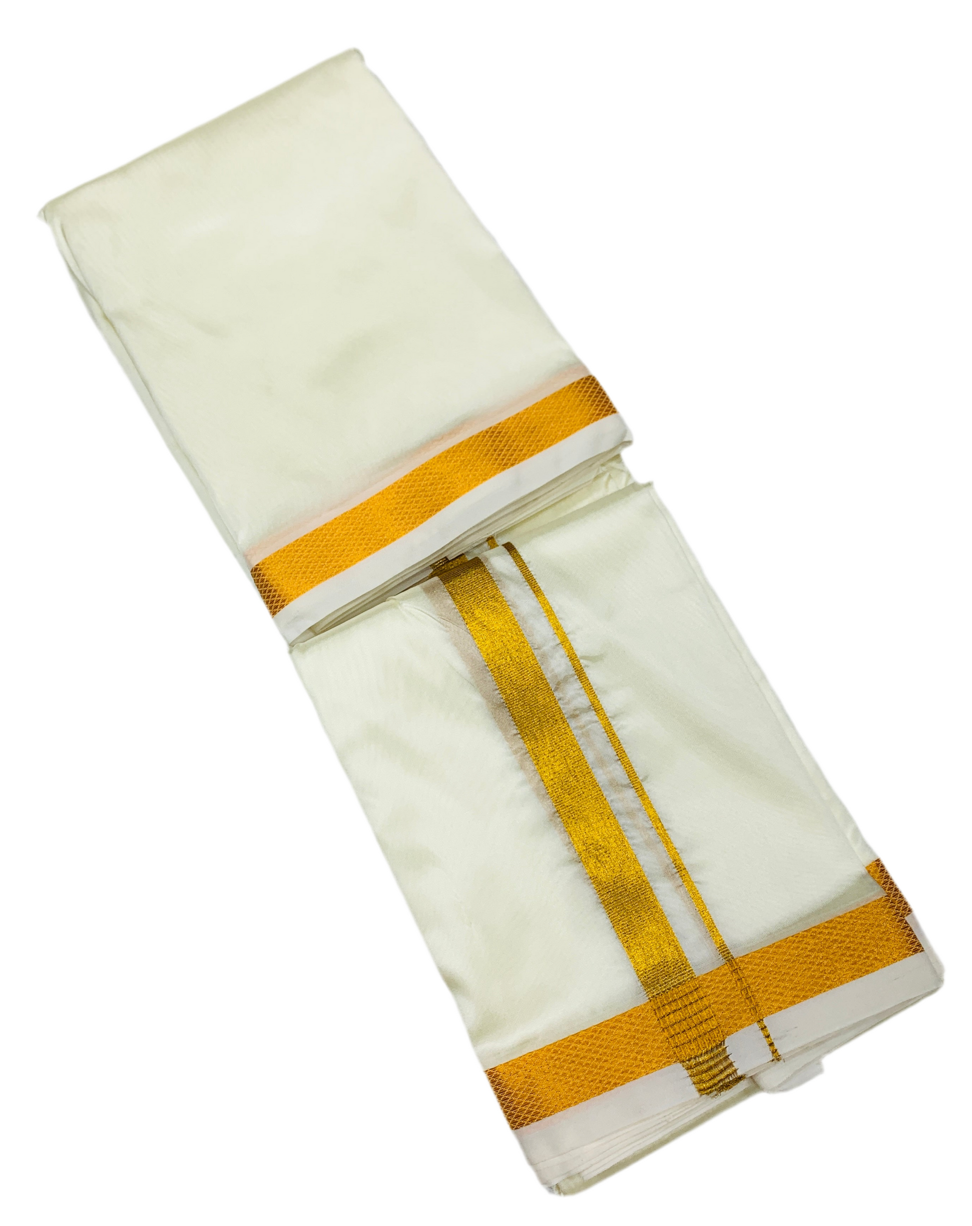 Cream Art silk 8x4 Dhoti and Include Vasthiram . Dry wash only