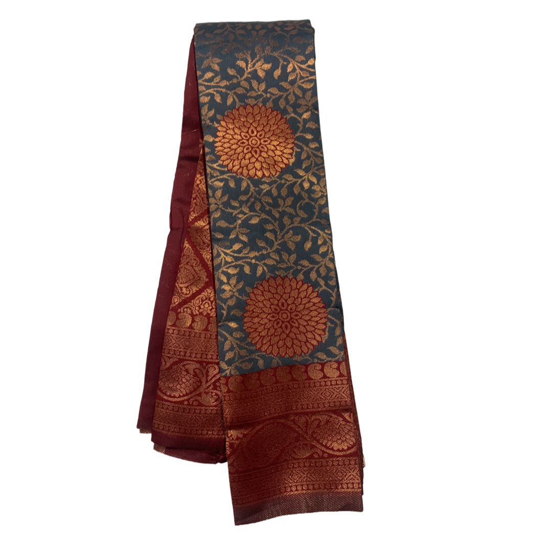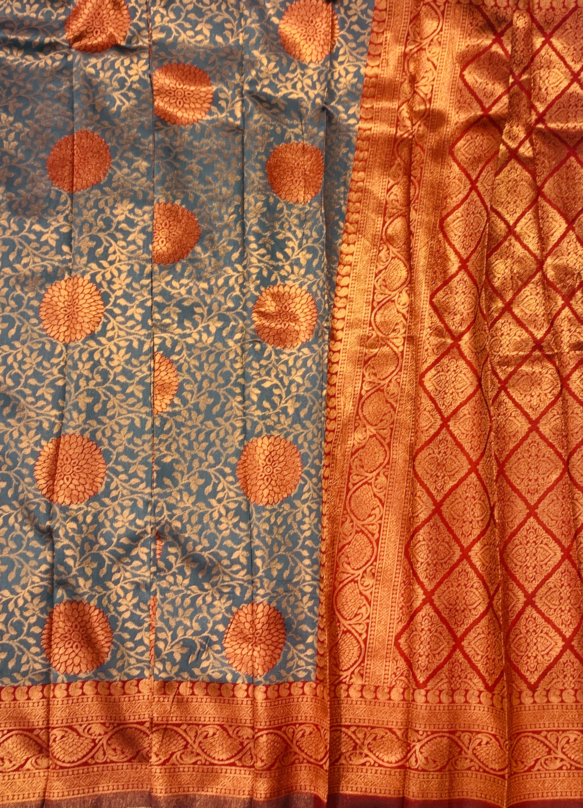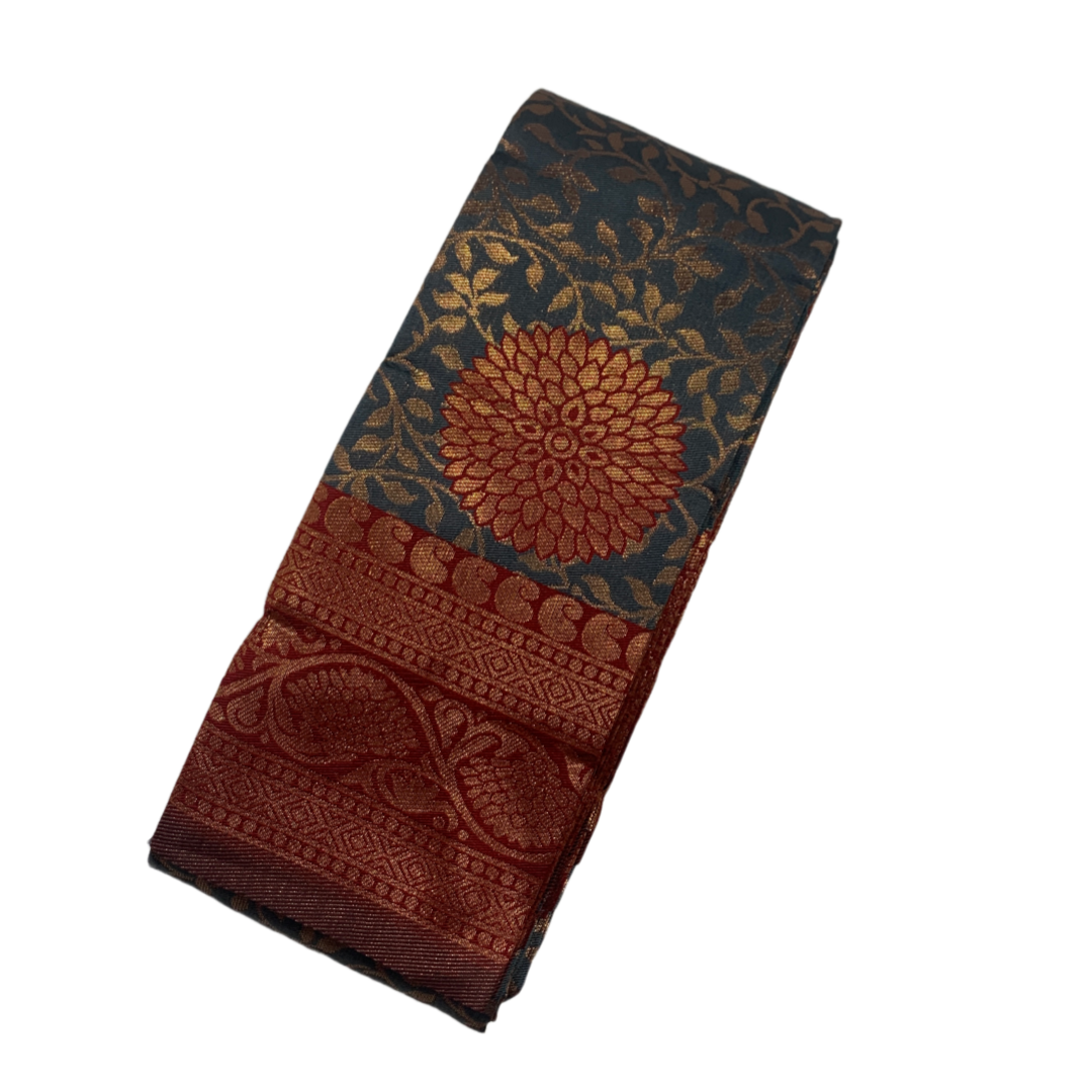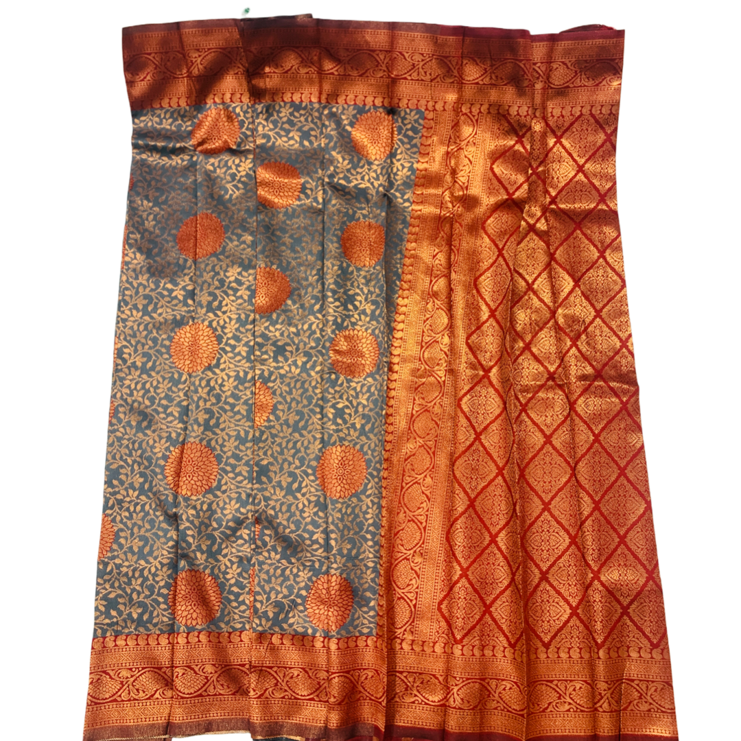 Art Silk Saree Gray Colour with Flower Design. Light weight & easy to wash.