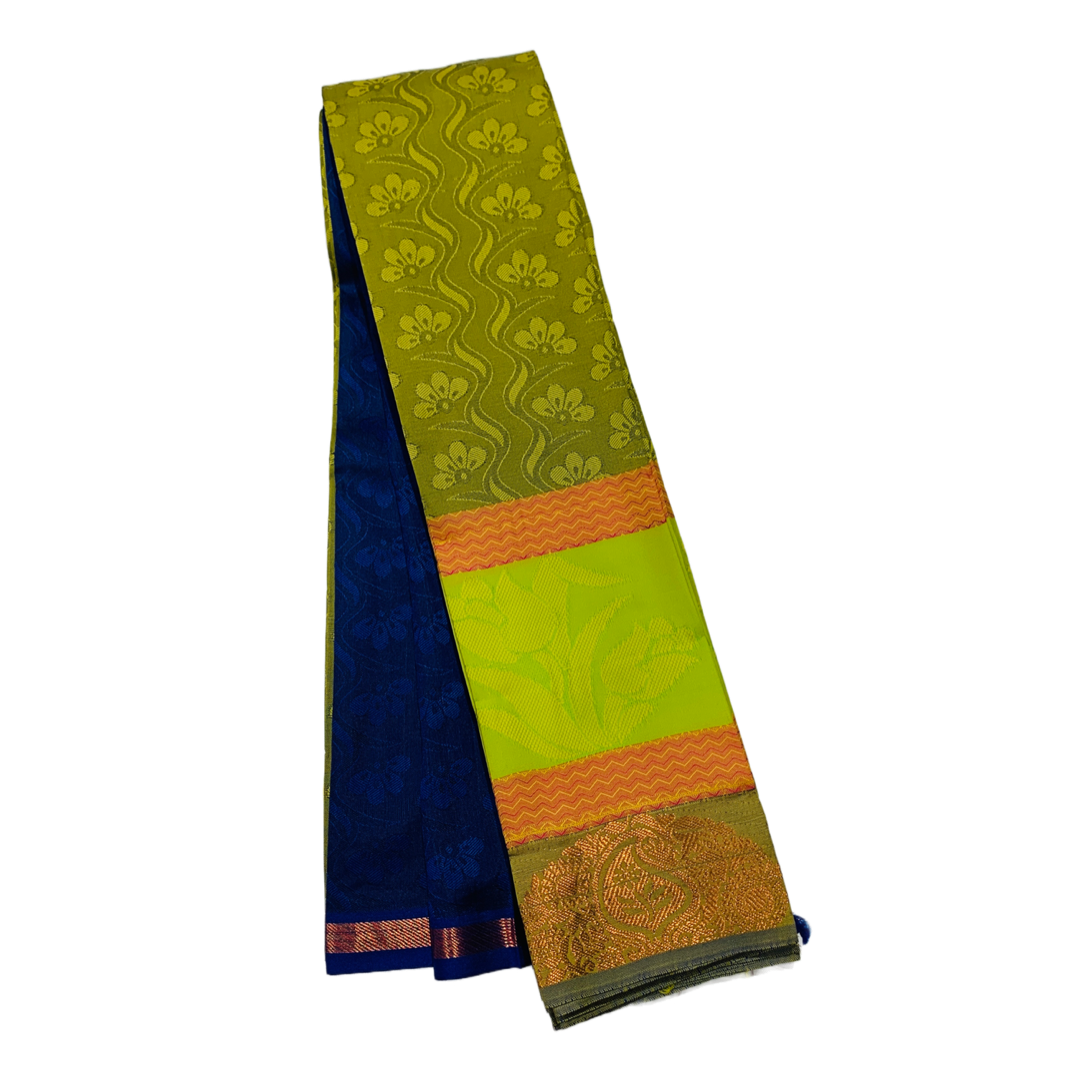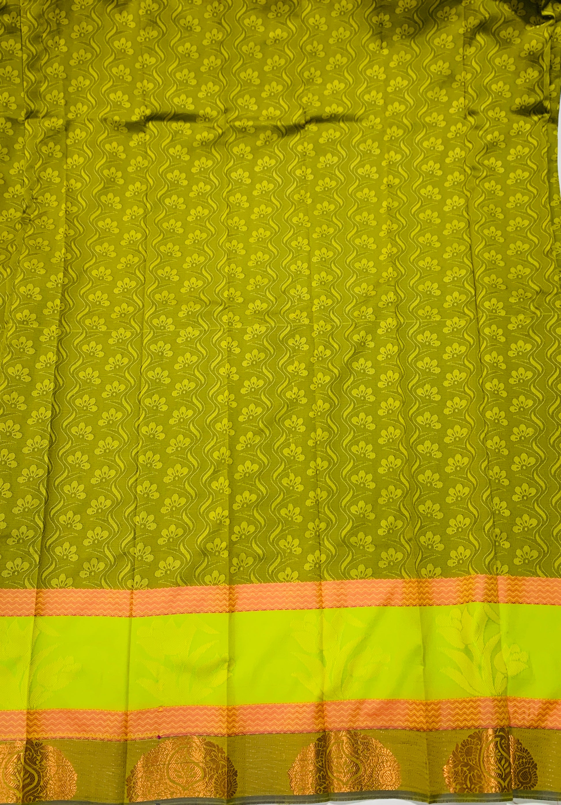 Art Silk Saree Green Colour with Copper Border. Light weight & easy to wash.