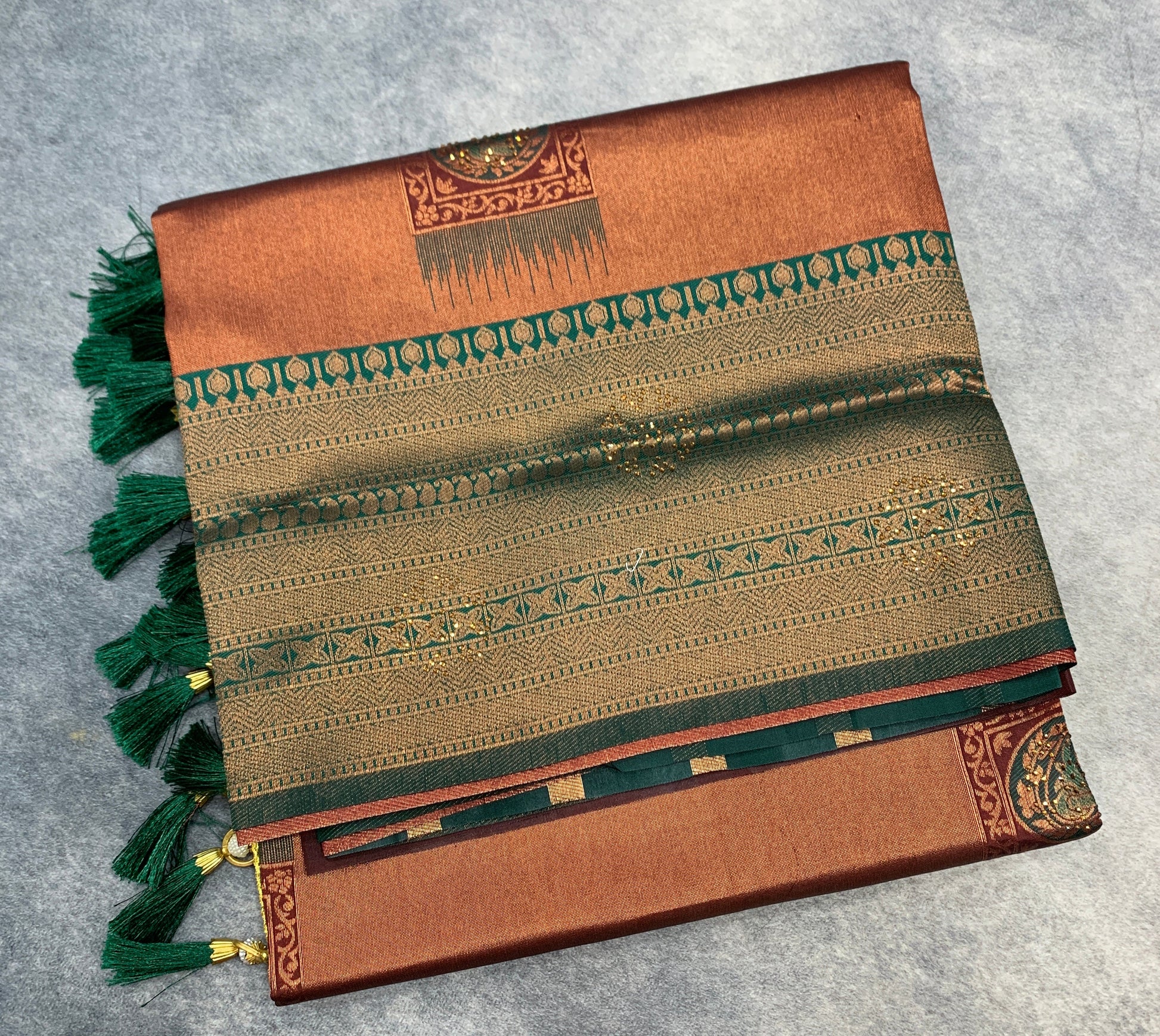 Art Silk Saree Maroon Colour and Stone Work with Green Border. Light weight & easy to wash.