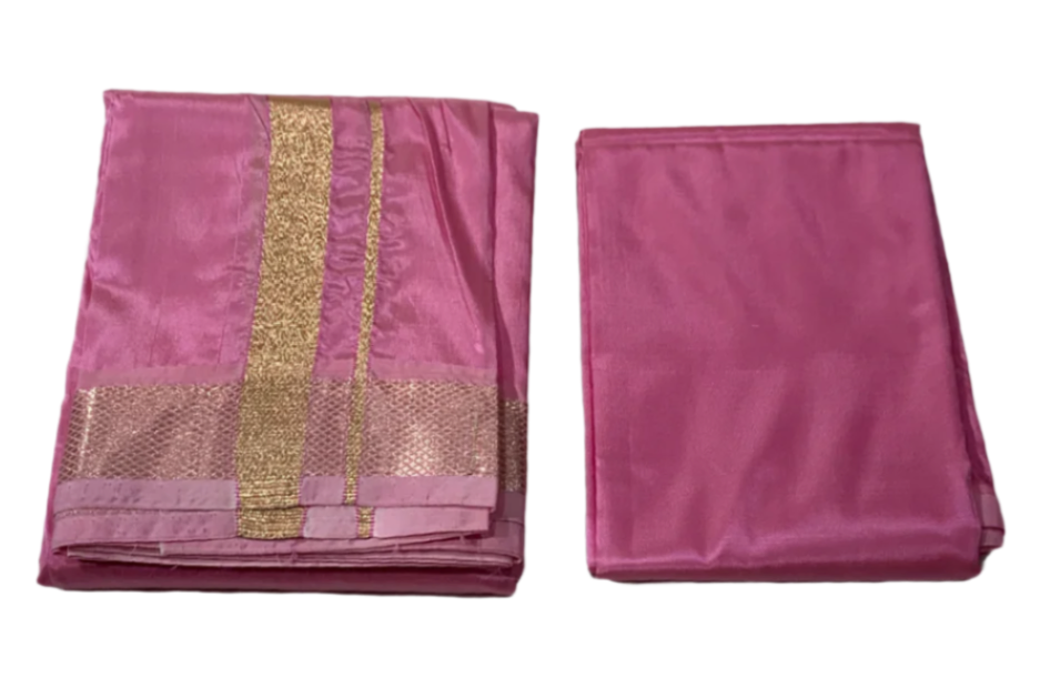 Baby Pink Pattu Dhothi and Shirt Material Combo