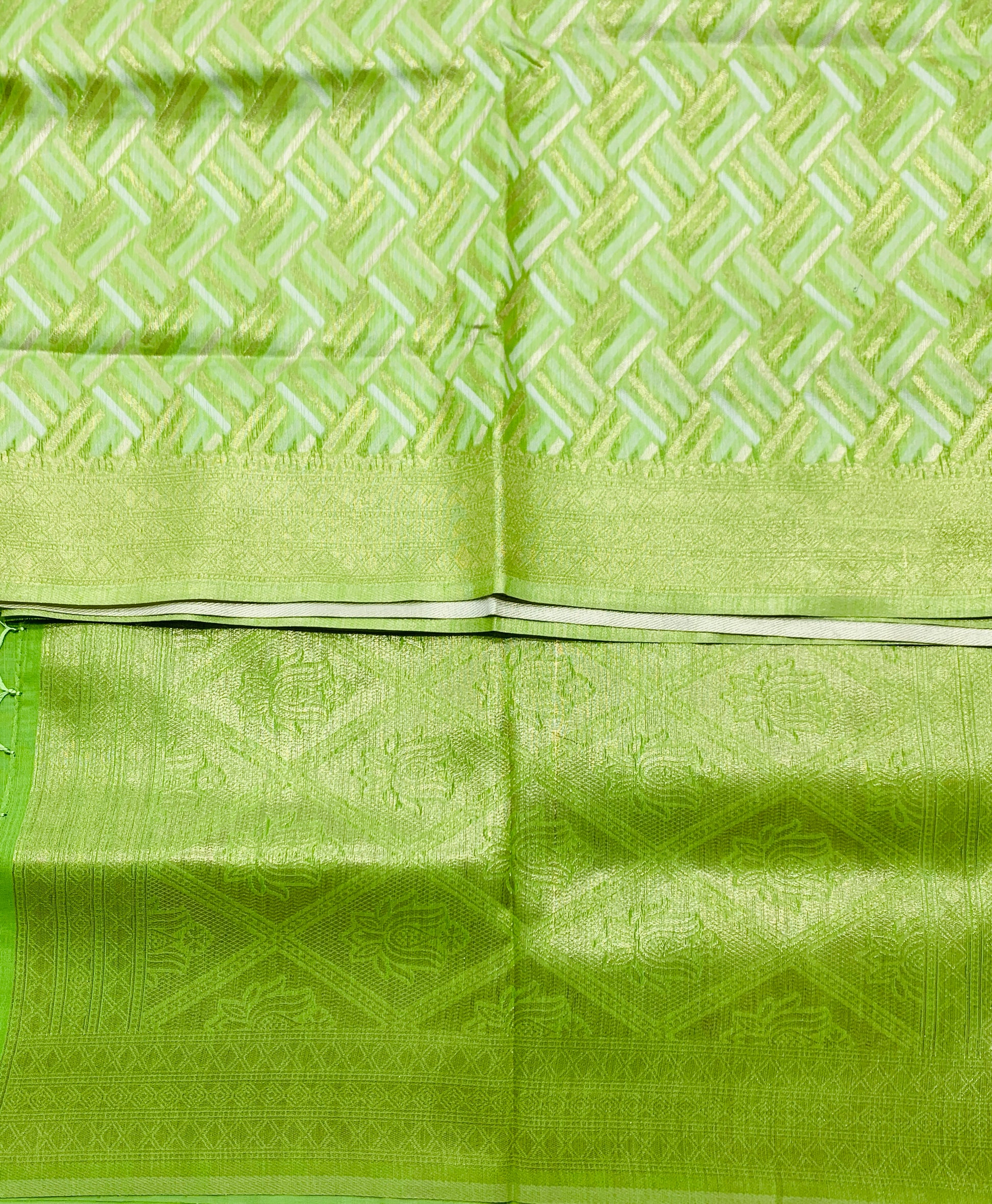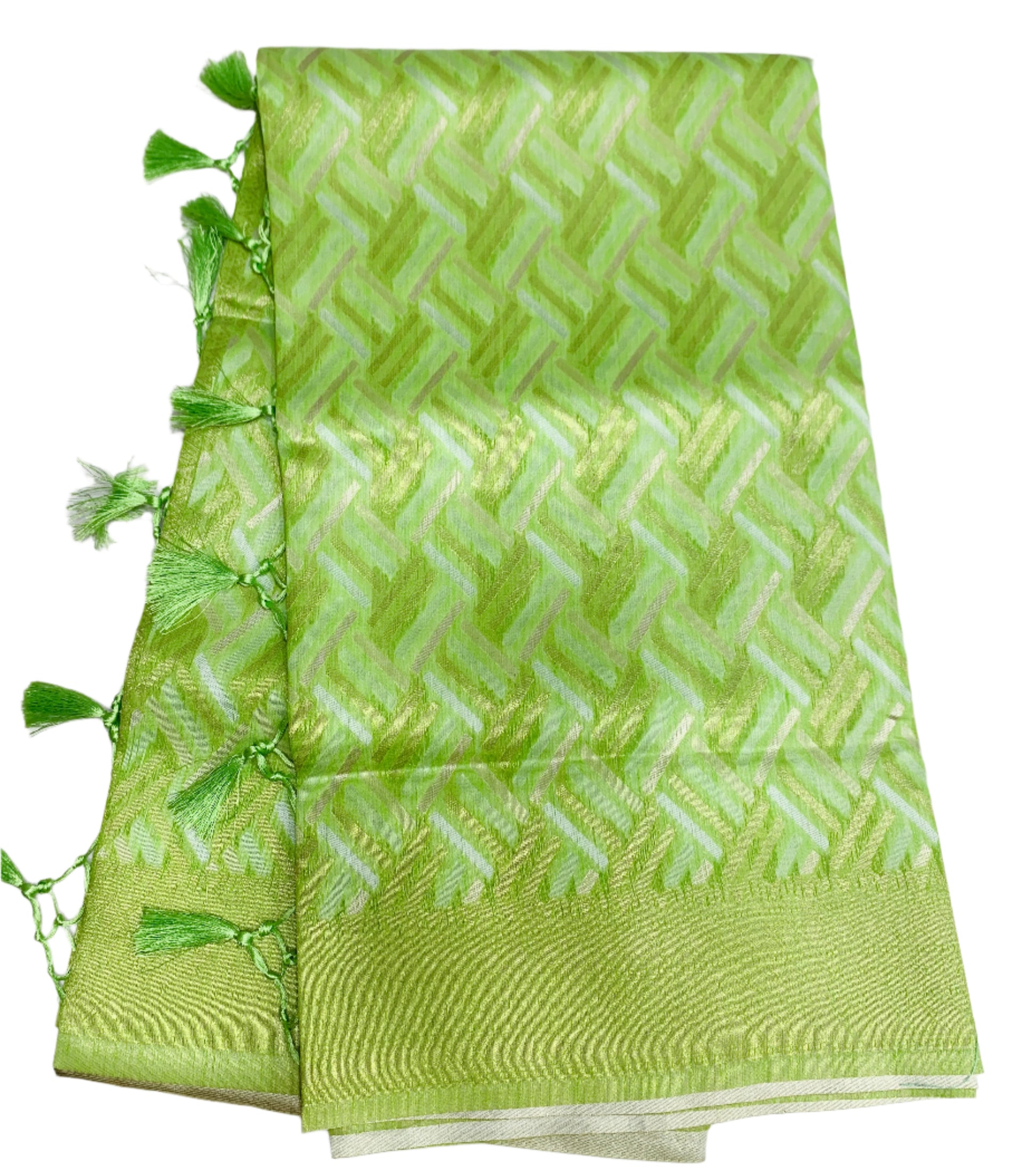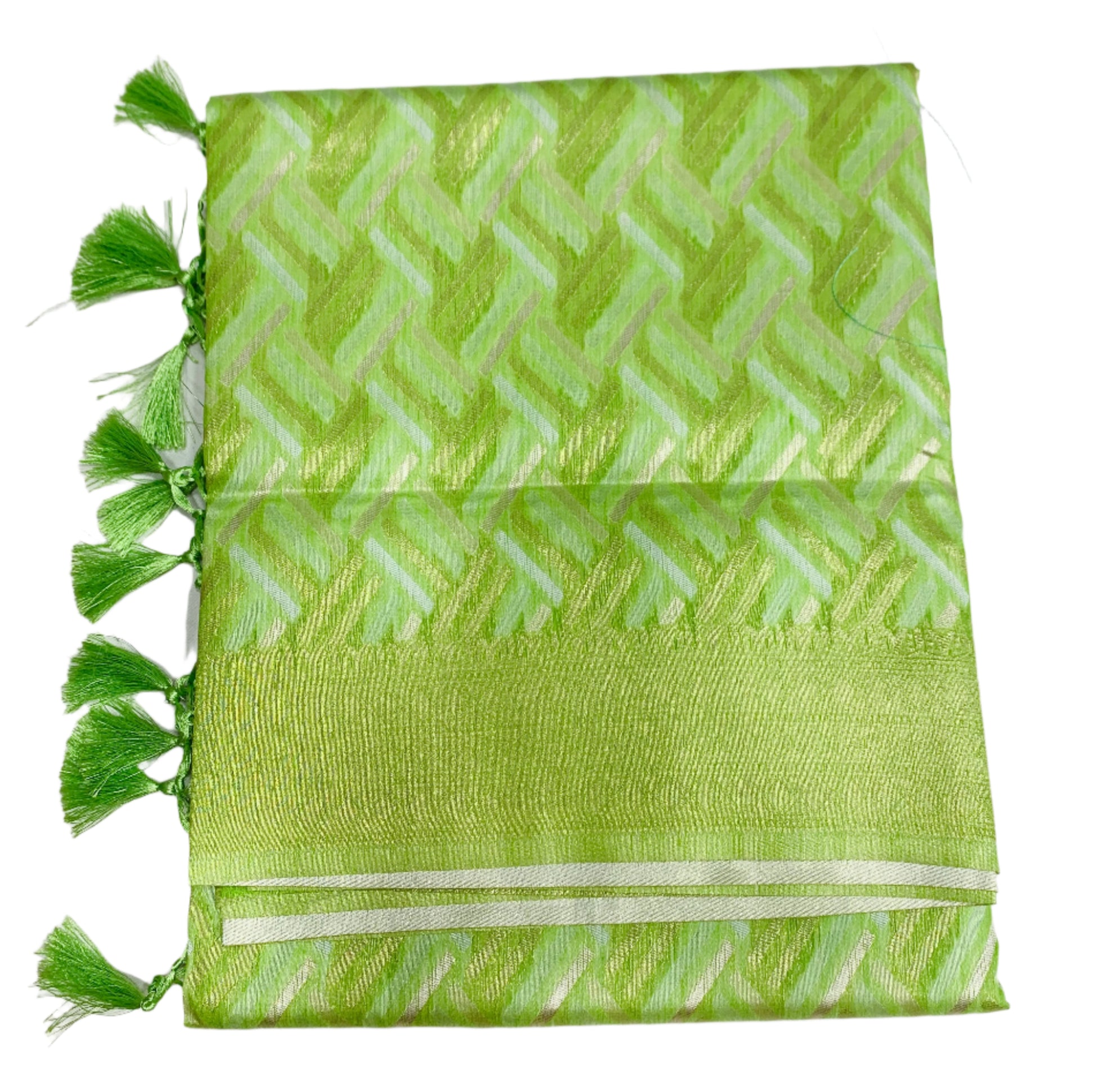 Banaras Katan Saree Apple Green Colour with Katan Work Border