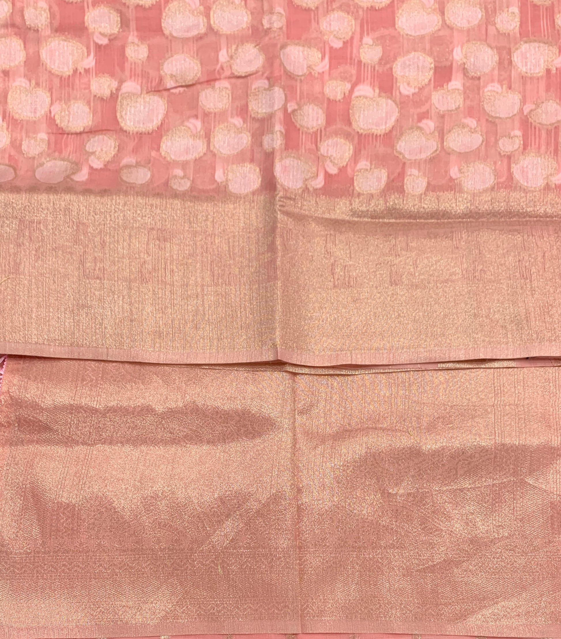 Banaras Katan Saree Baby Pink Colour with Katan Work Border.