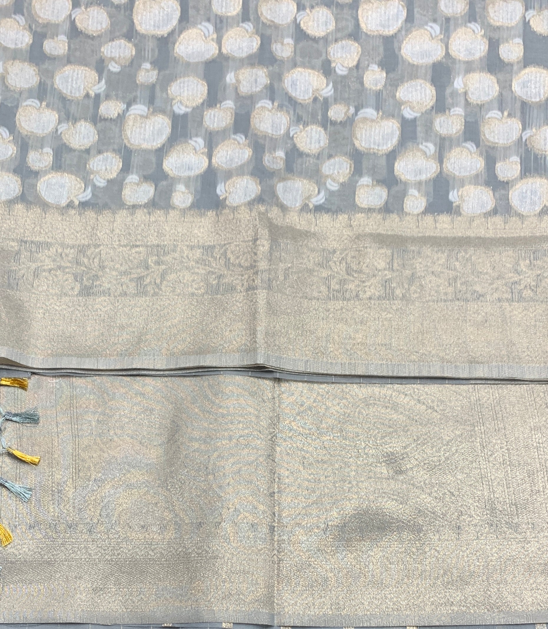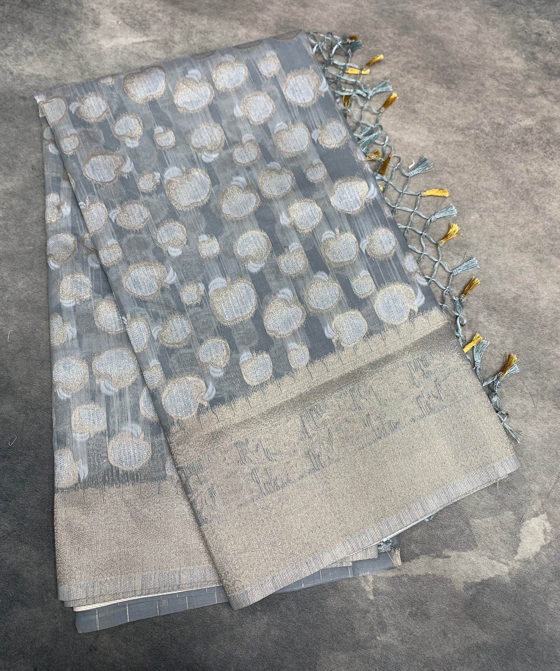 Banaras Katan Saree Grey Colour with Katan Work Border.
