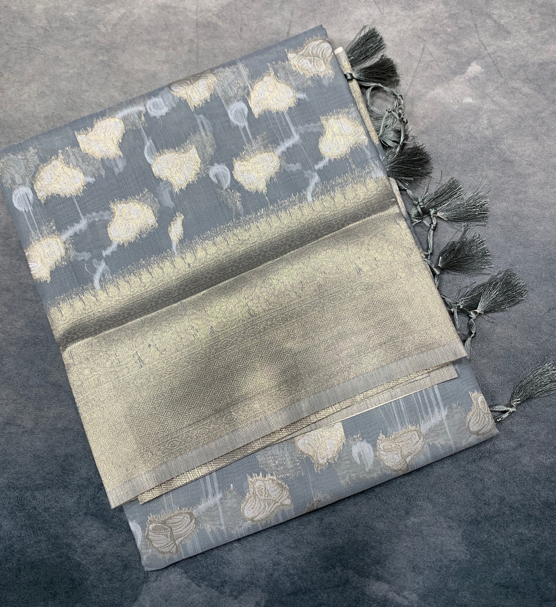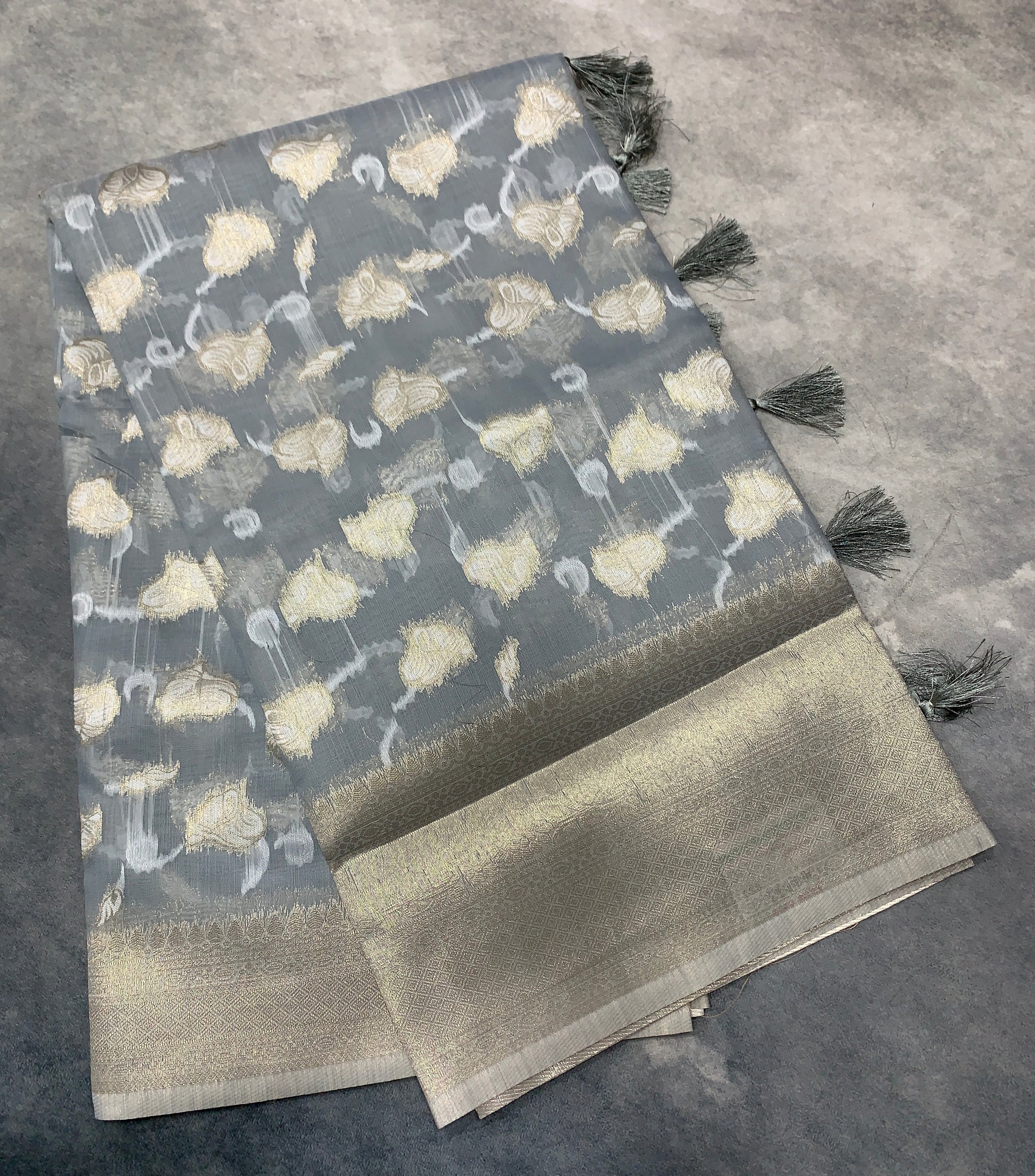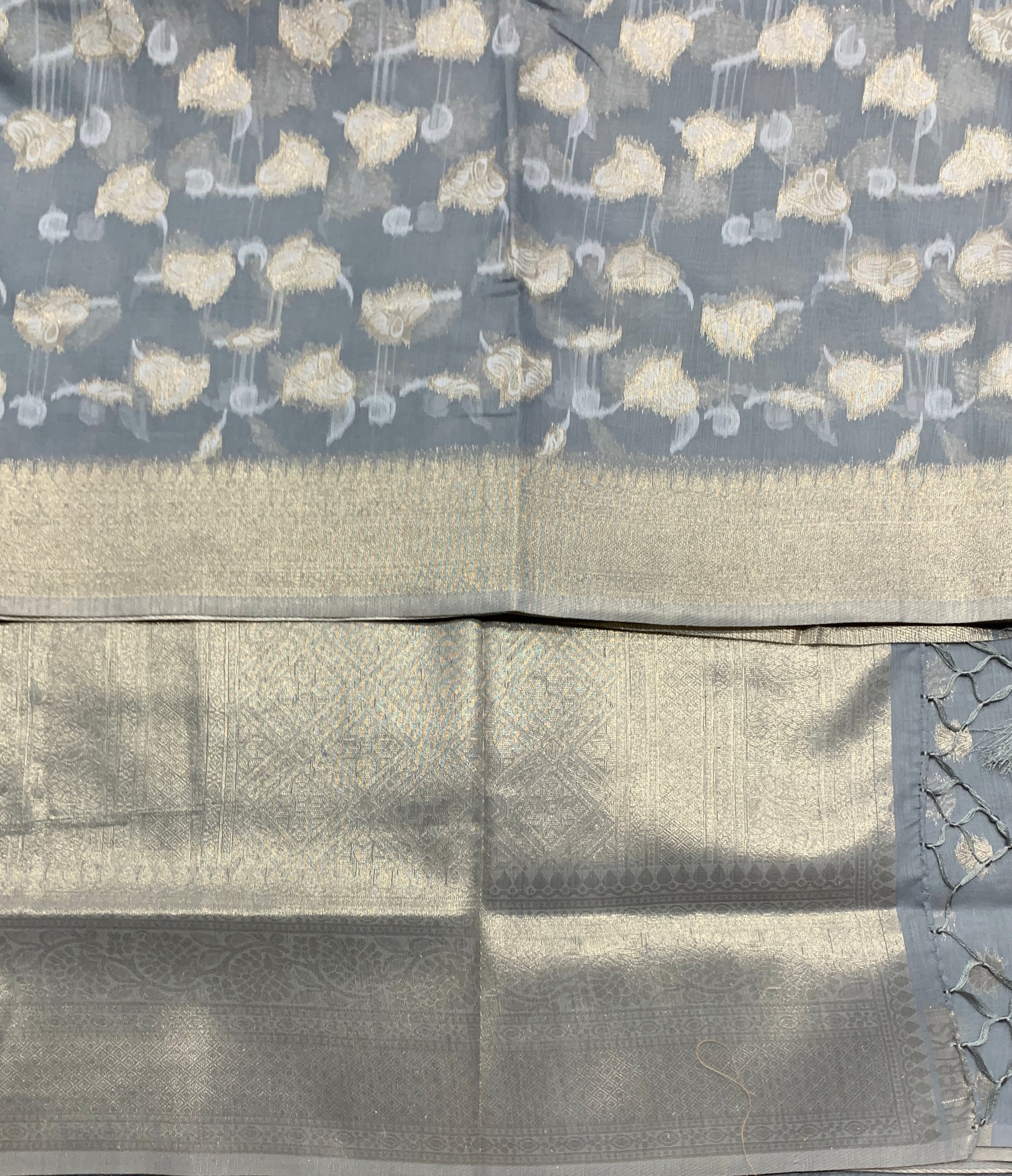 Banaras Katan Saree Gray Colour with Katan Work Border