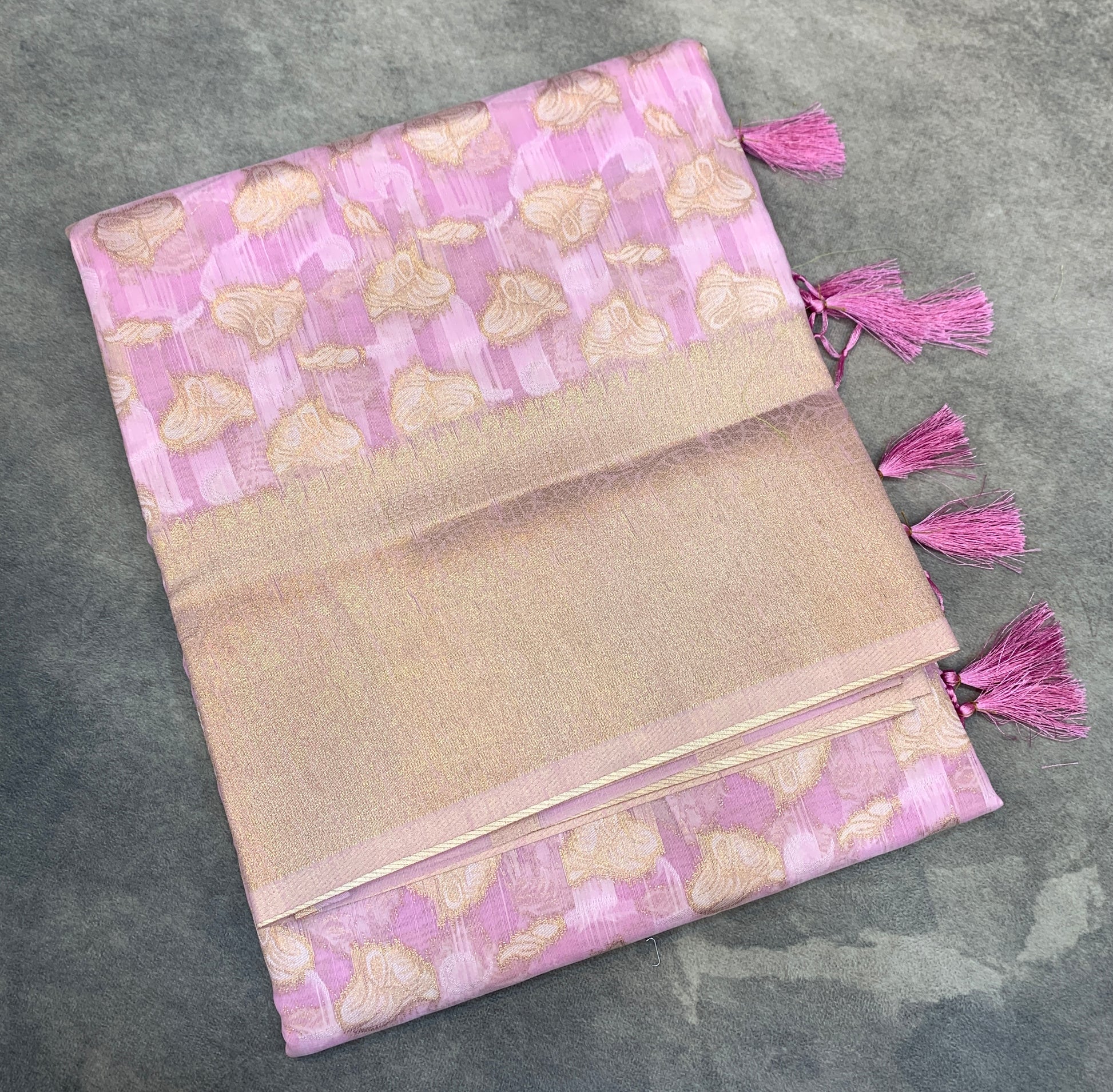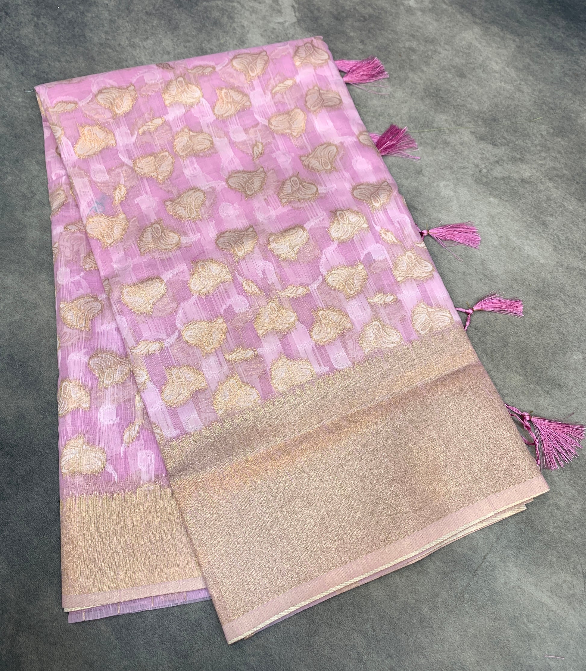 Banaras Katan Saree Lavender Colour with Katan Work Border.
