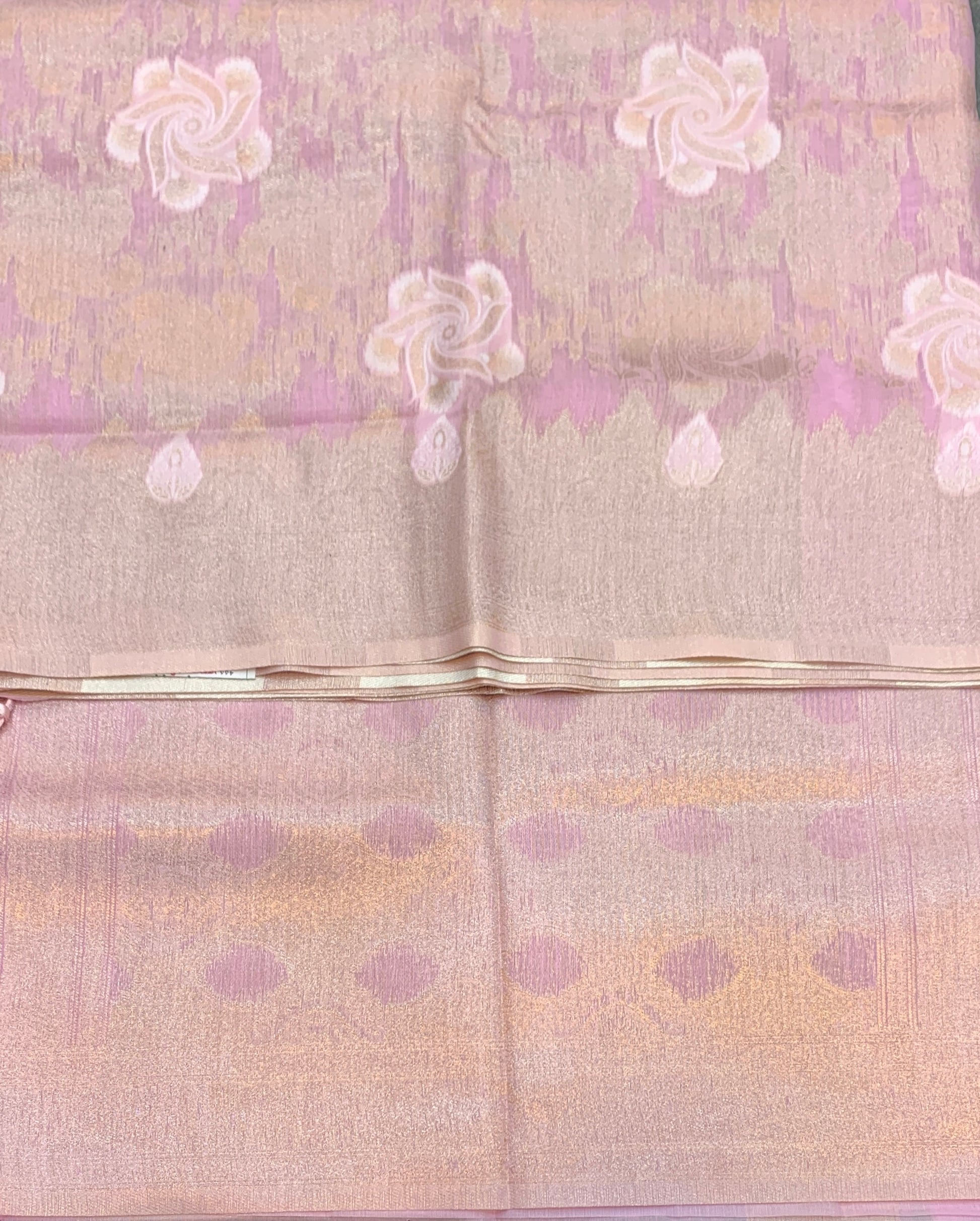 Banaras Katan Saree Lavender Colour with Katan Work Border.