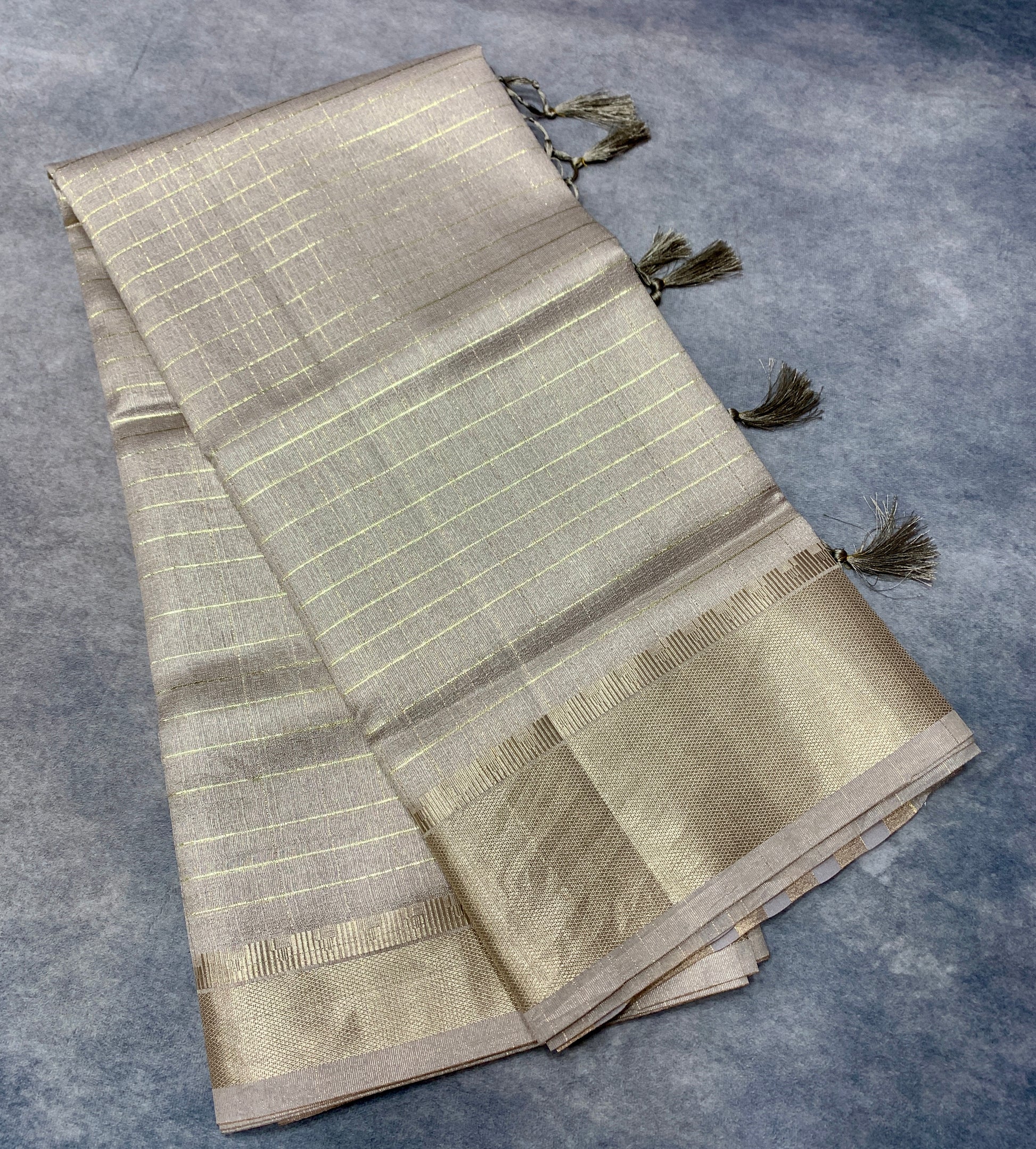 Banaras Katan Saree Light Brown Colour with Katan Work Border
