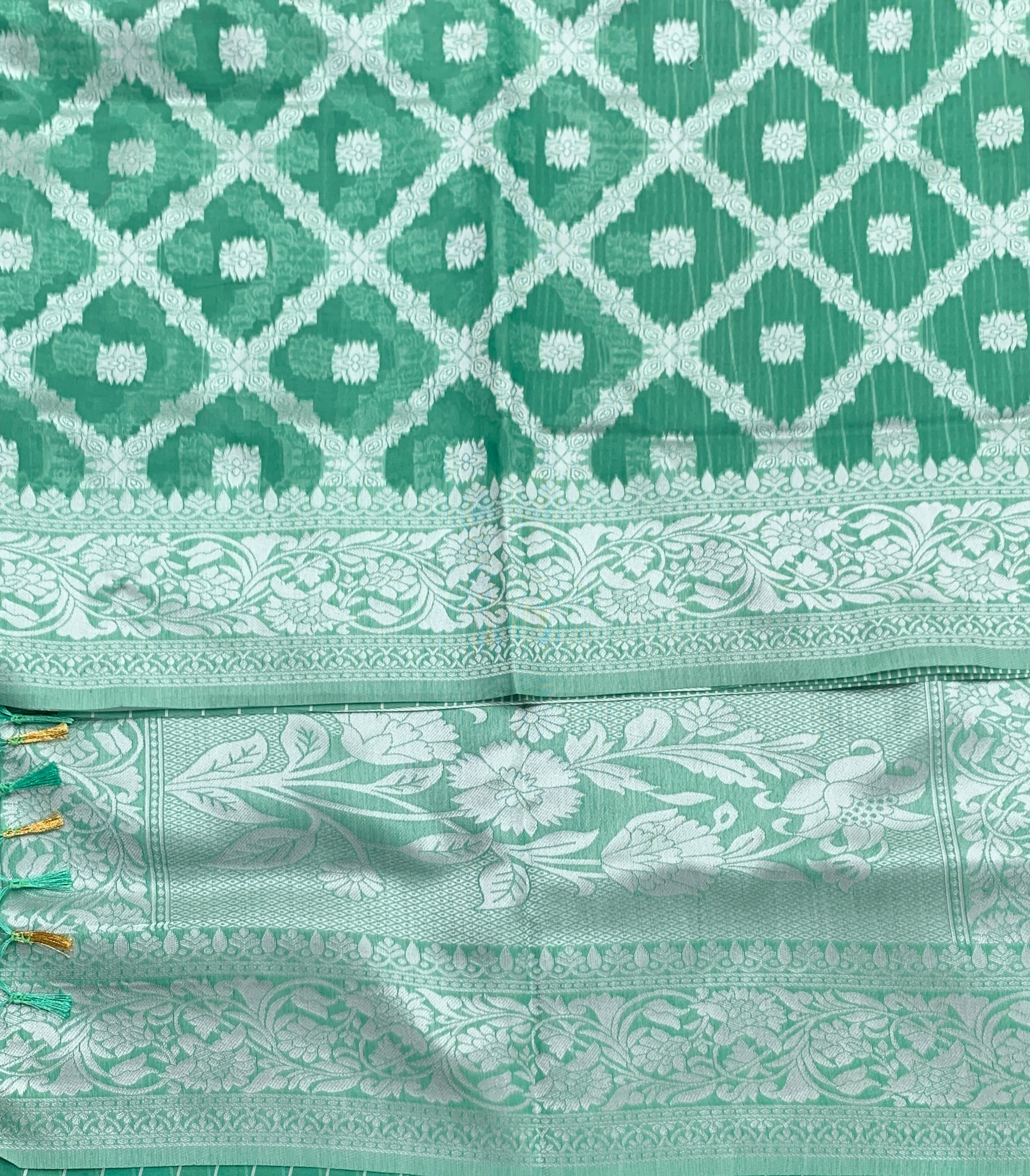Banaras Katan Saree Light Green Colour with Katan Work Border