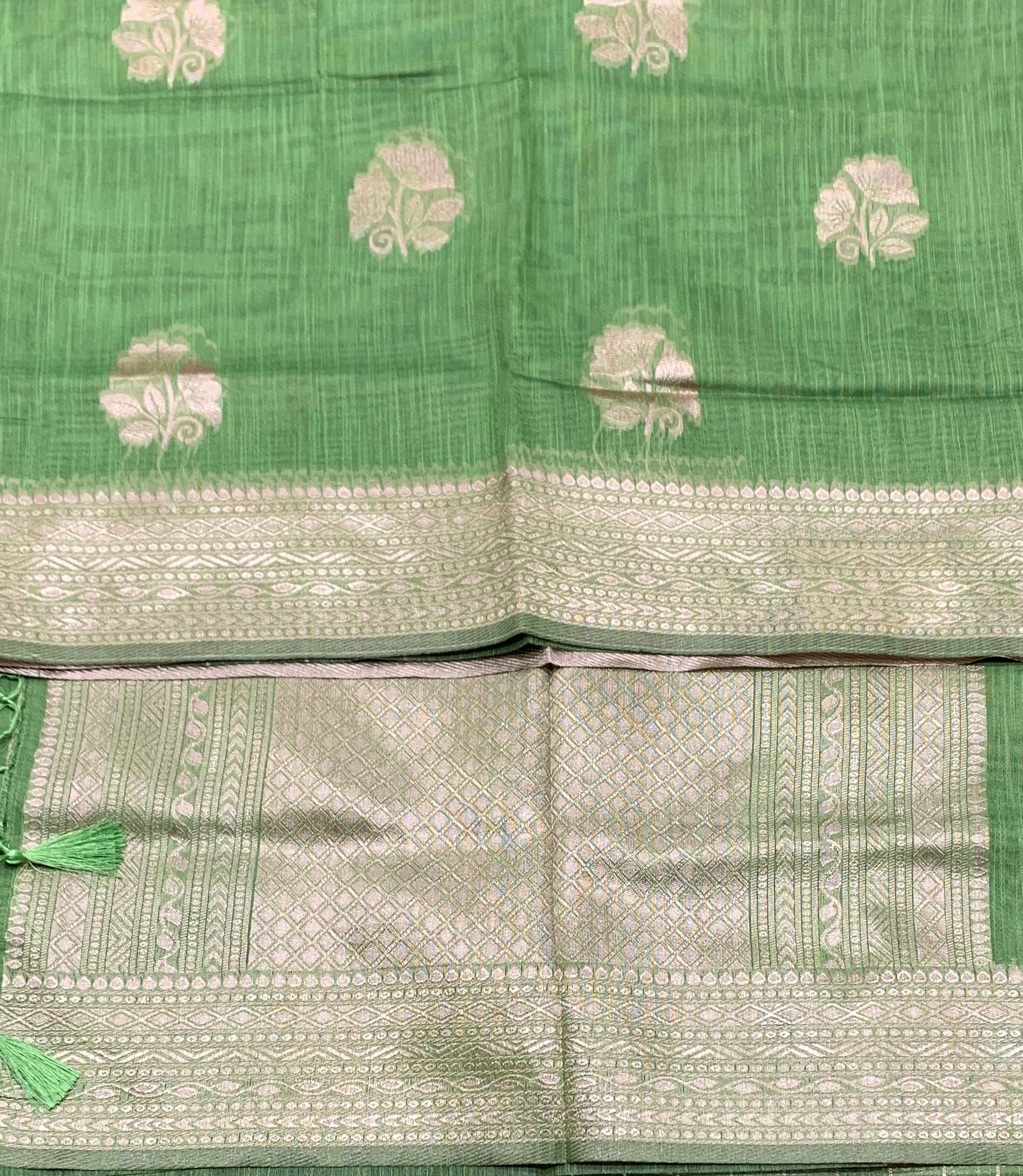 Banaras Katan Saree Light Green Colour with Katan Work Border.