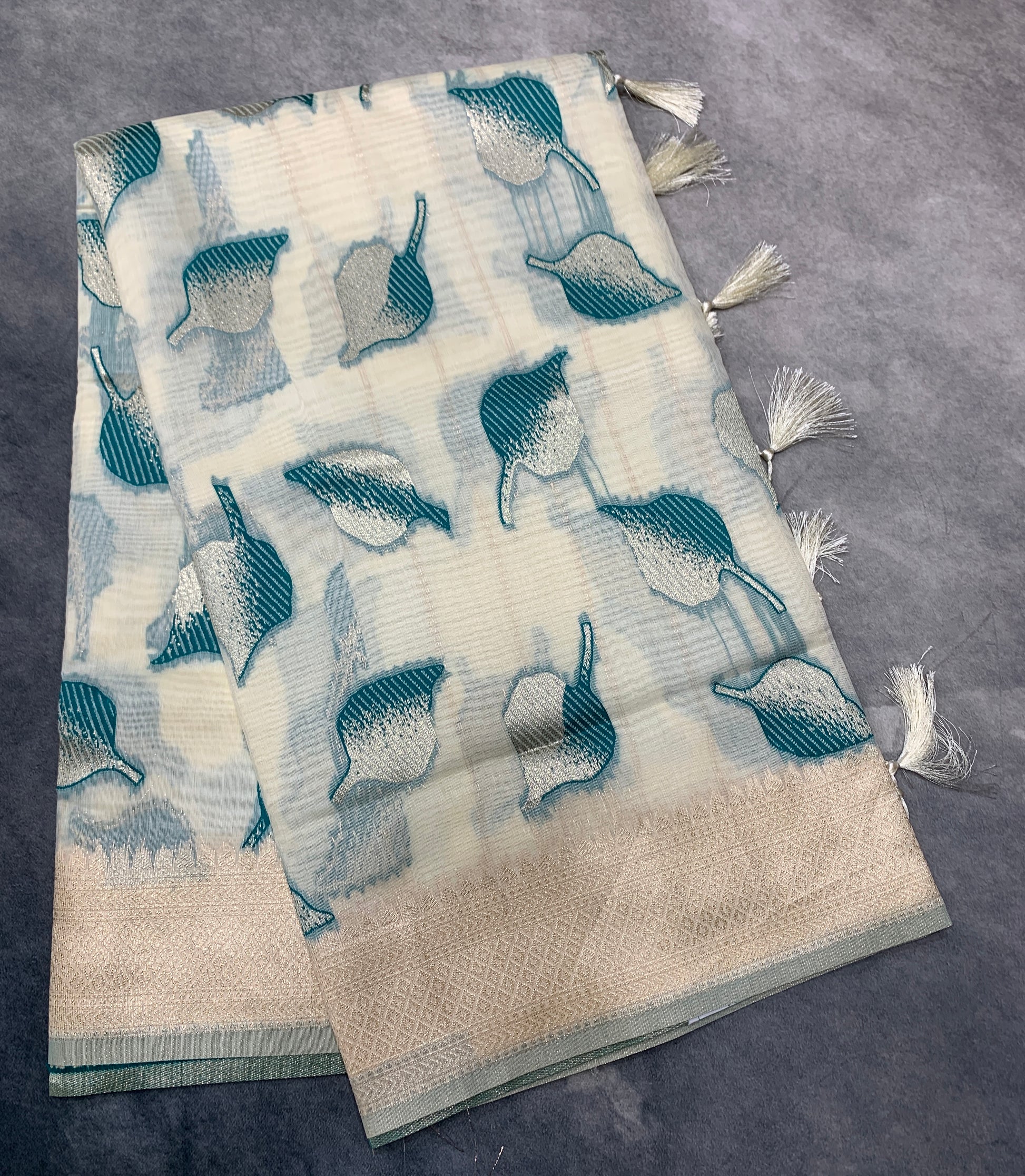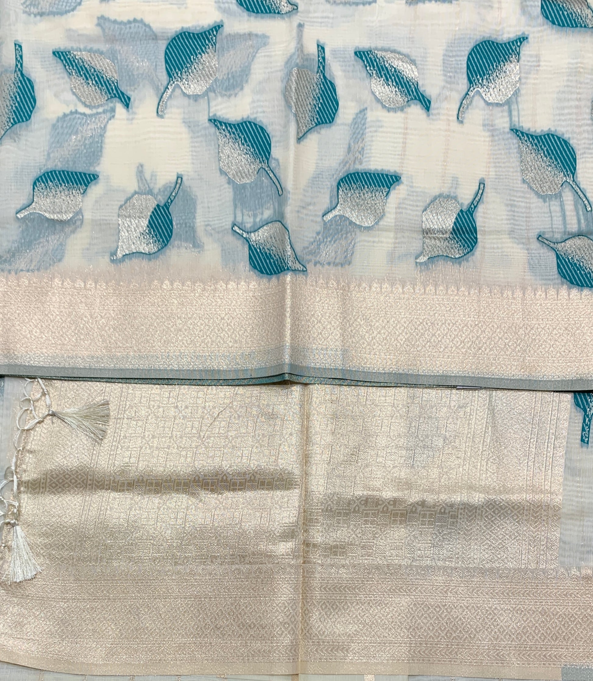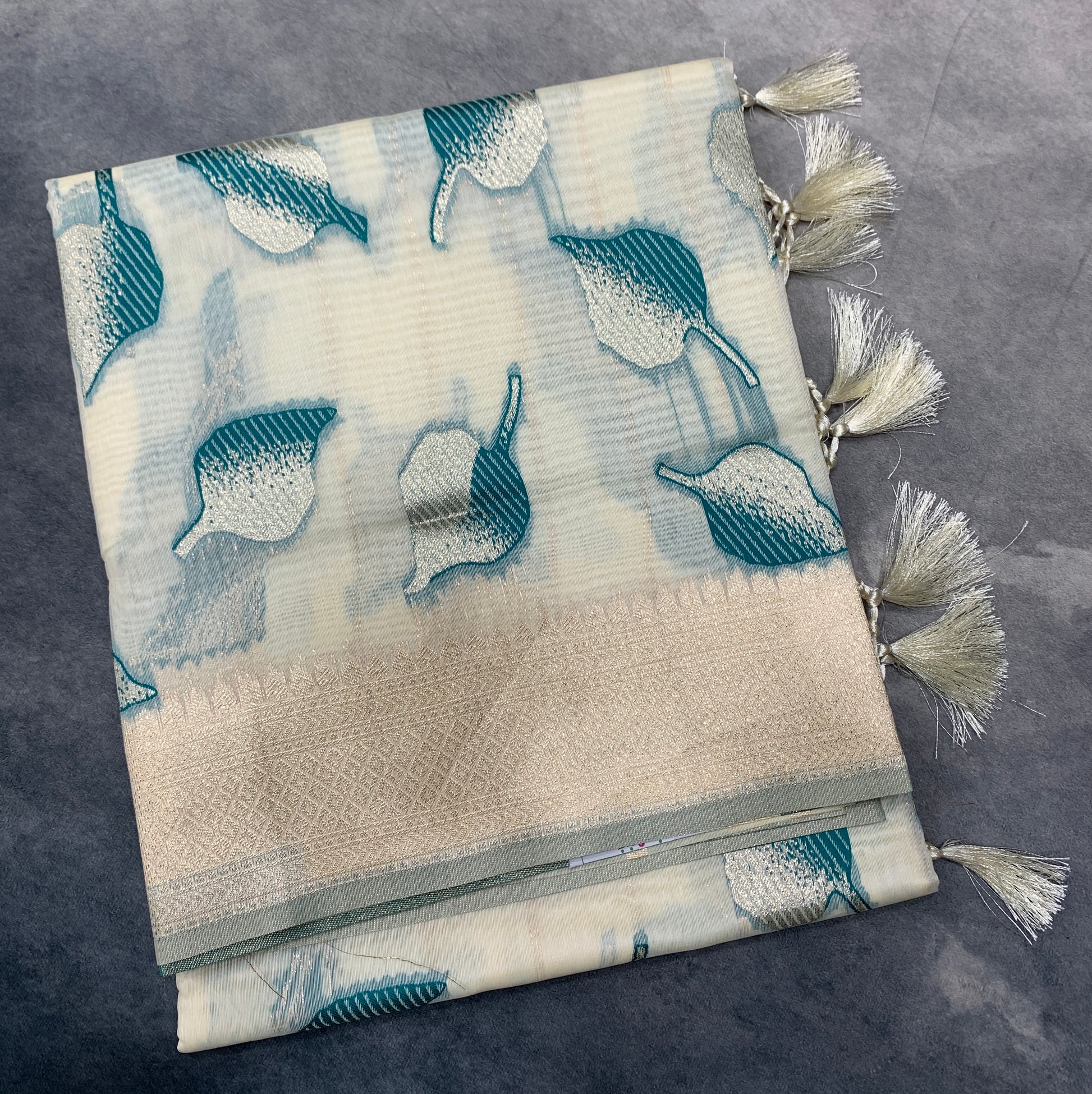 Banaras Katan Saree Off White Colour with Katan Work Border