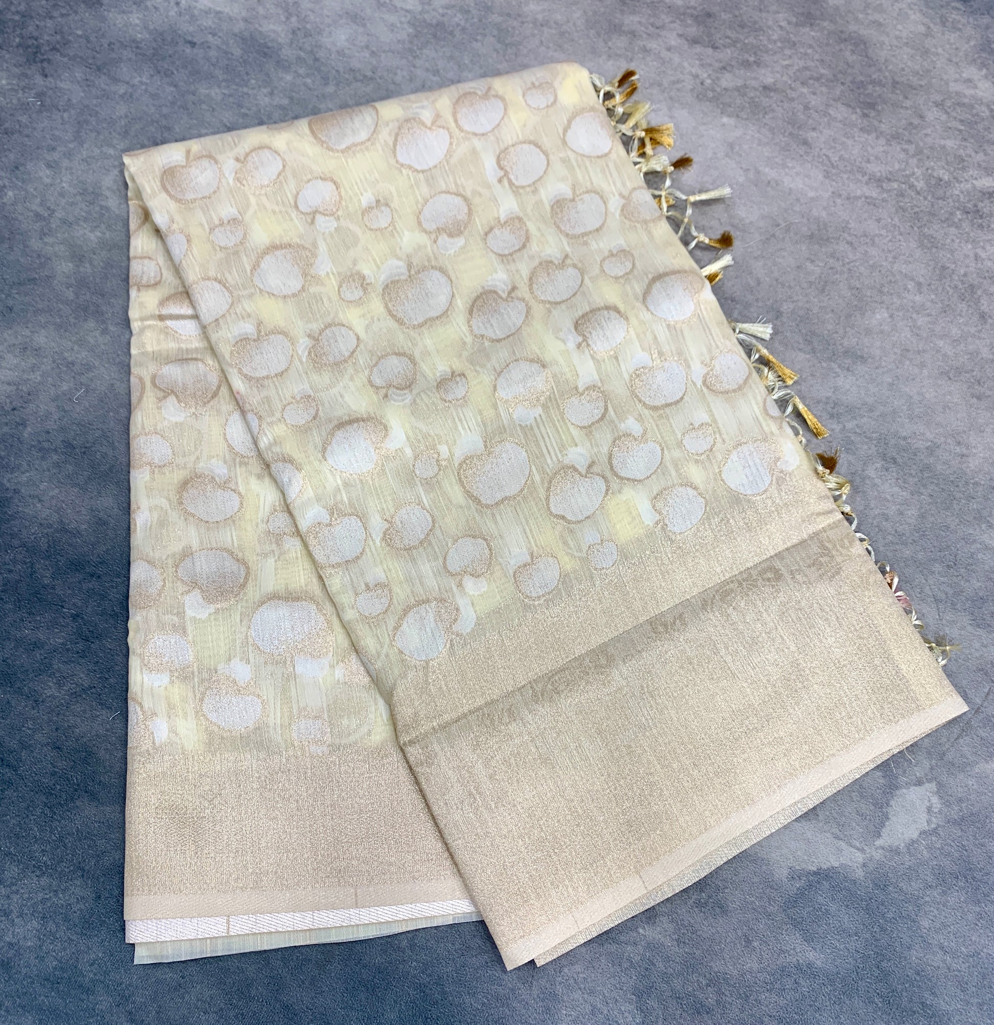Banaras Katan Saree Off White Colour with Katan Work Border.