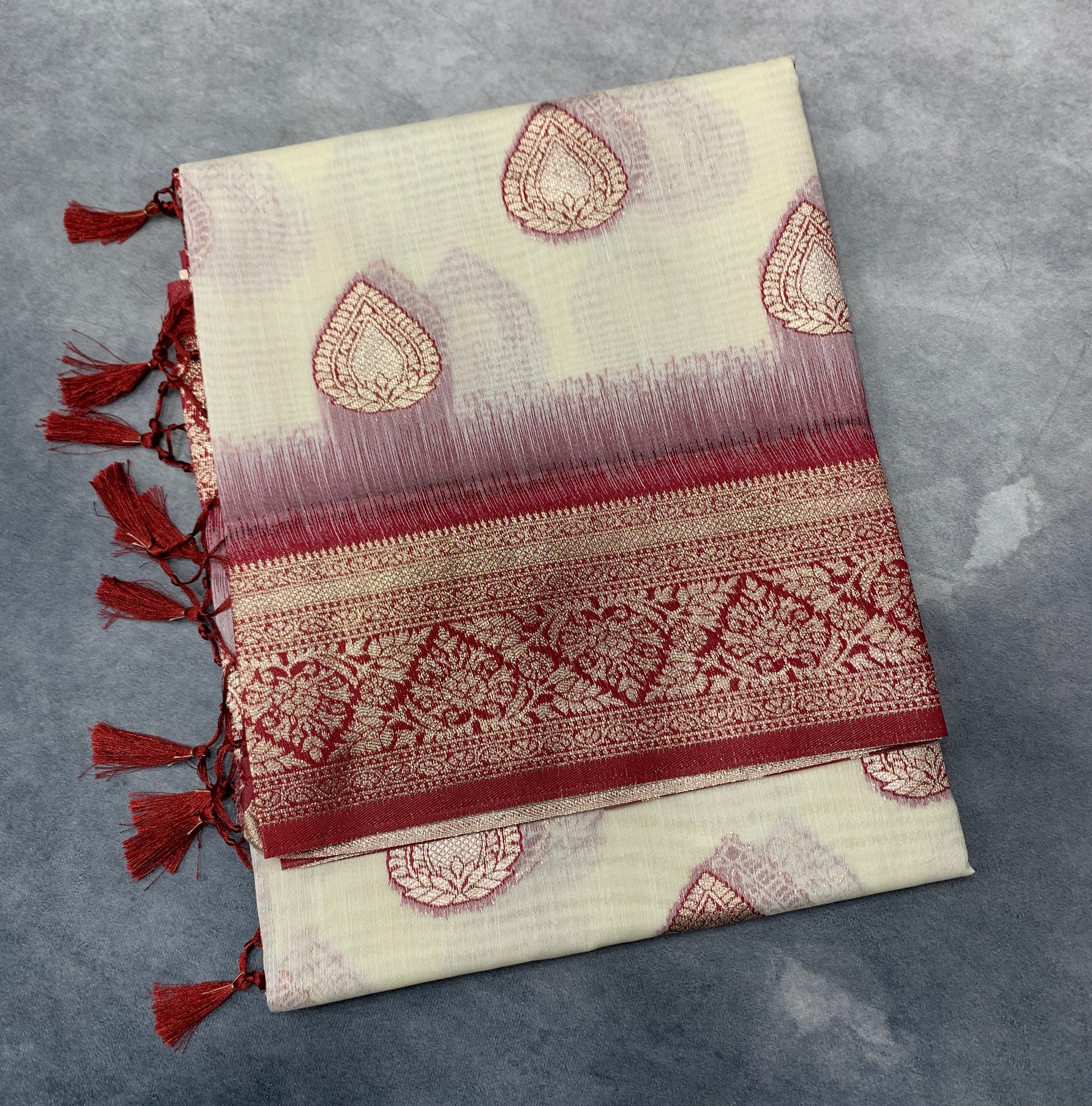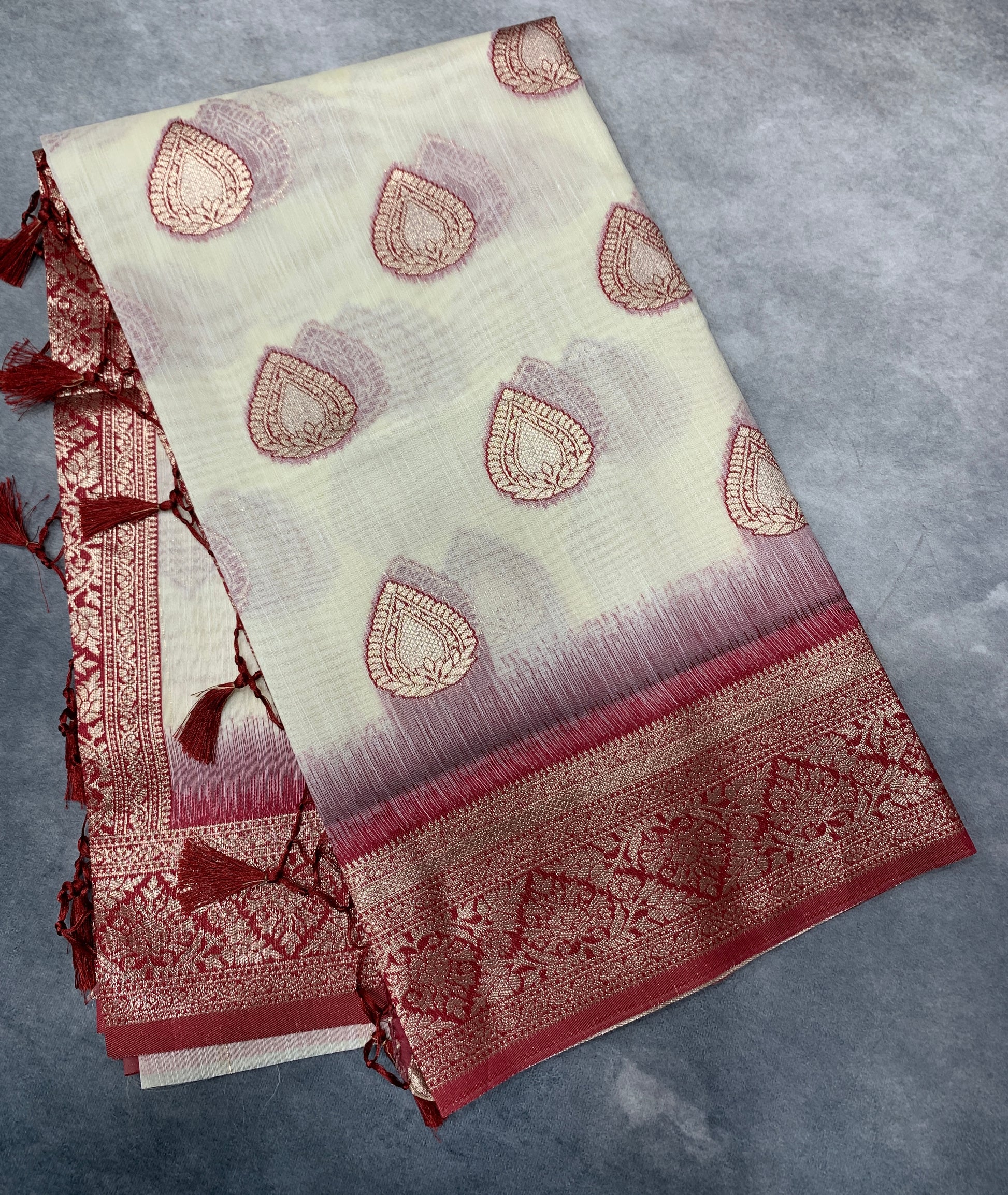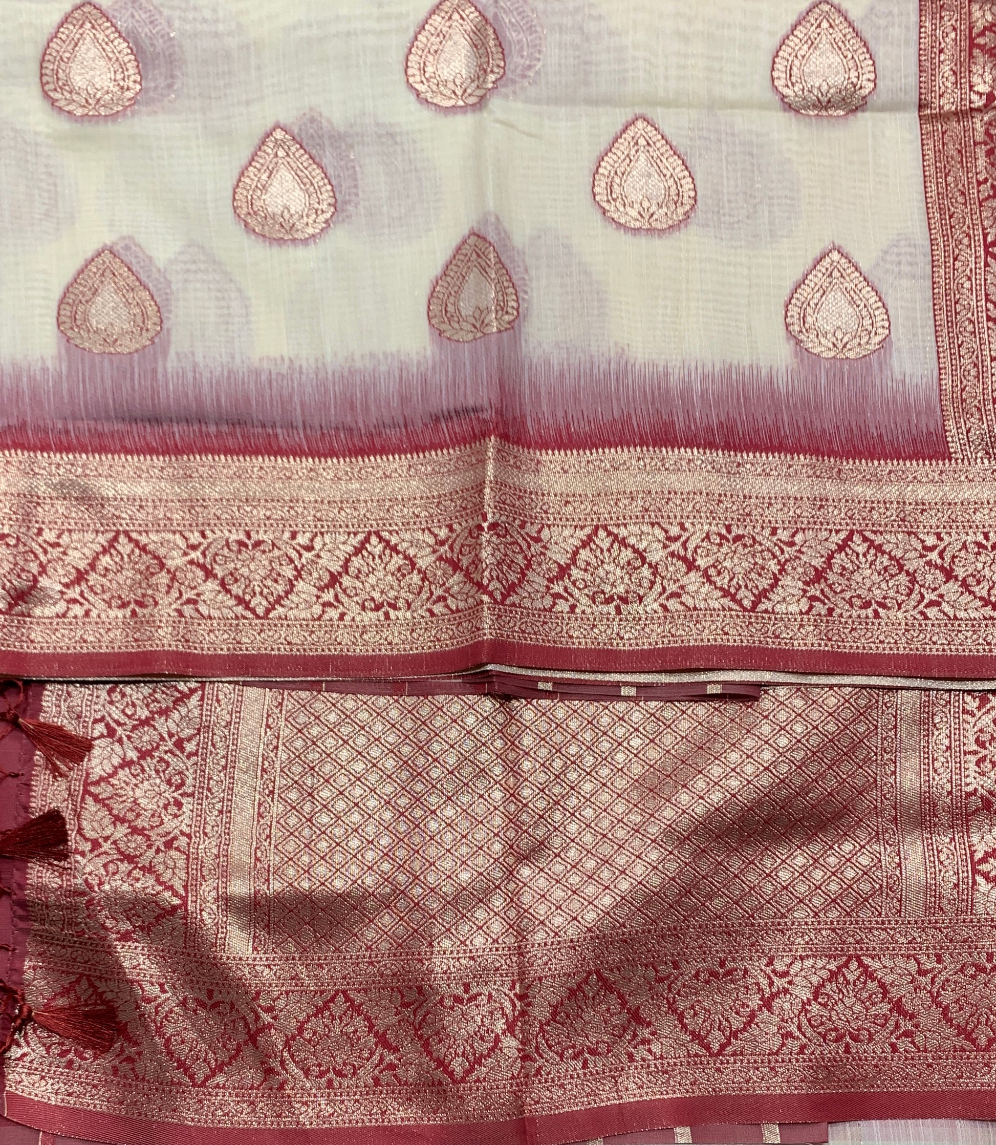 Banaras Katan Saree Off White Colour with Katan Work Border
