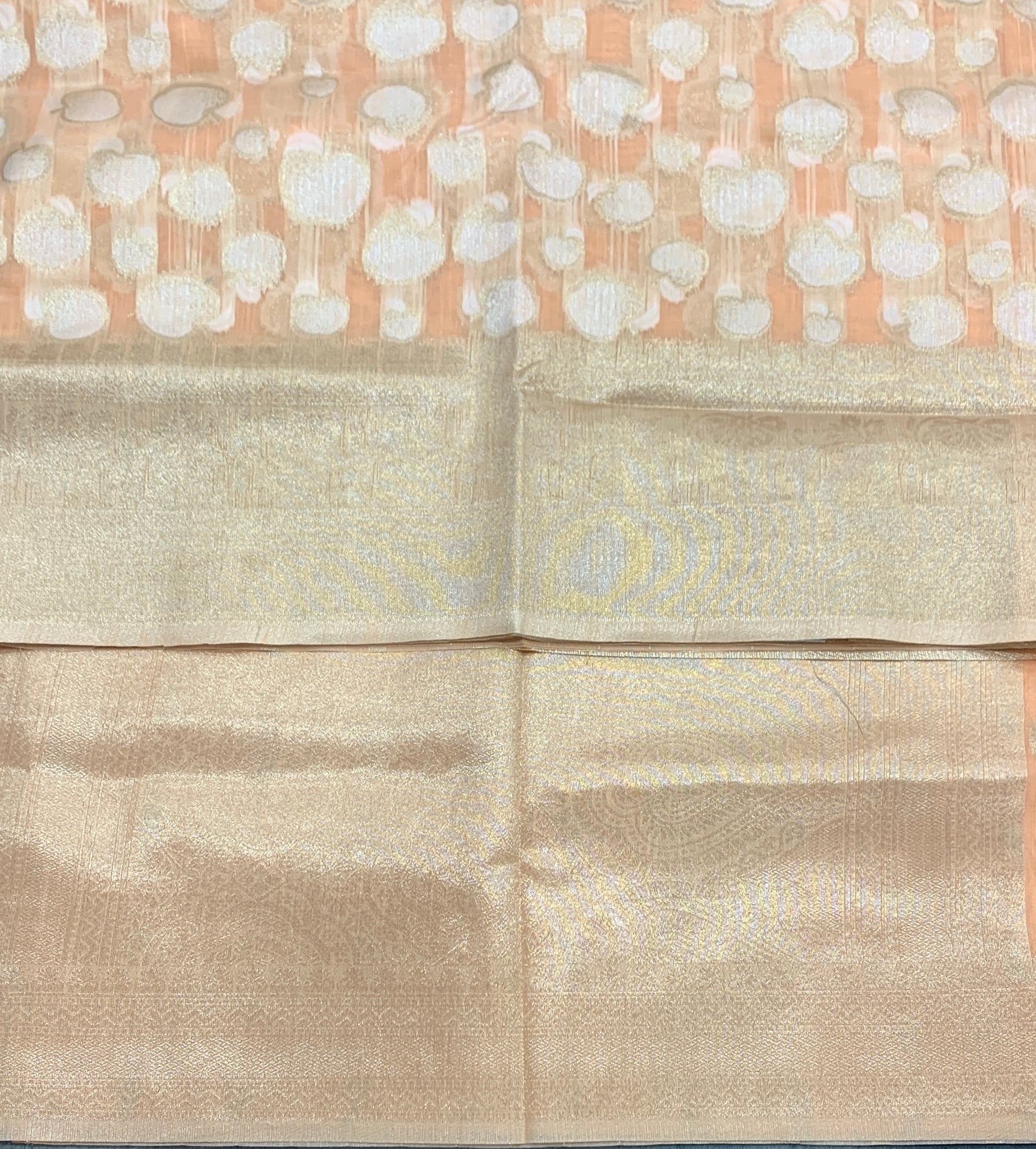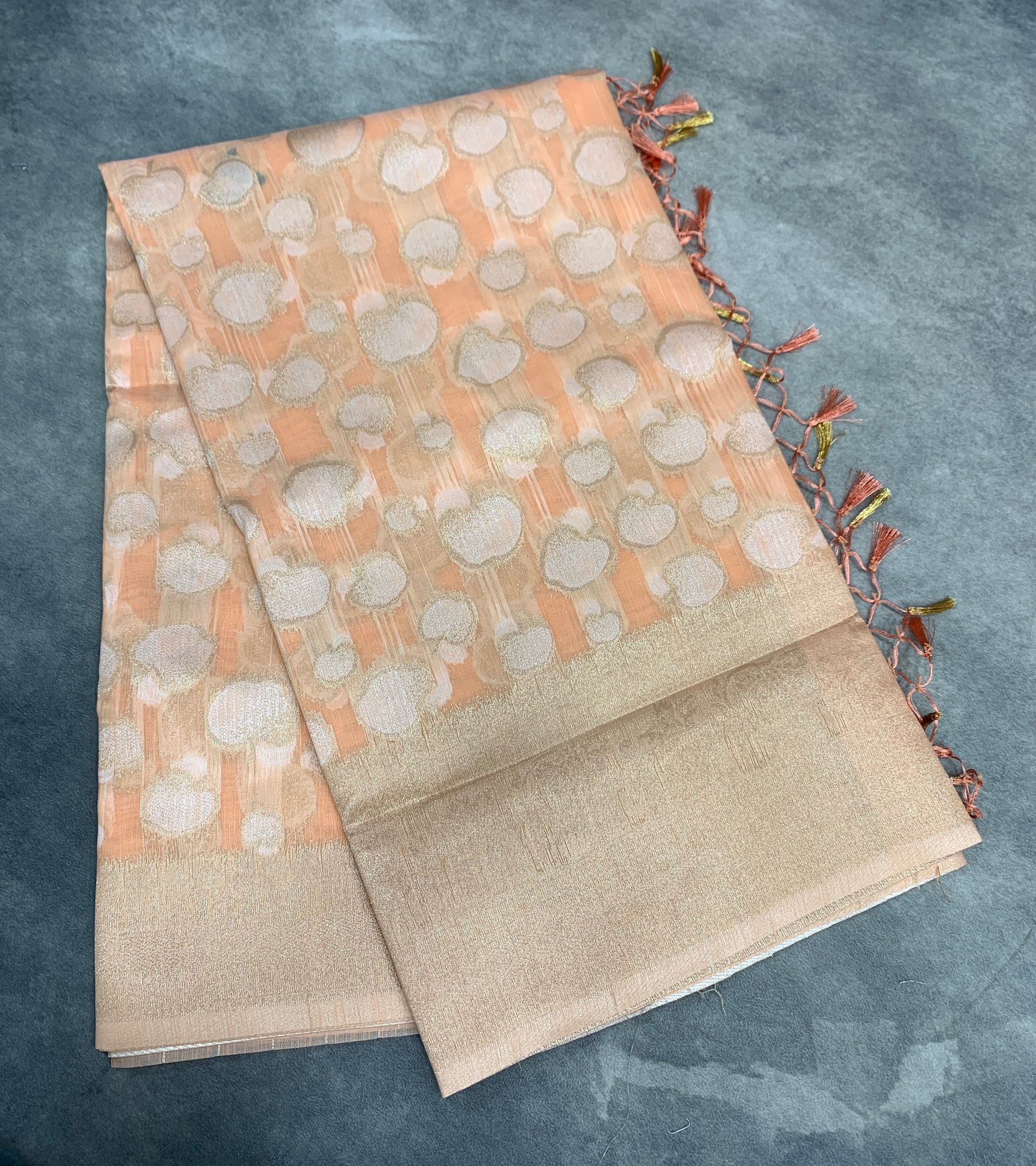 Banaras Katan Saree Orange Colour with Katan Work Border.