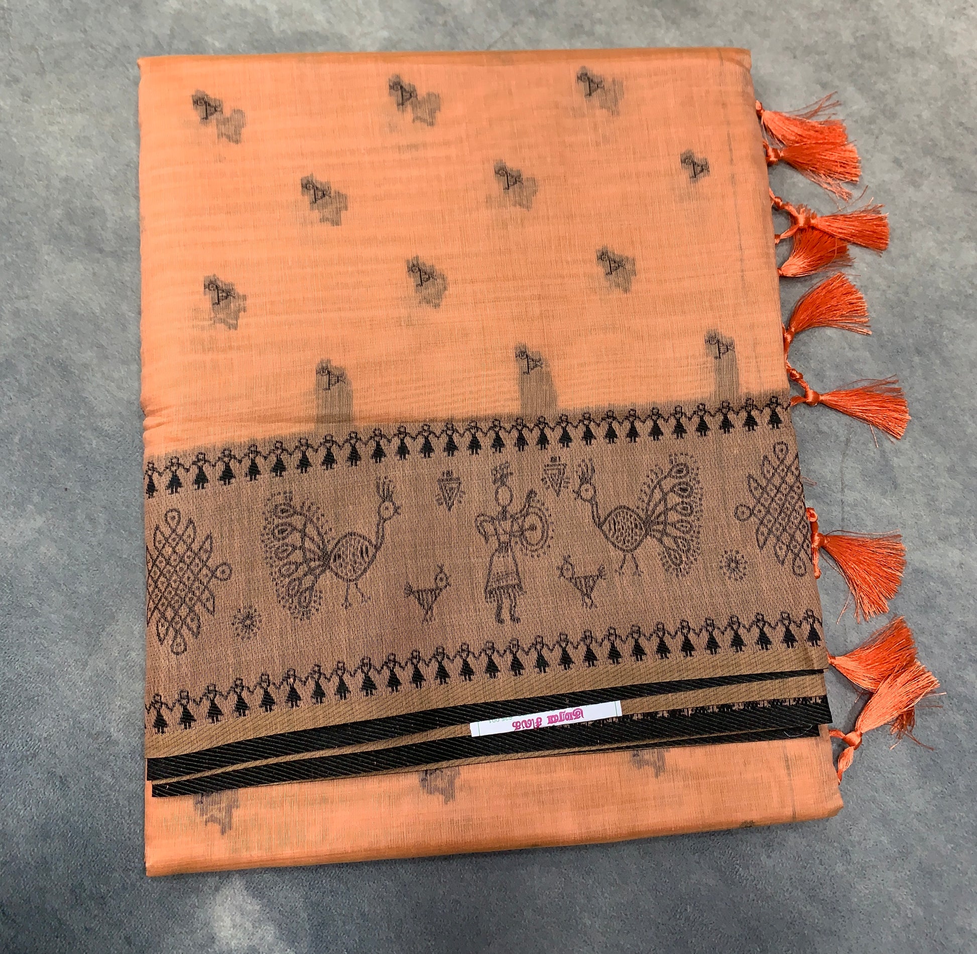 Banaras Katan Saree Orange Colour with Katan Work Border.