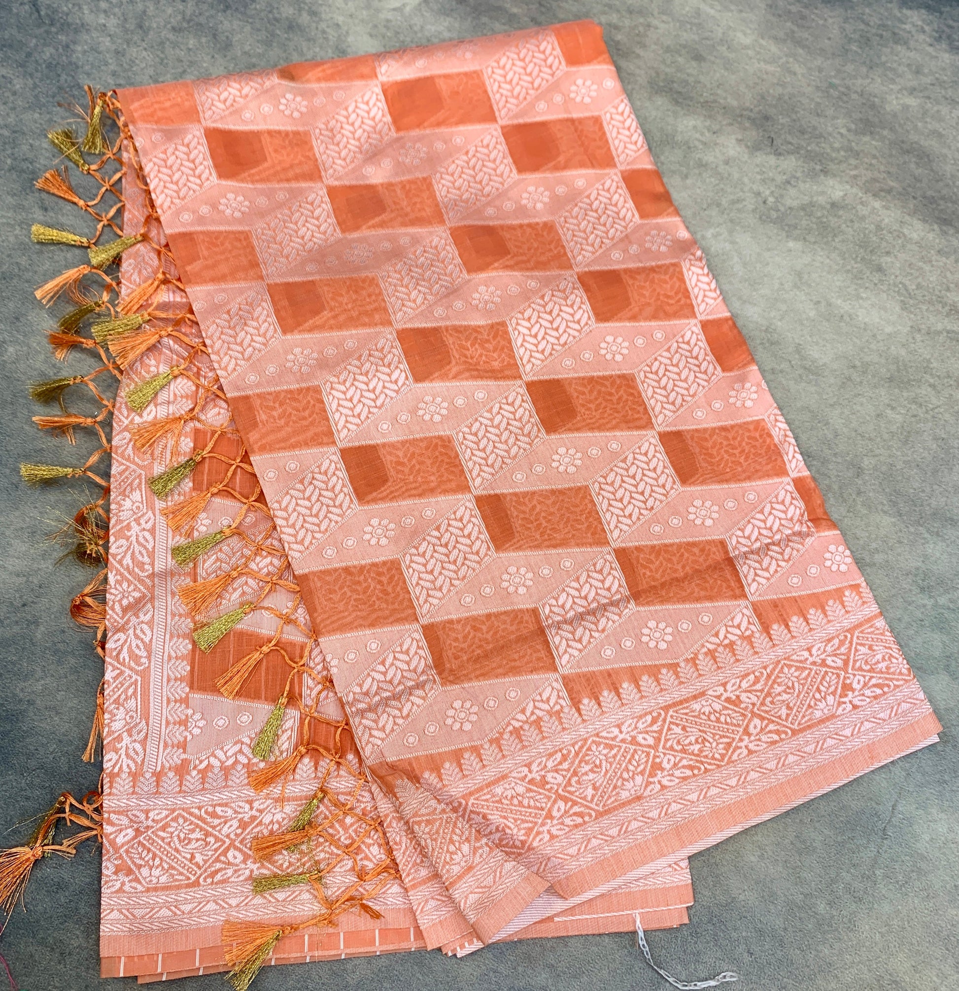 Banaras Katan Saree Orange Colour with Katan Work Border