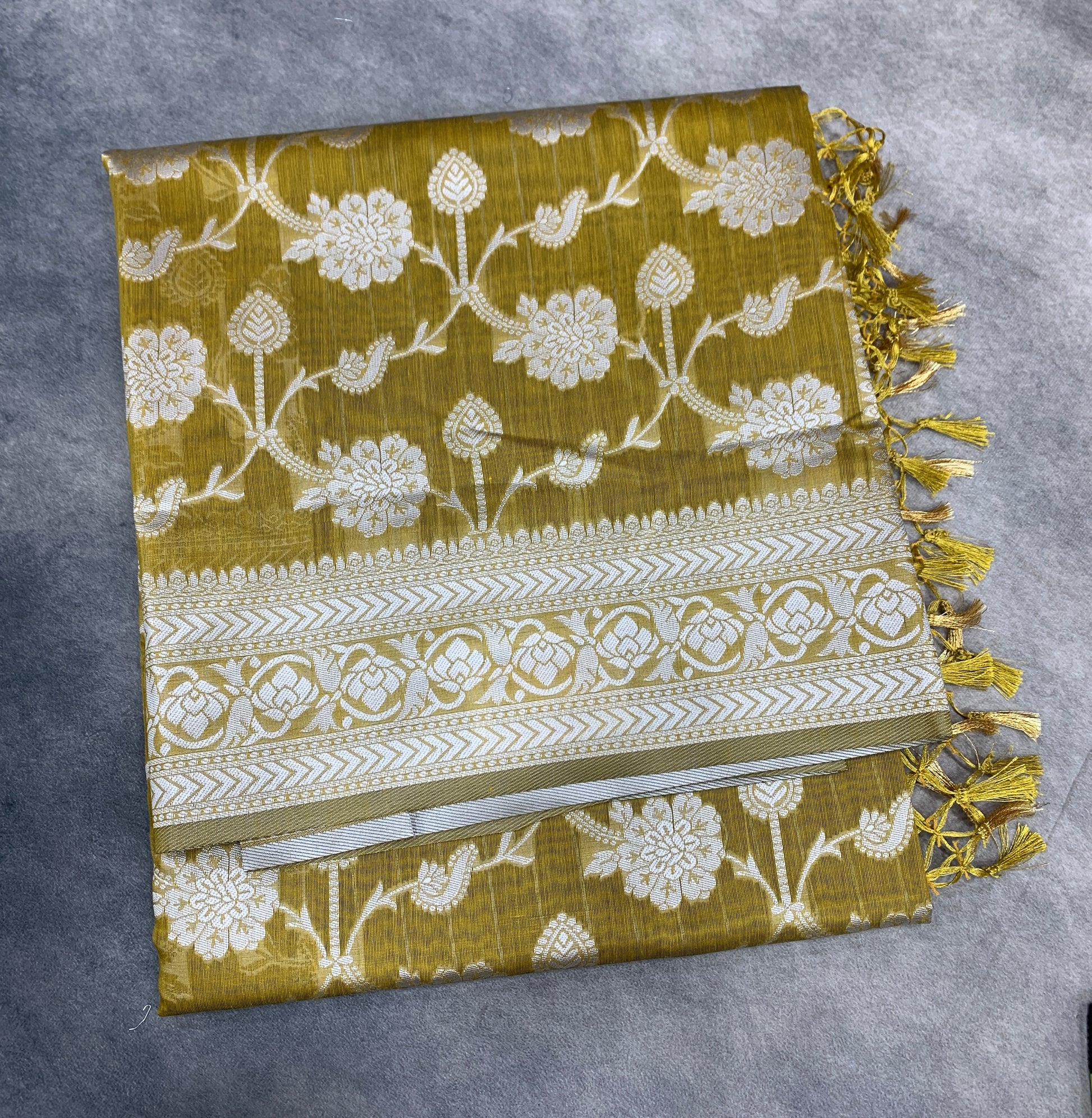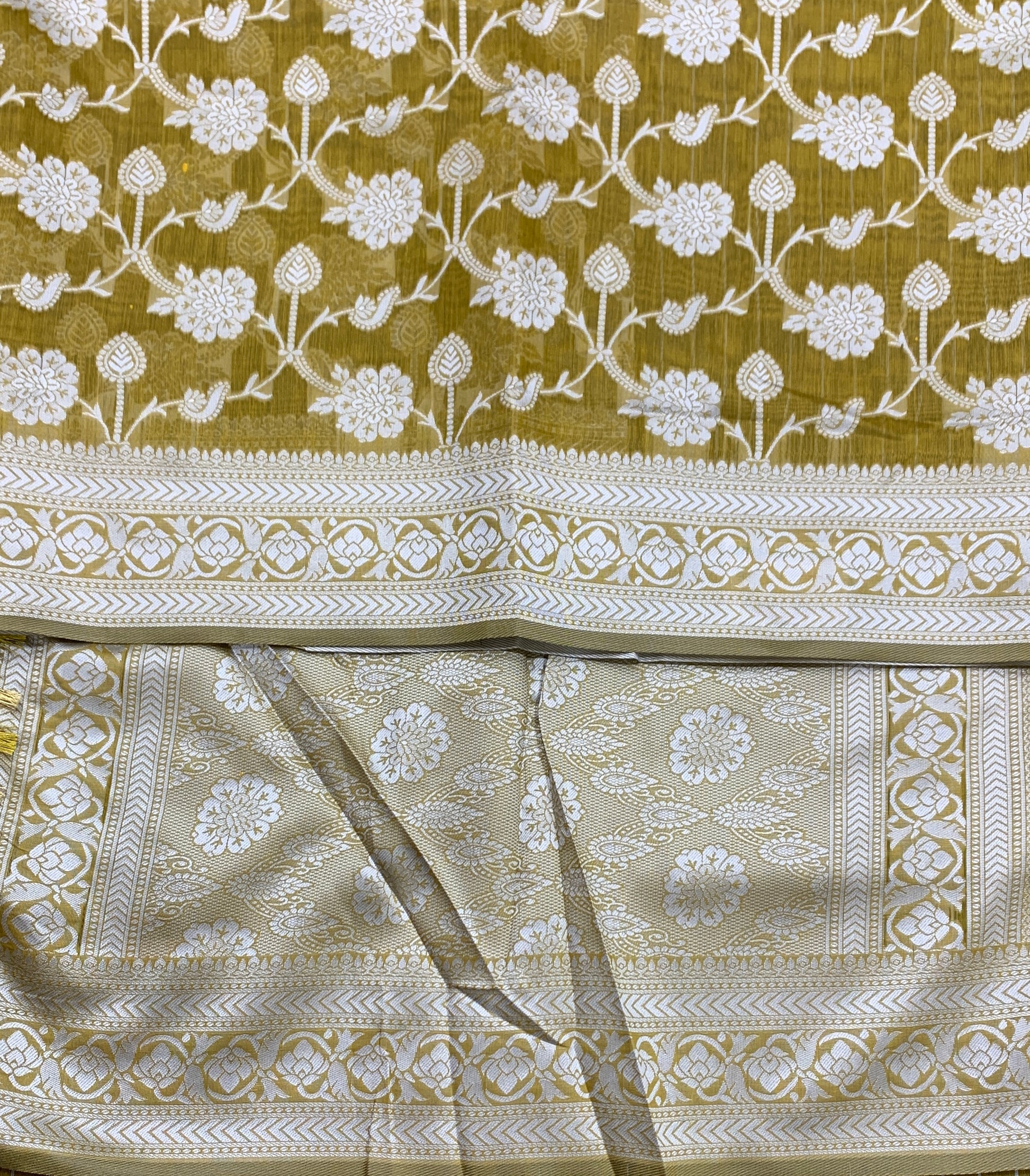 Banaras Katan Saree Pasi Payaru Green Colour with Katan Work Border