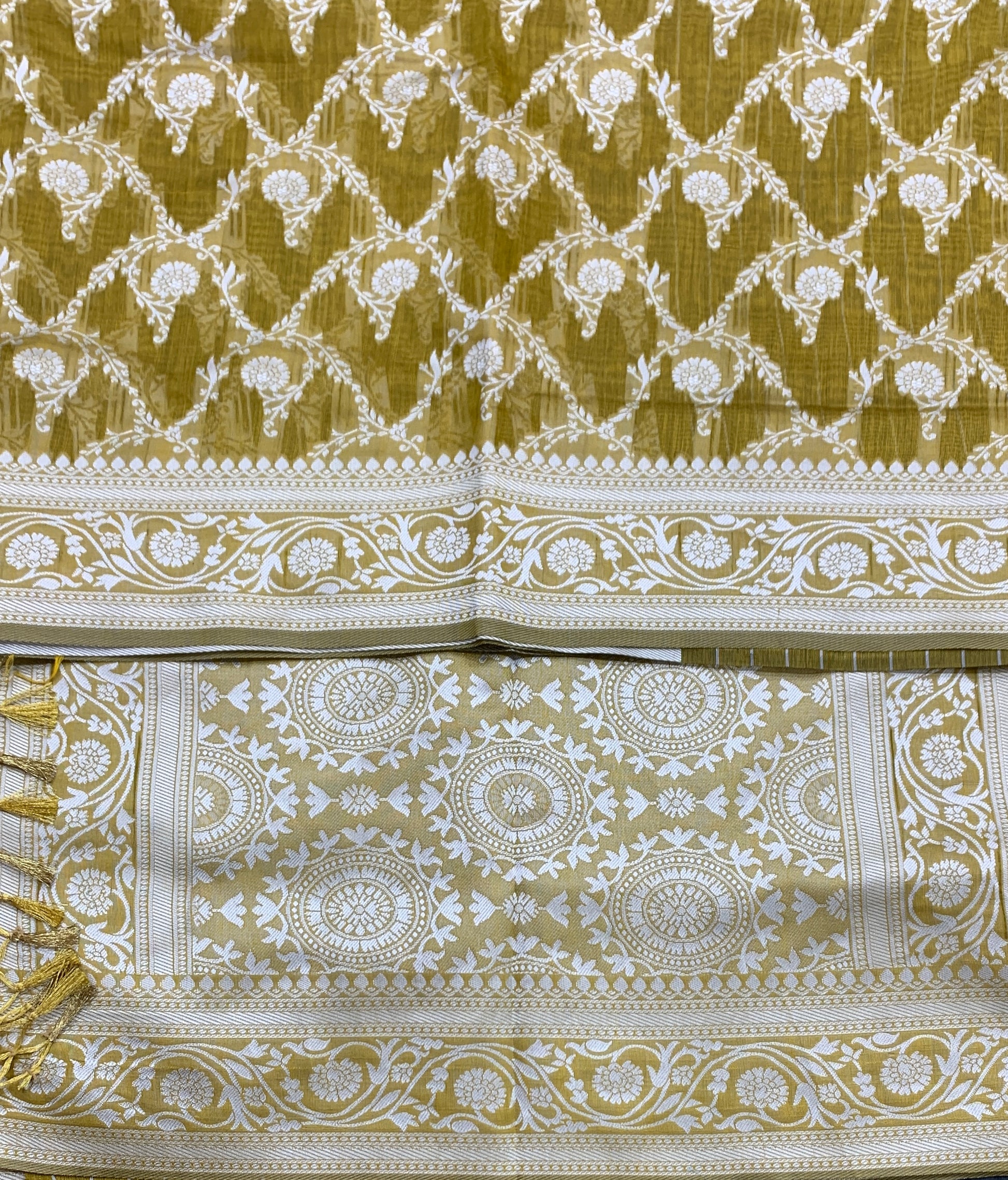 Banaras Katan Saree Pasipayaru Colour with Katan Work Border