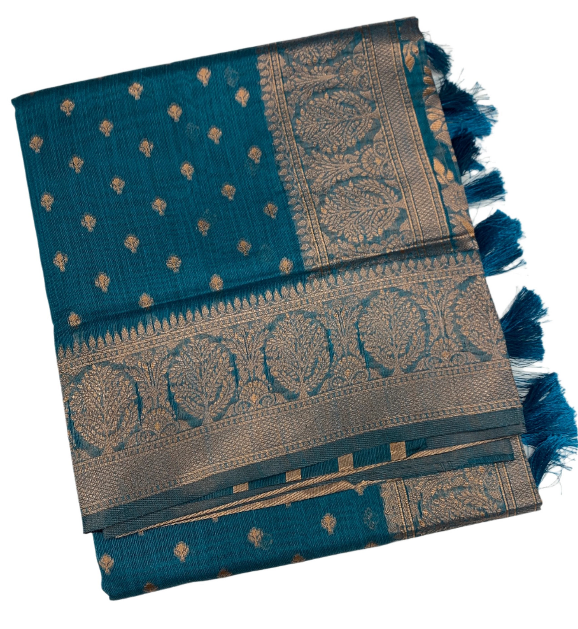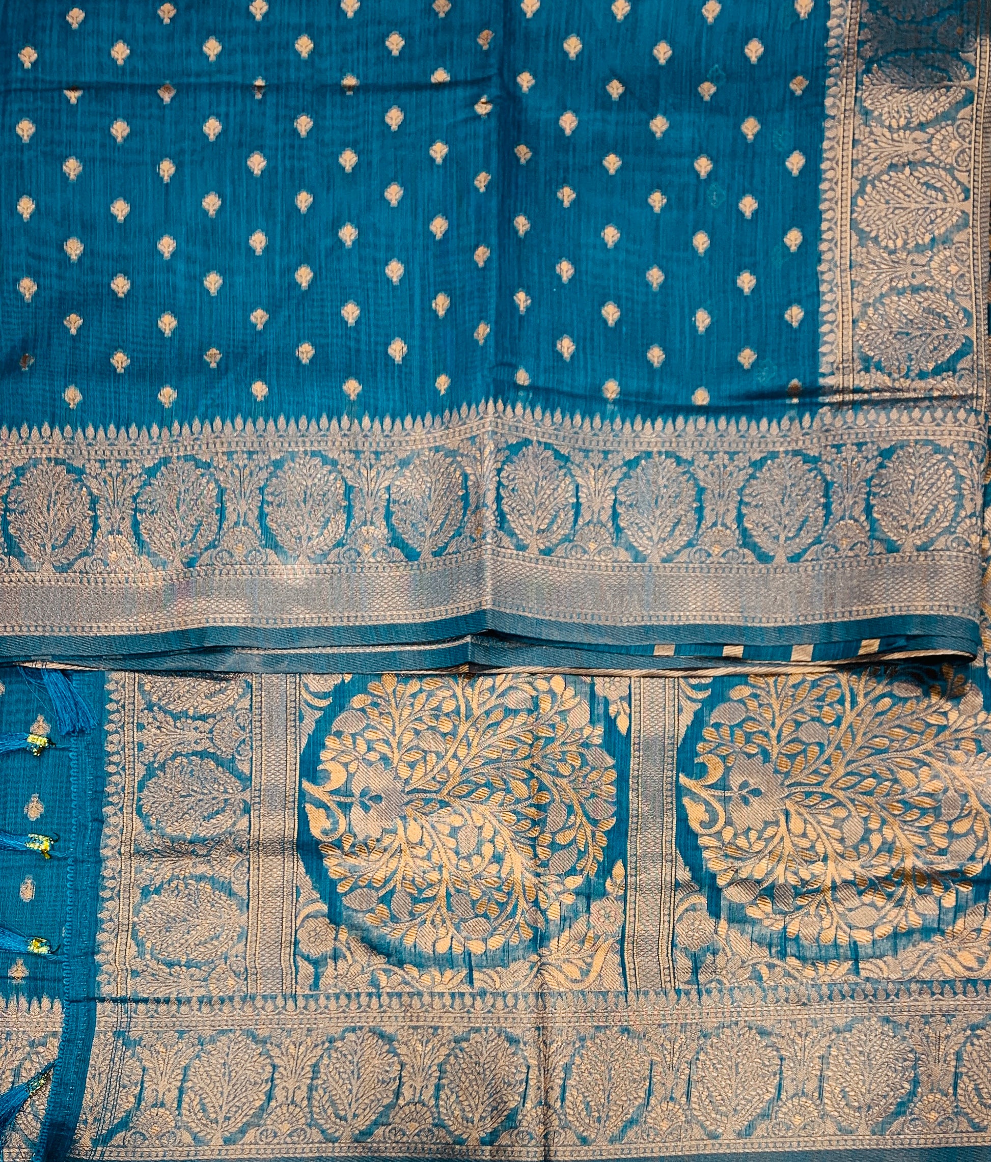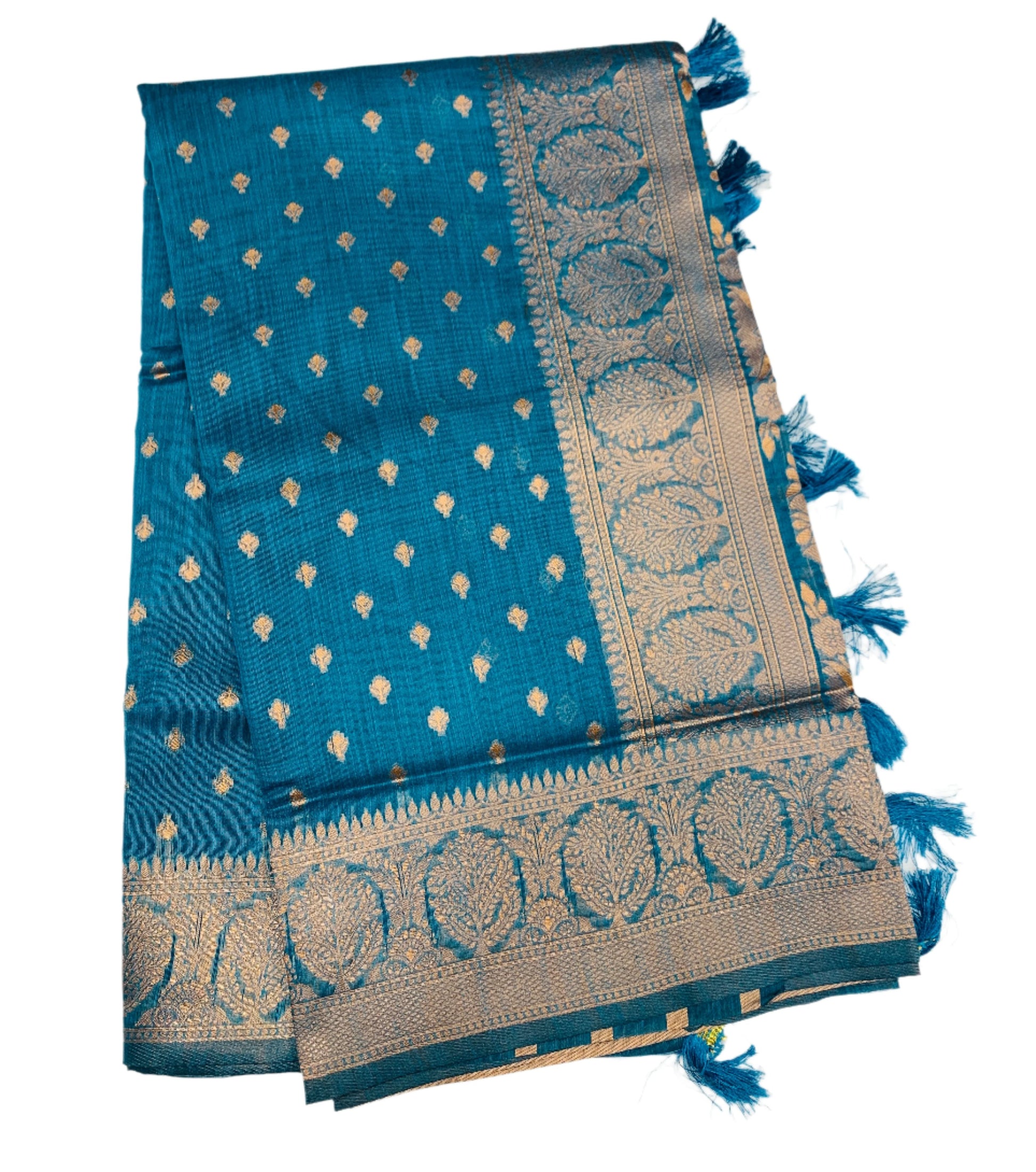 Banaras Katan Saree Peacock Blue Colour with Katan Work Border