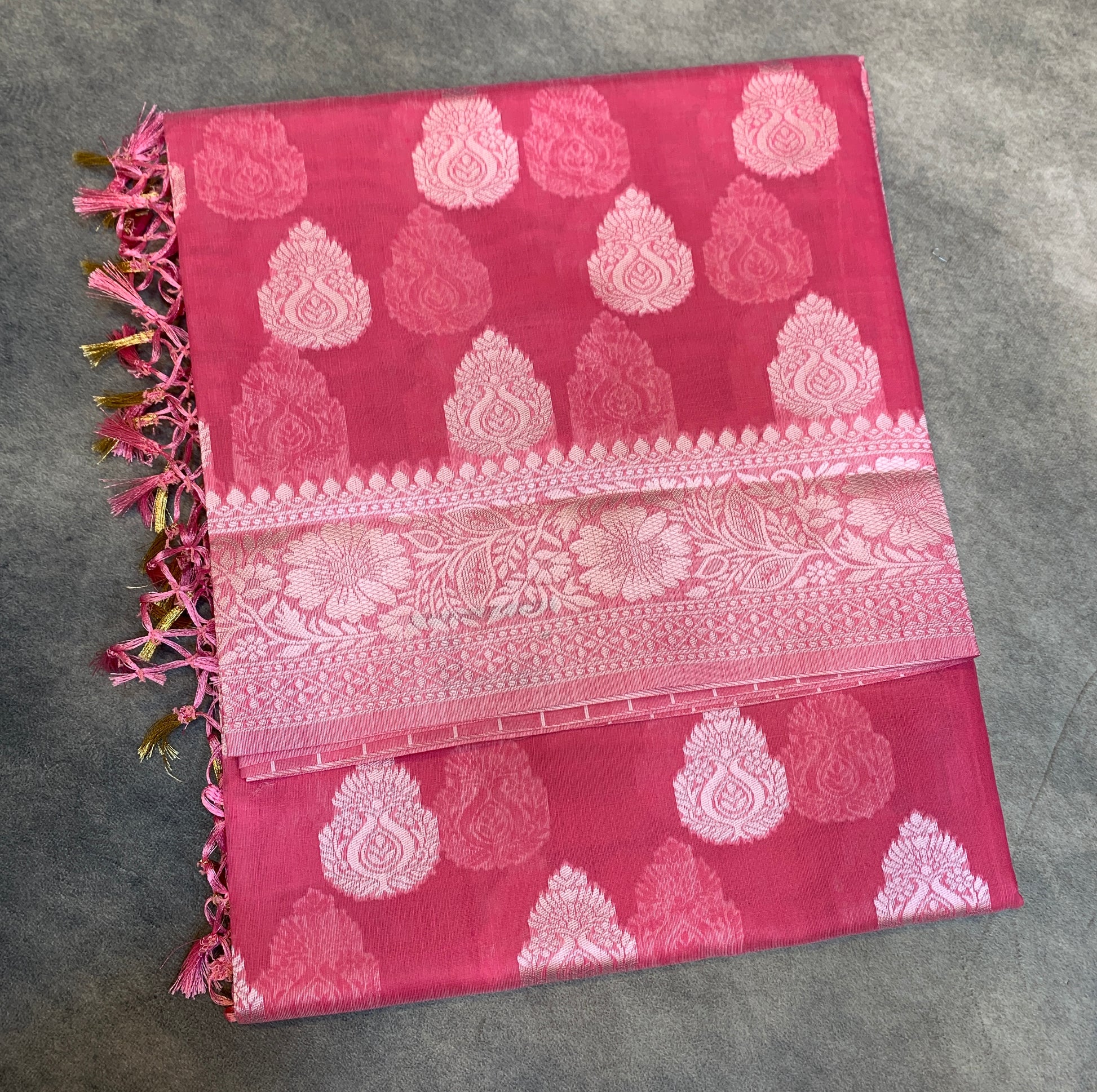 Banaras Katan Saree Pink Colour with Katan Work Border