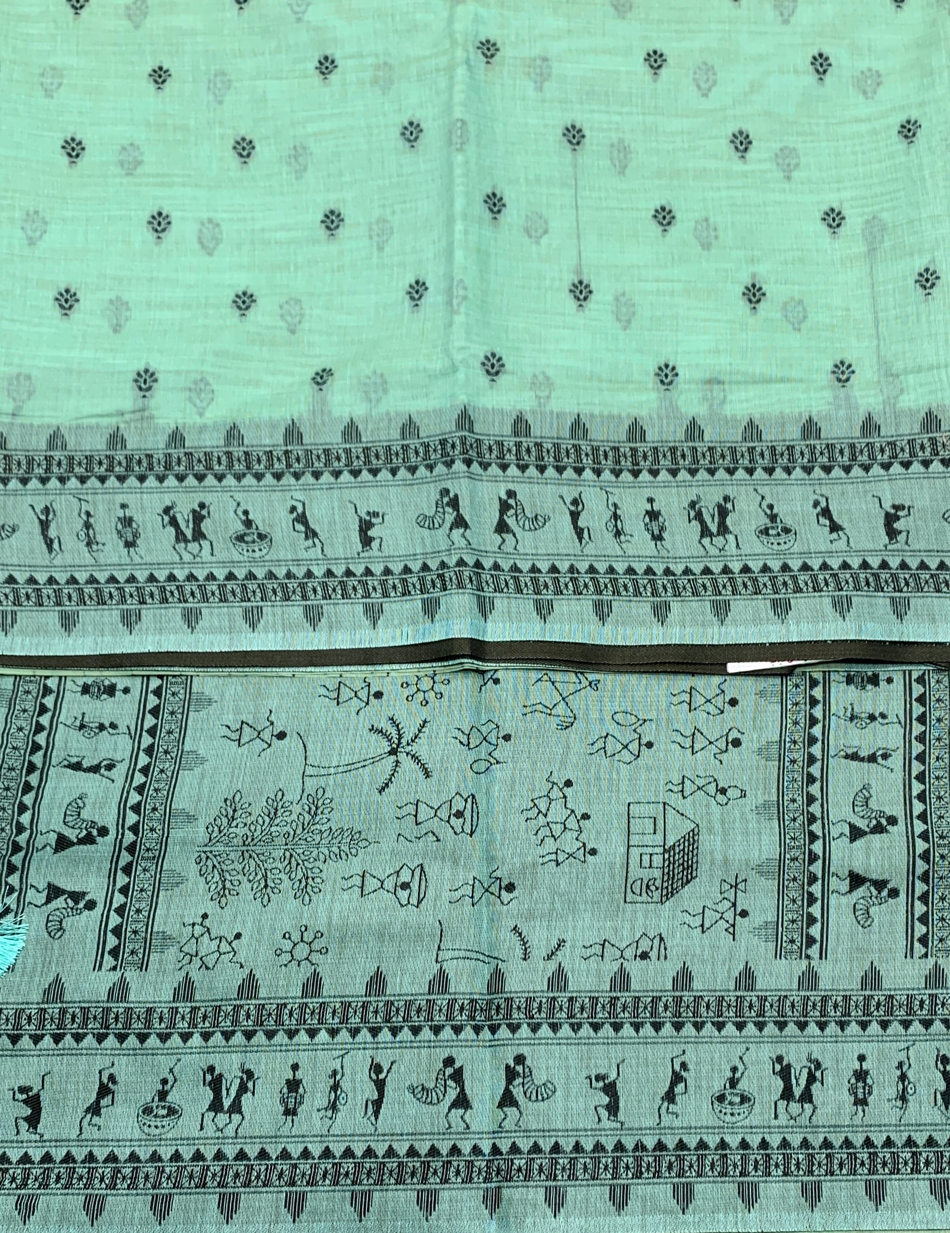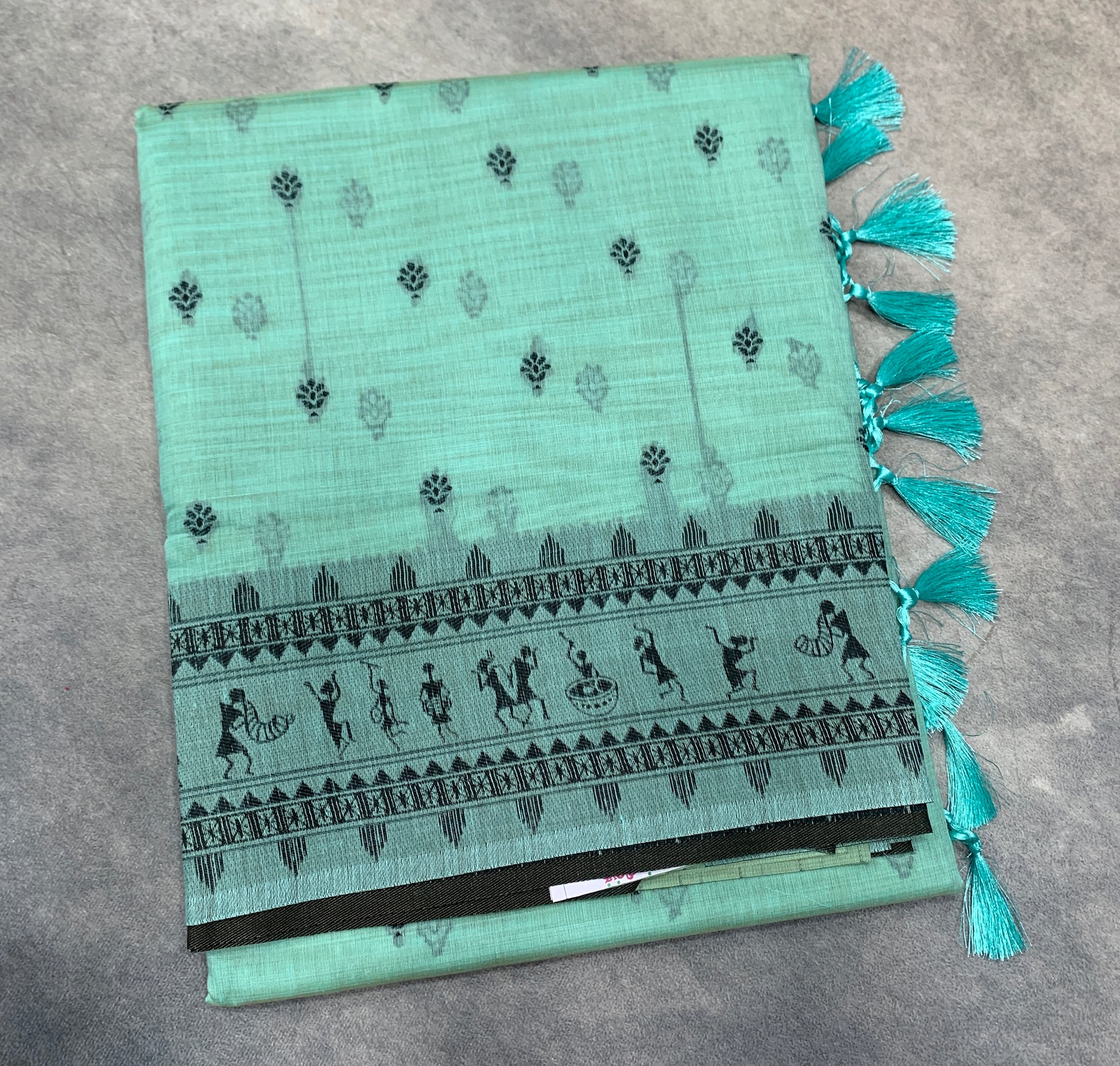 Banaras Katan Saree Sapphire Colour with Katan Work Border.