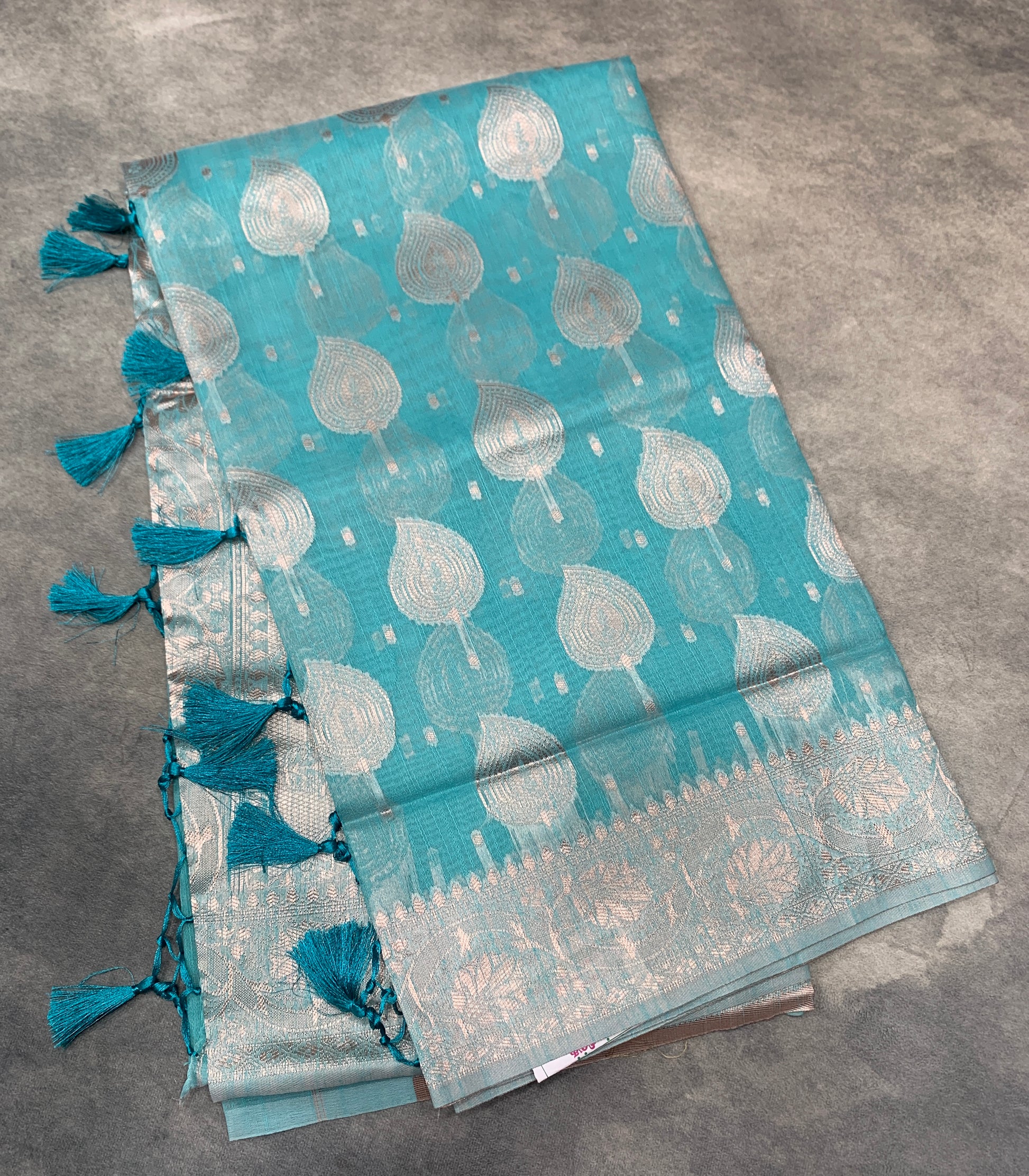 Banaras Katan Saree Sky Blue Colour with Katan Work Border.