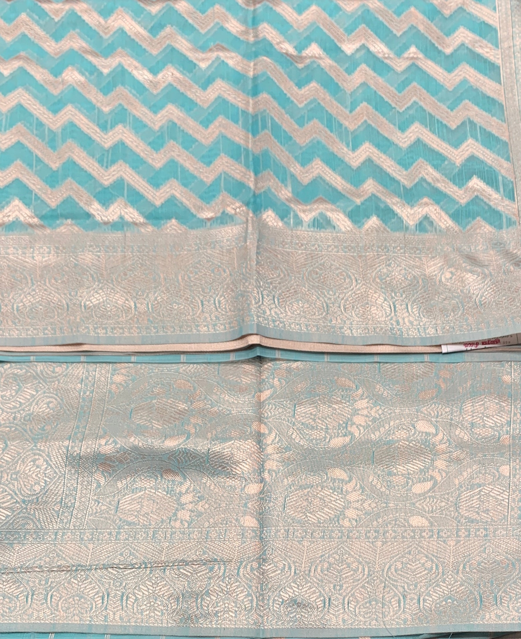 Banaras Katan Saree Sky Blue Colour with Katan Work Border.