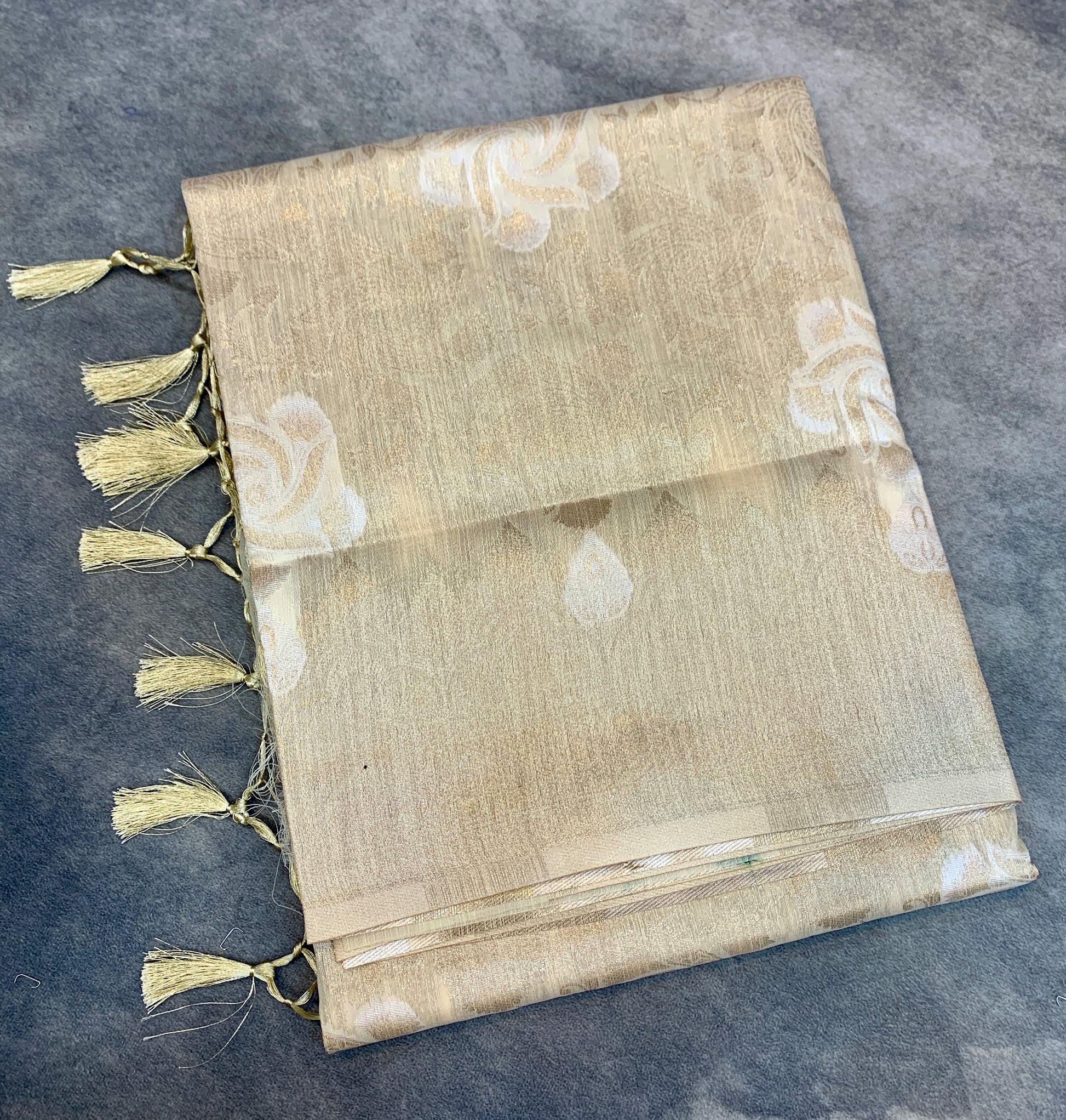 Banaras Katan Saree Tussar Colour with Katan Work Border.