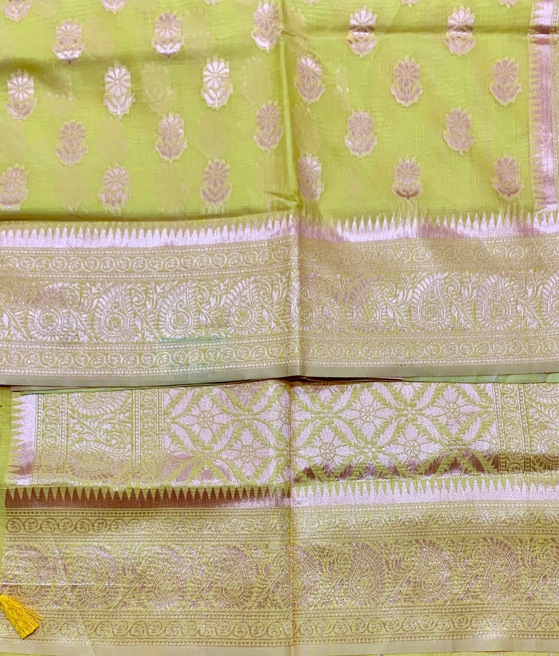 Banaras Katan Saree Yellow Colour with Katan Work Border.