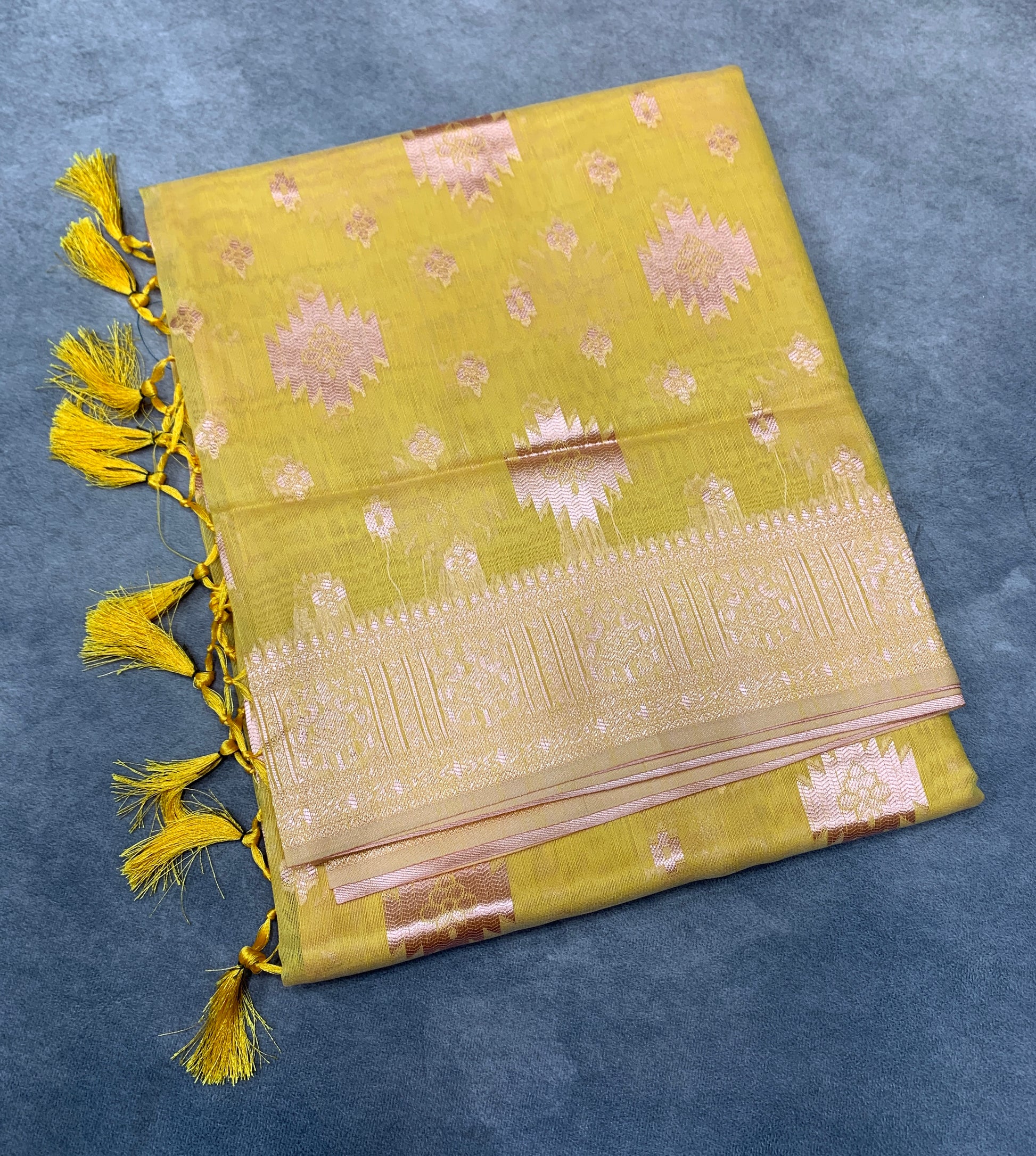 Banaras Katan Saree Yellow Colour with Katan Work Border.