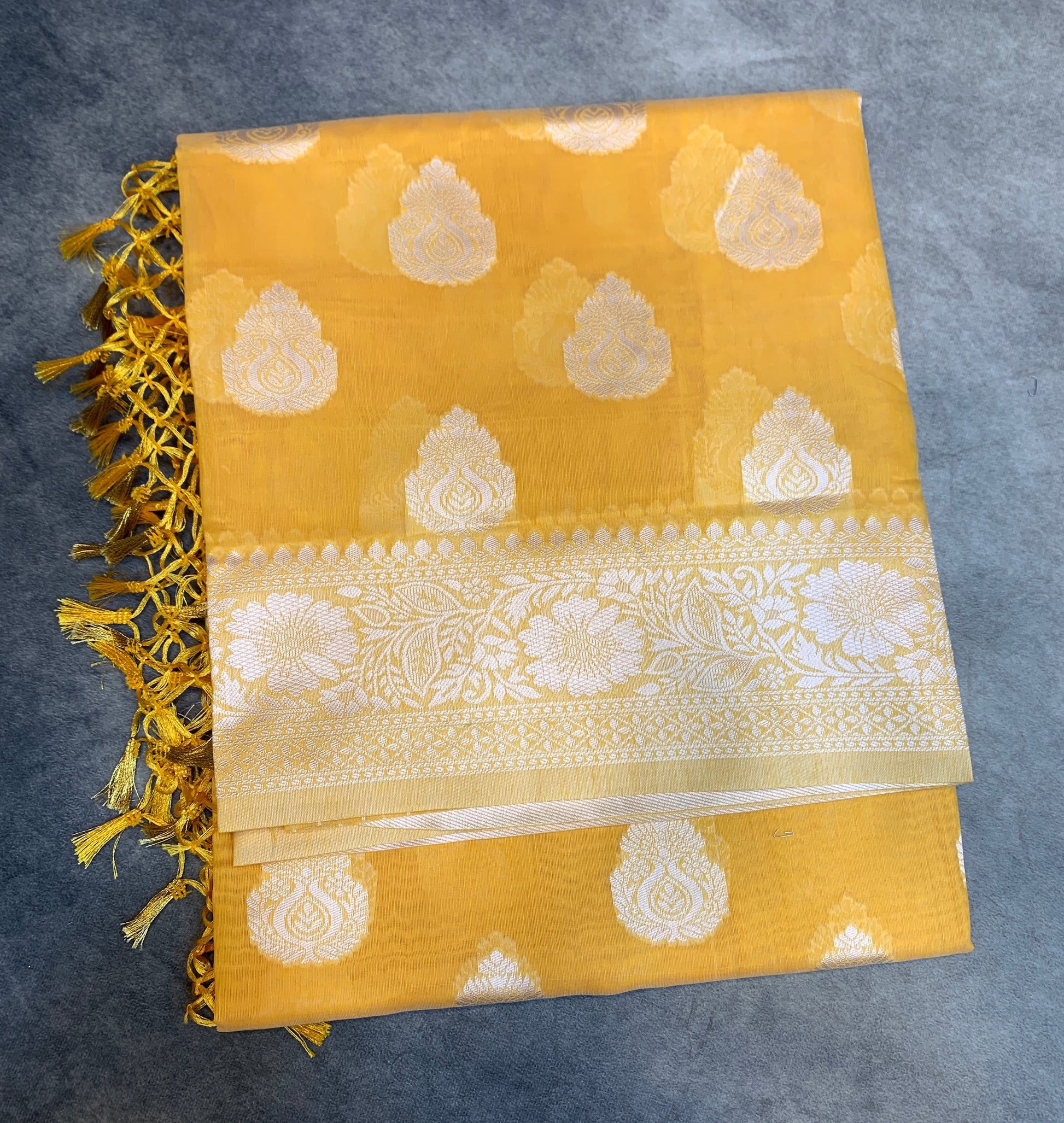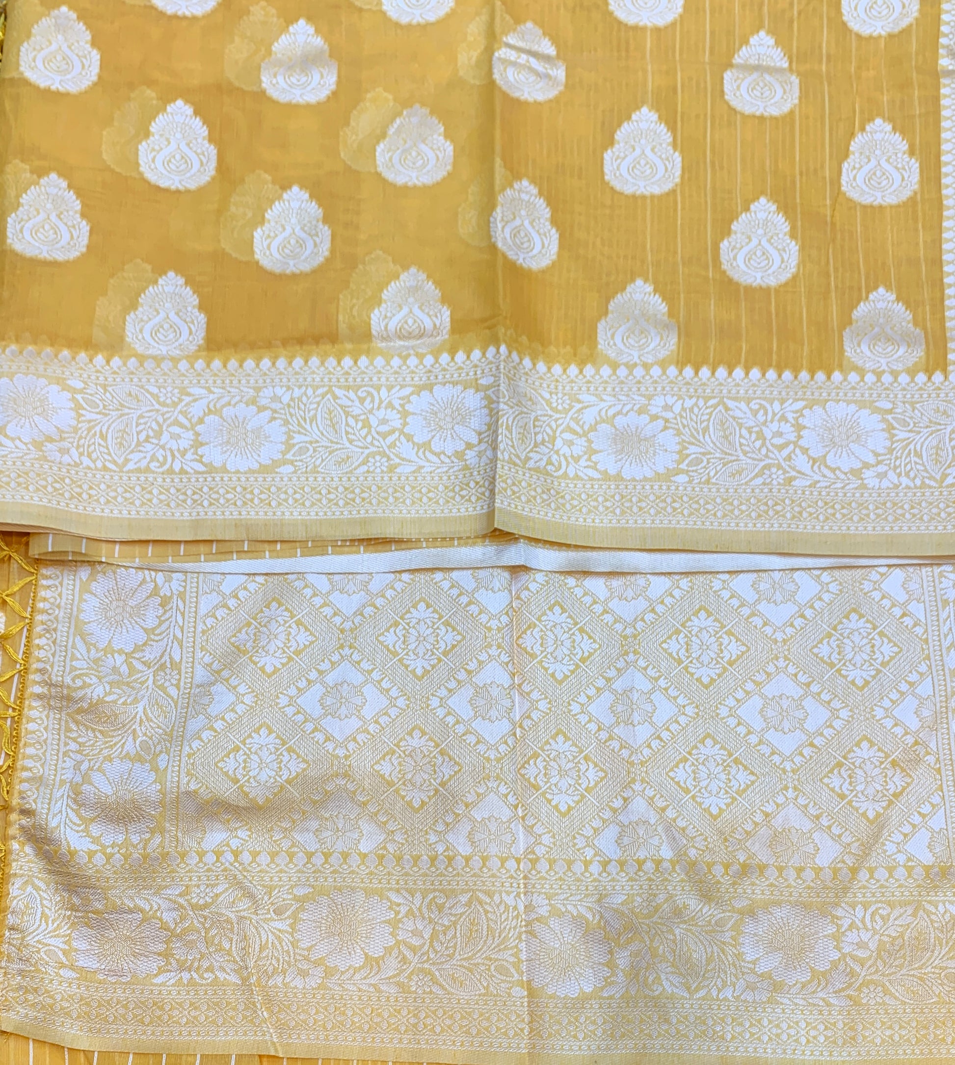 Banaras Katan Saree Yellow Colour with Katan Work Border