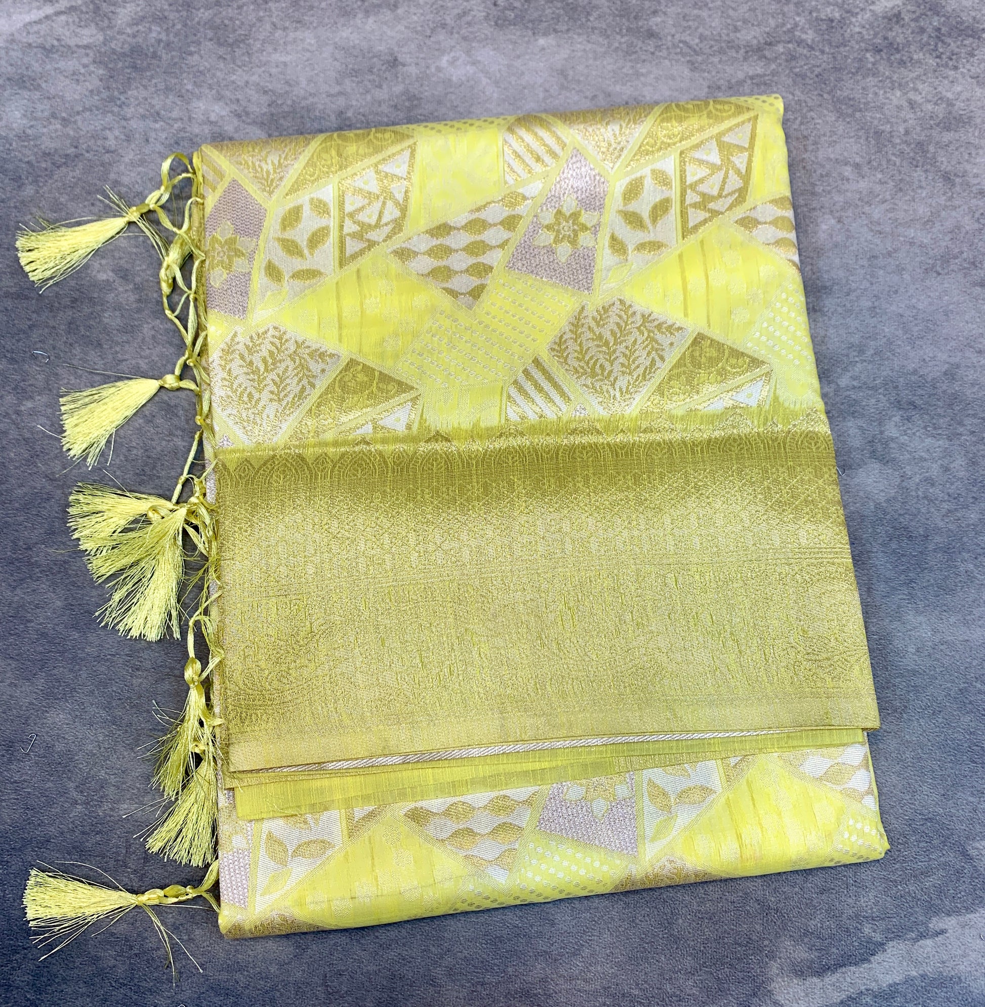 Banaras Katan Saree Yellow Colour with Katan Work Border