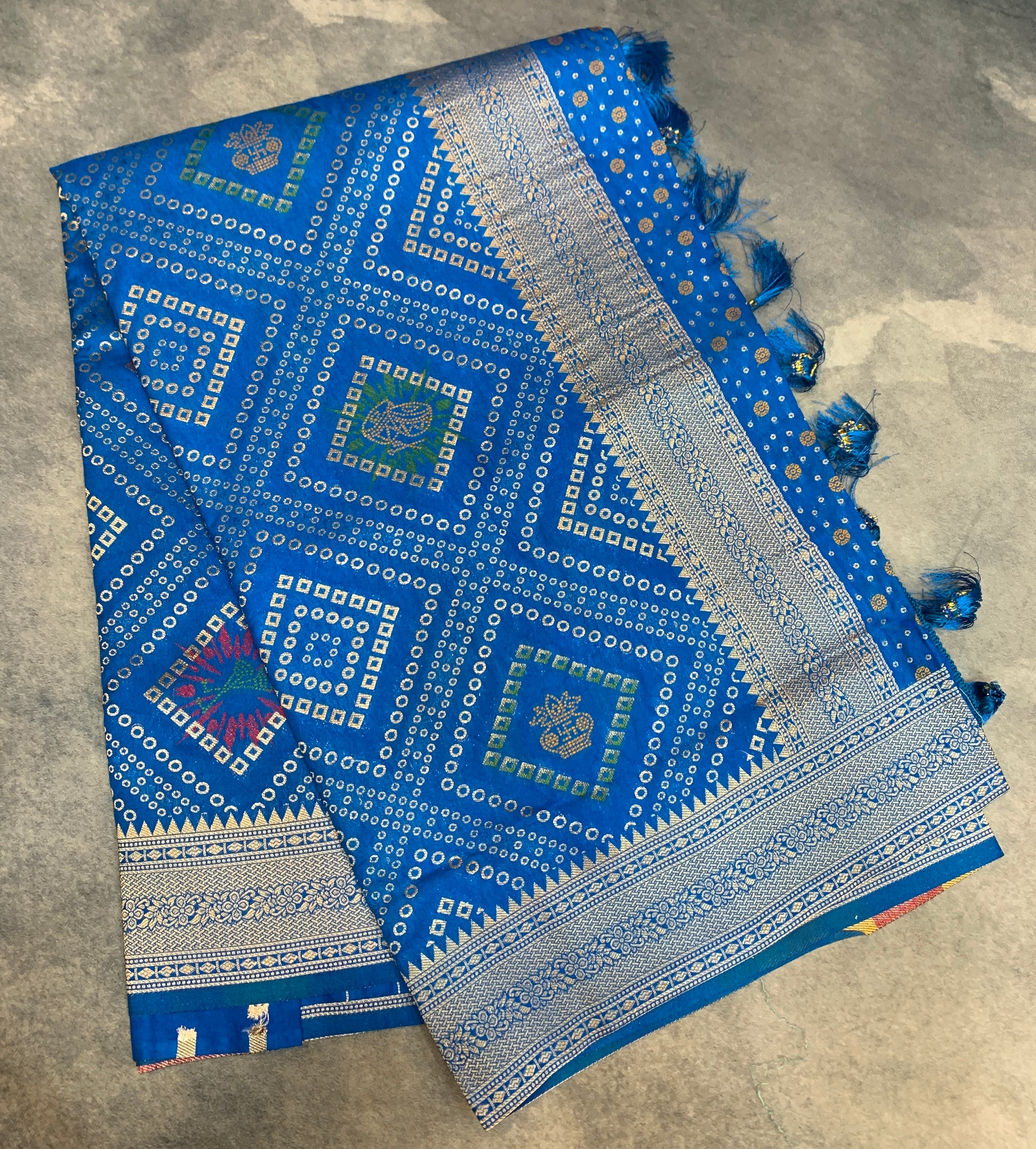 Banaras Saree Soft Silk Saree Sky Blue Colour with Sliver Colour Floral Design Border