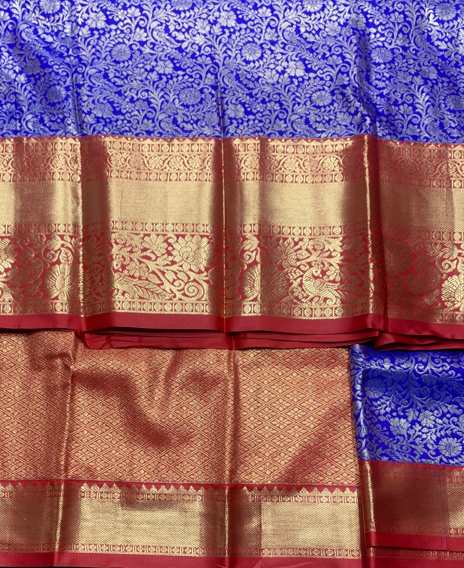 Blue Colour Semi Silk Saree with Big Pink Border.