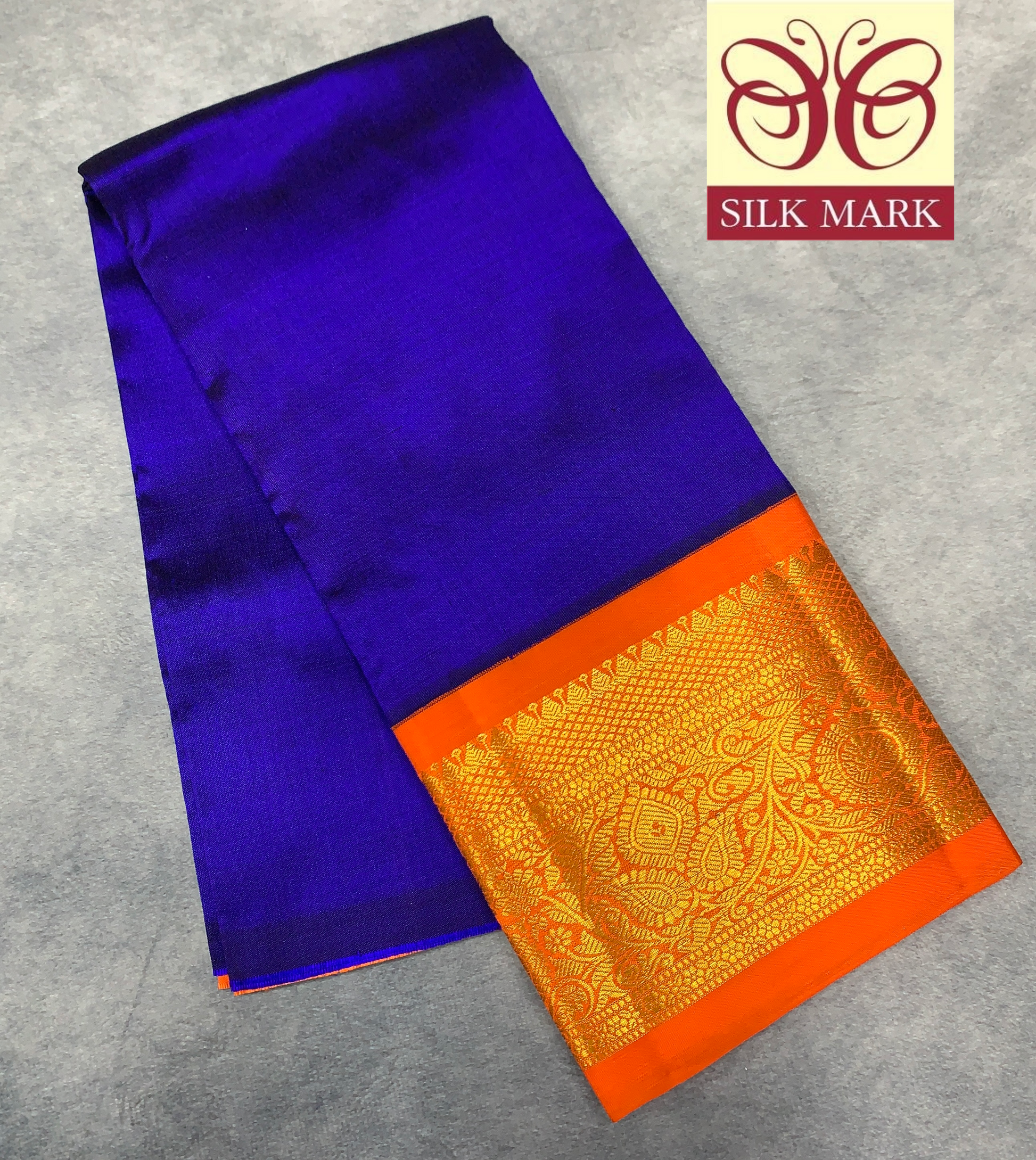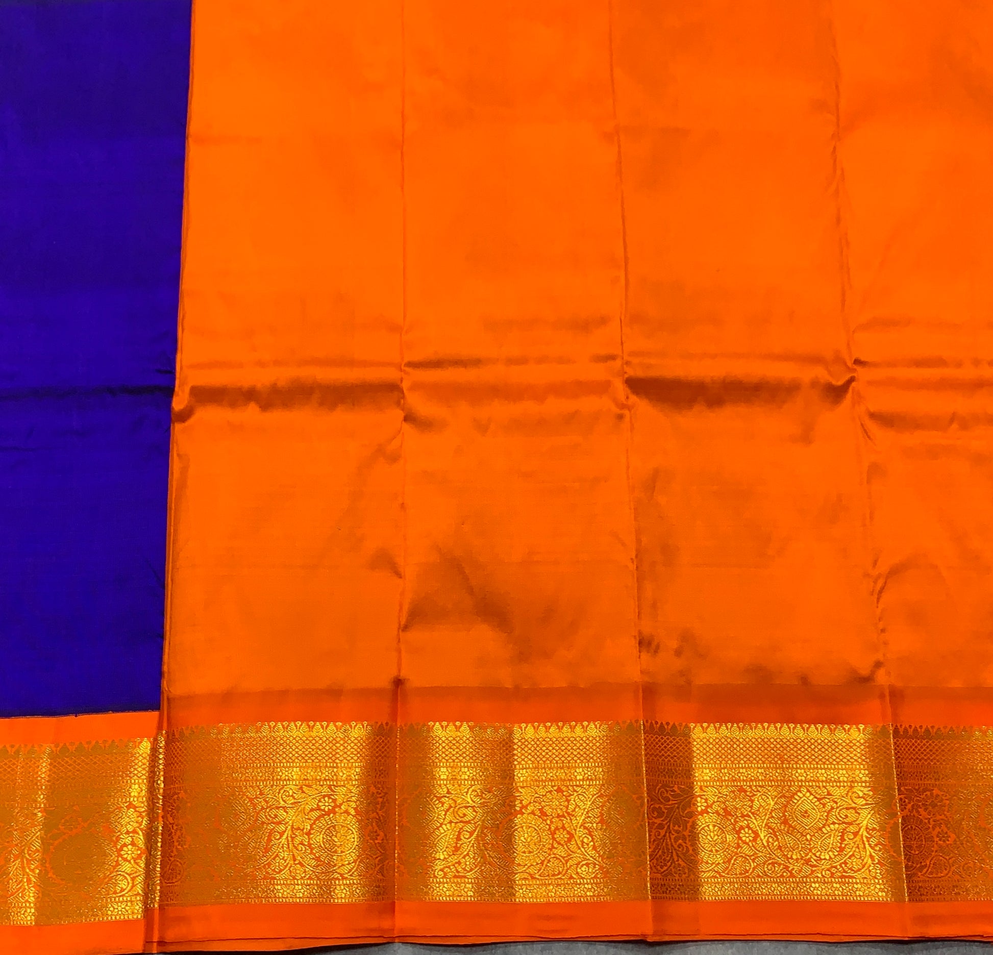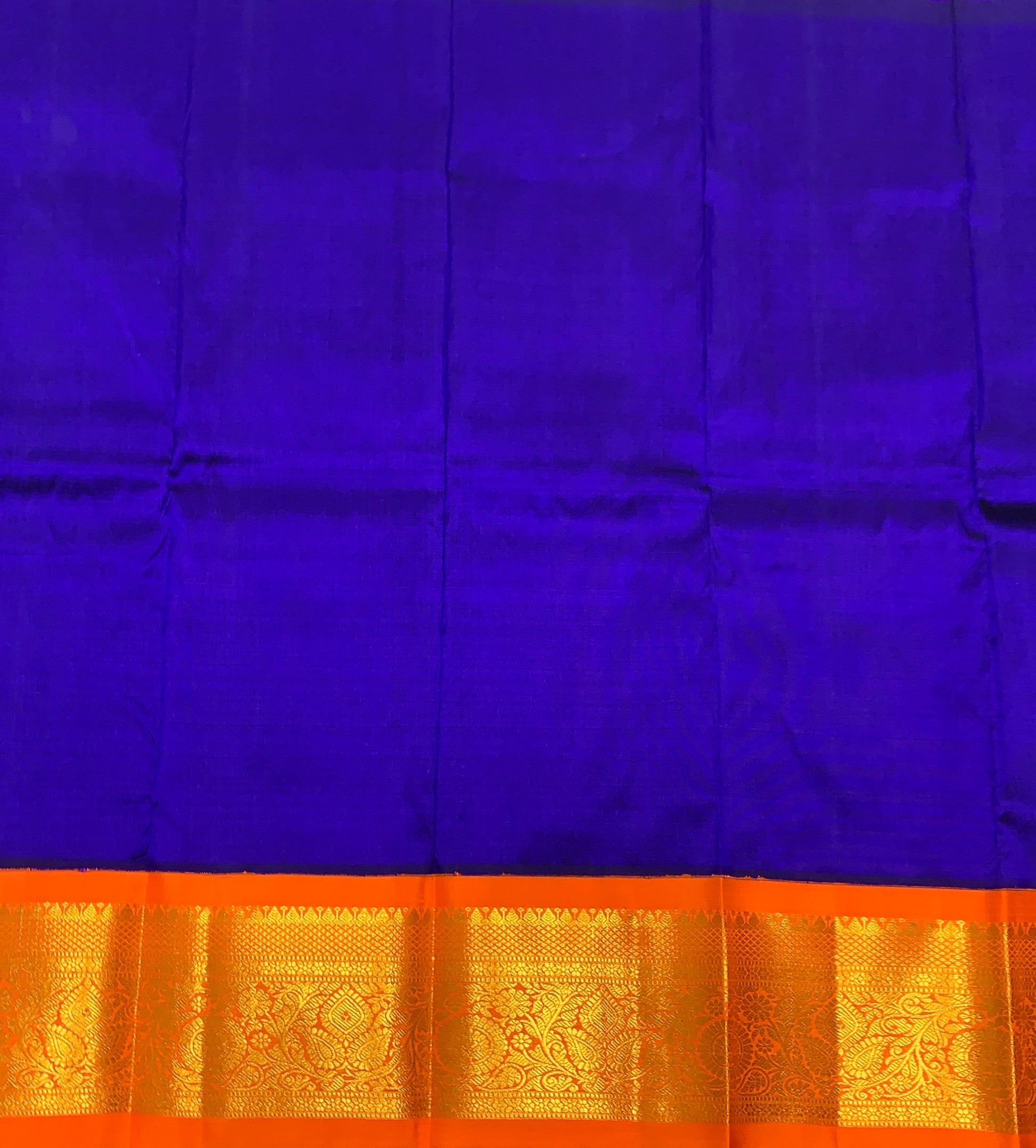 Blue shade with Orange Contrast Border Pure Kanchipuram Pattu Pavadai Material for Kids Age Newborn to 2 Years