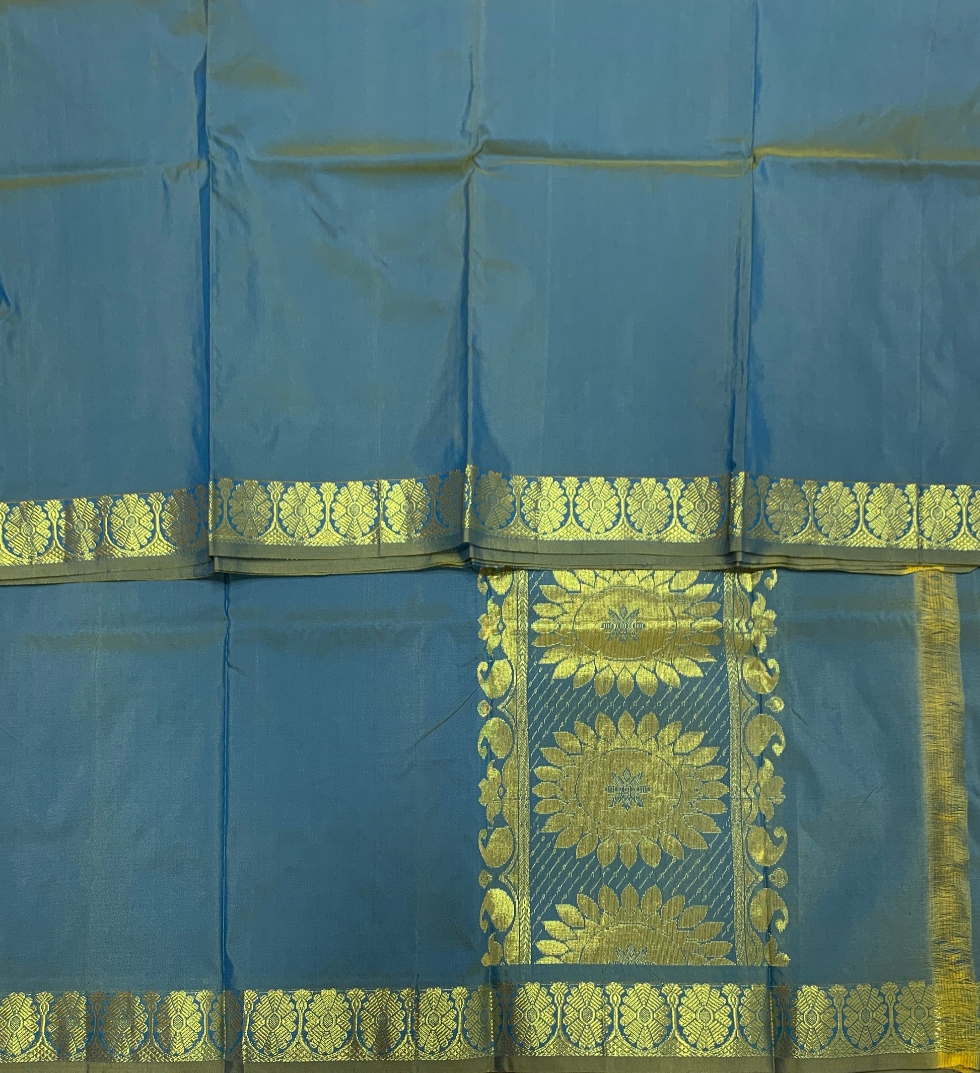 Bluish Gold Colour Half Saree Shawl with Zari Border.