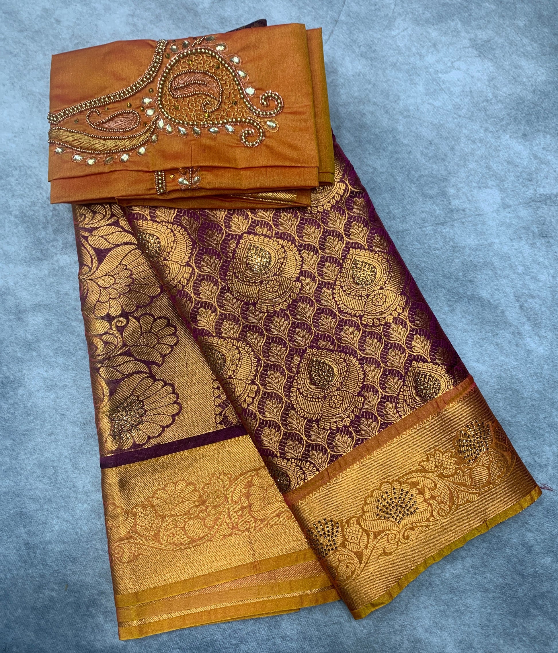 Bridal Vegan Silk Saree Beetroot Pink shade with Golden Yellow Border Border. Unstitched blouse in Aari work.