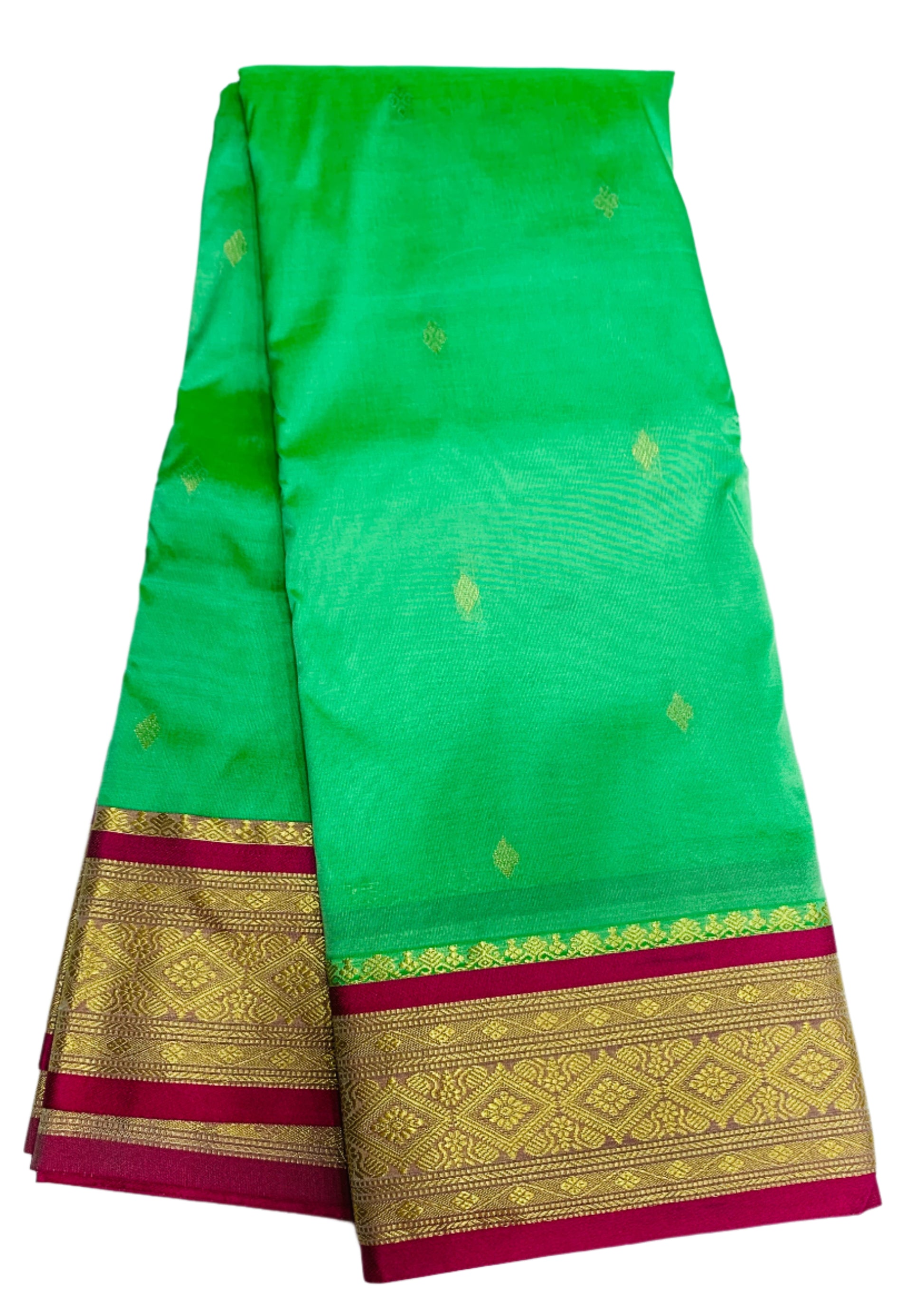 Bright Mint Shade Saree with Golden and Pink Border
