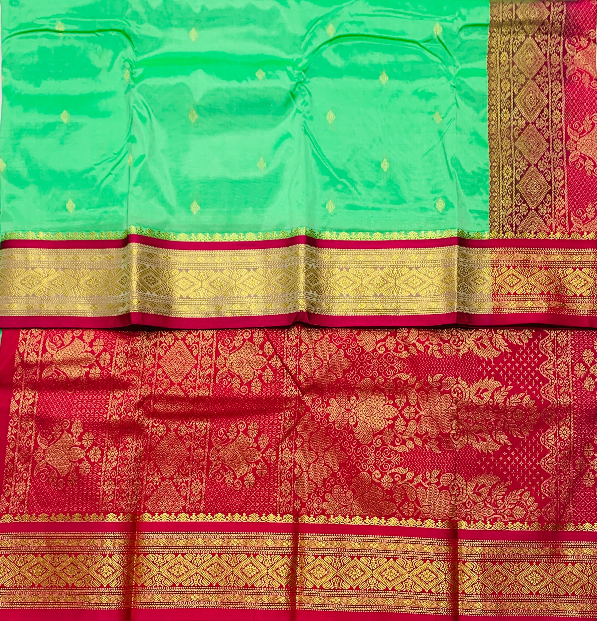 Body colour : Bright Mint Shade Zari Butta