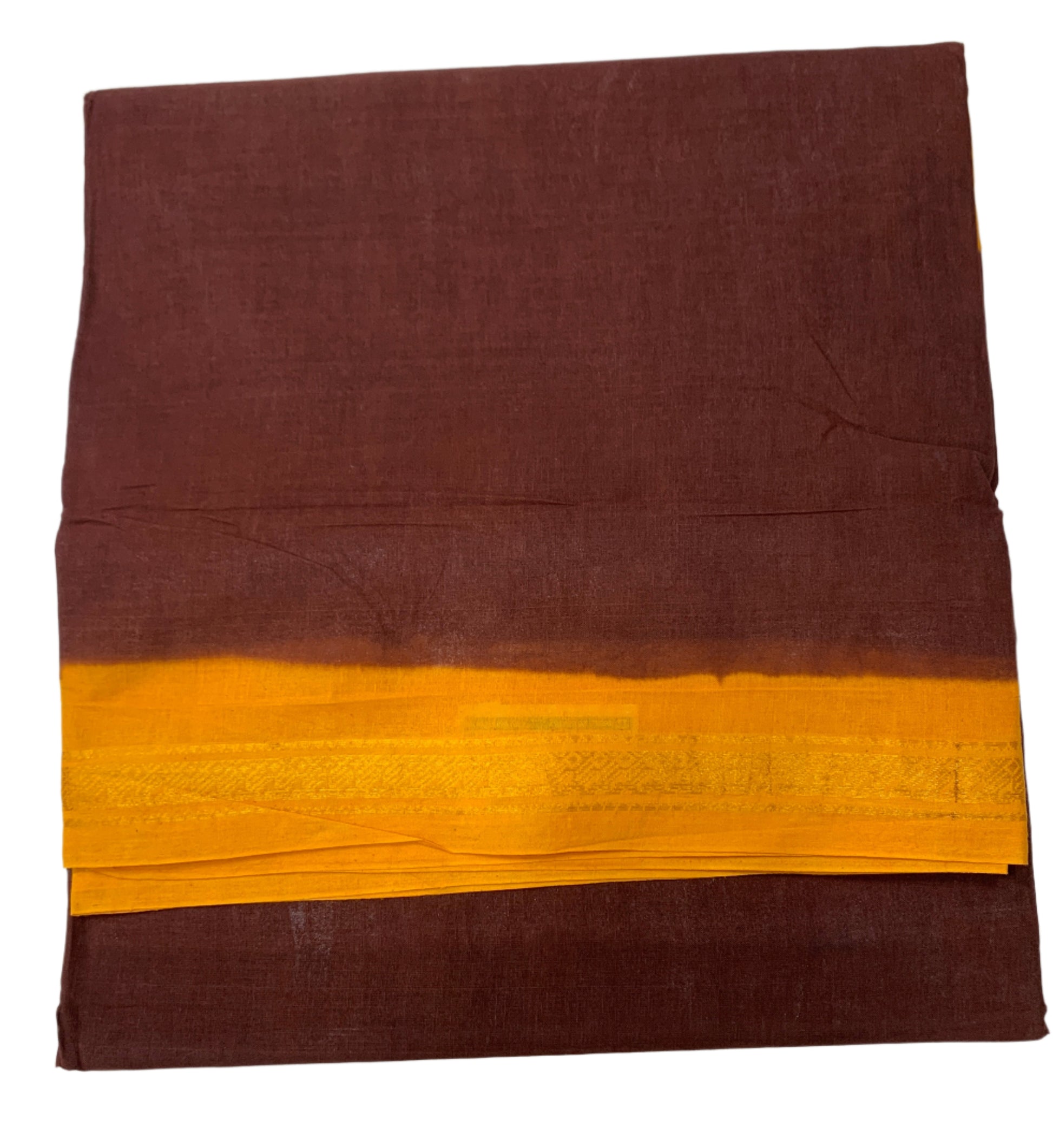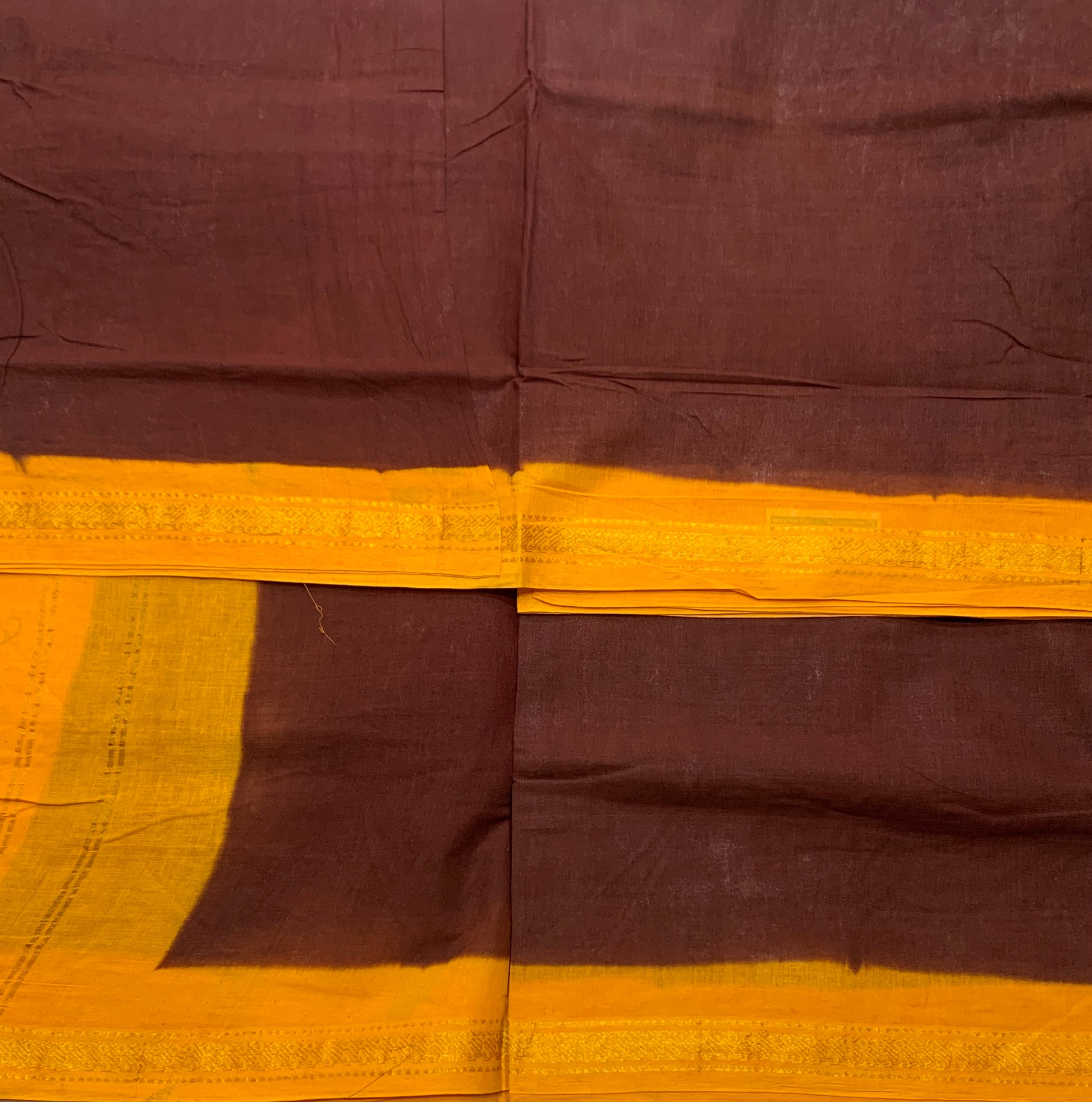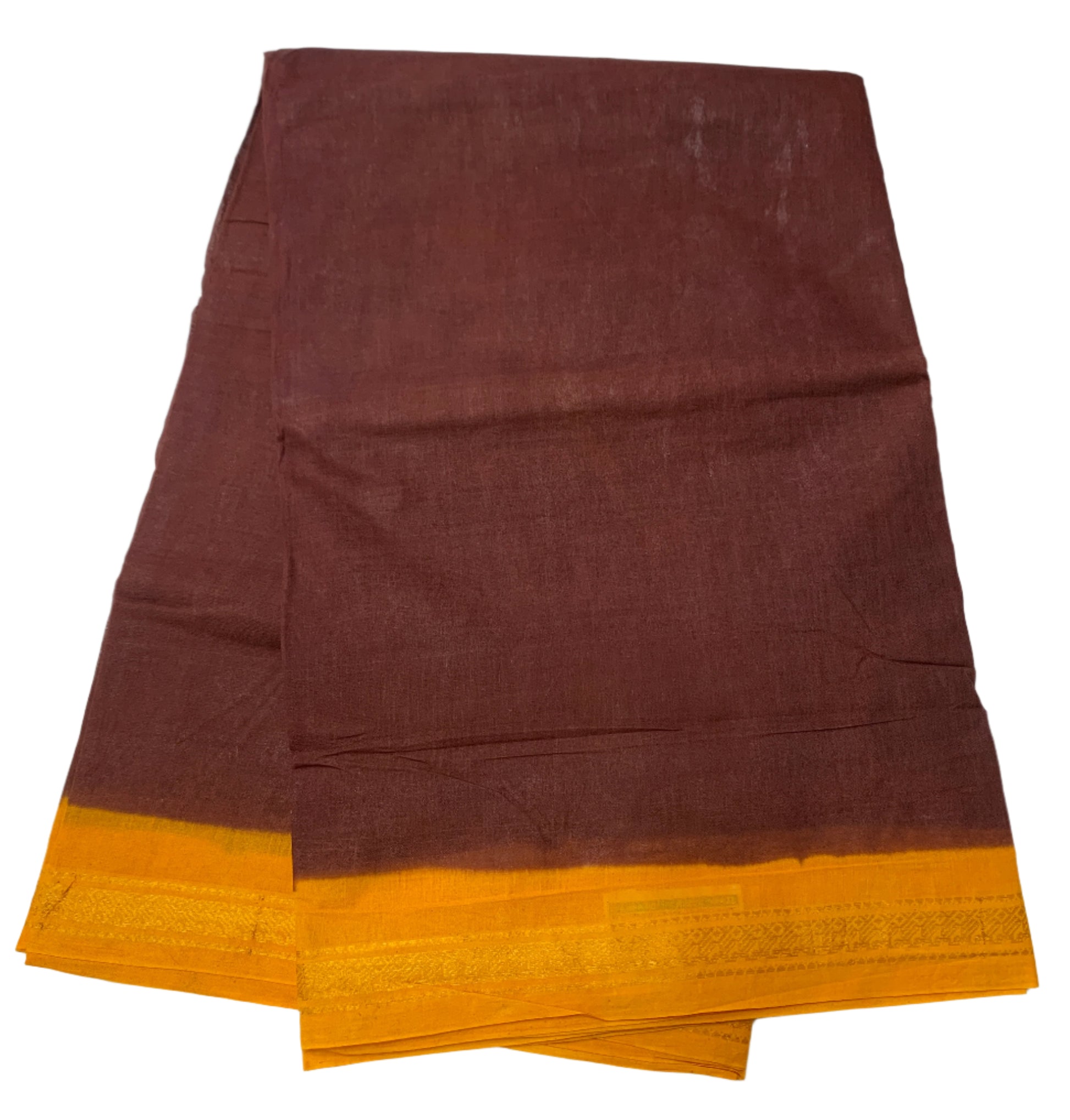 9 yards Cotton Saree Brown Colour with Yellow border.