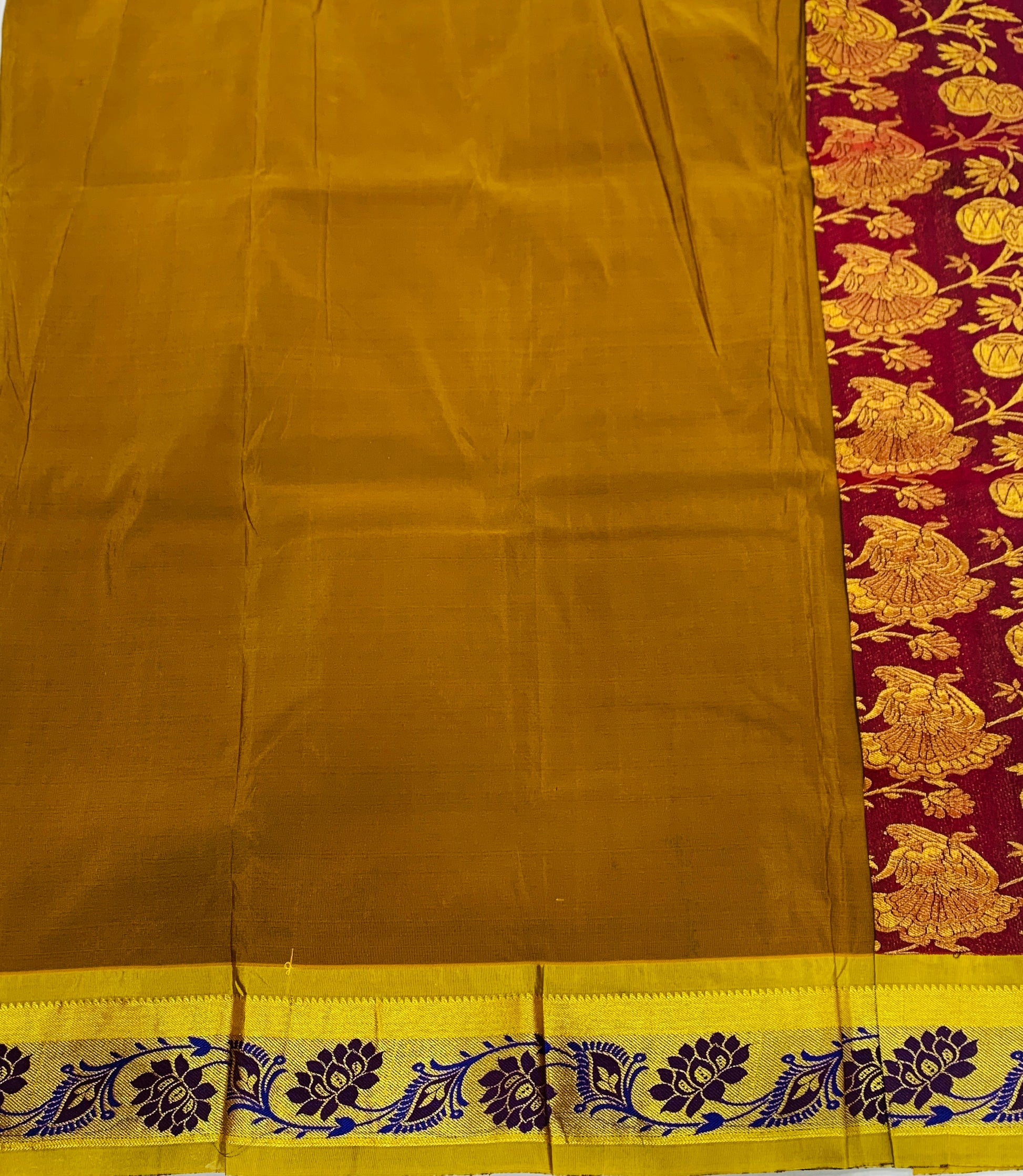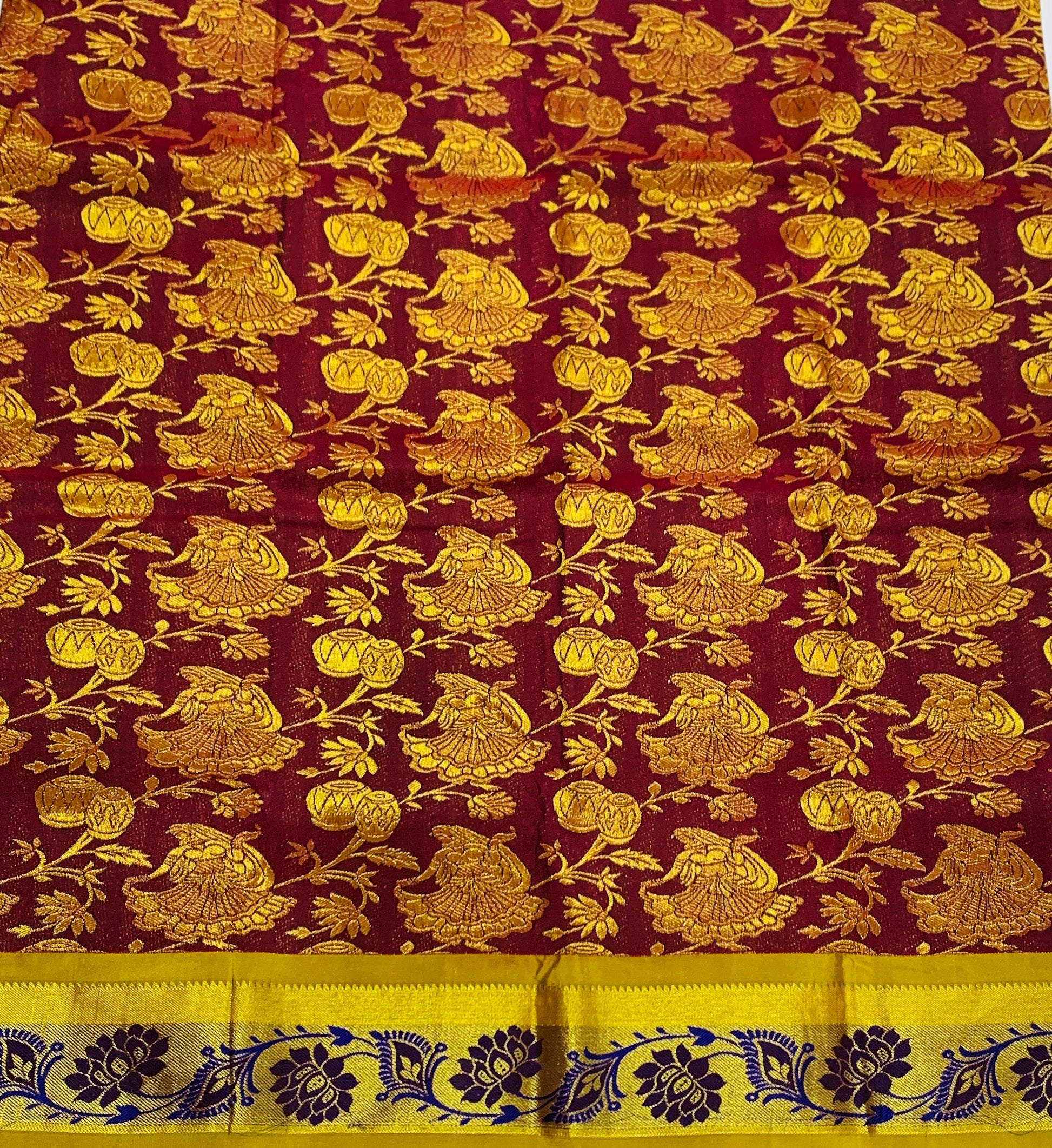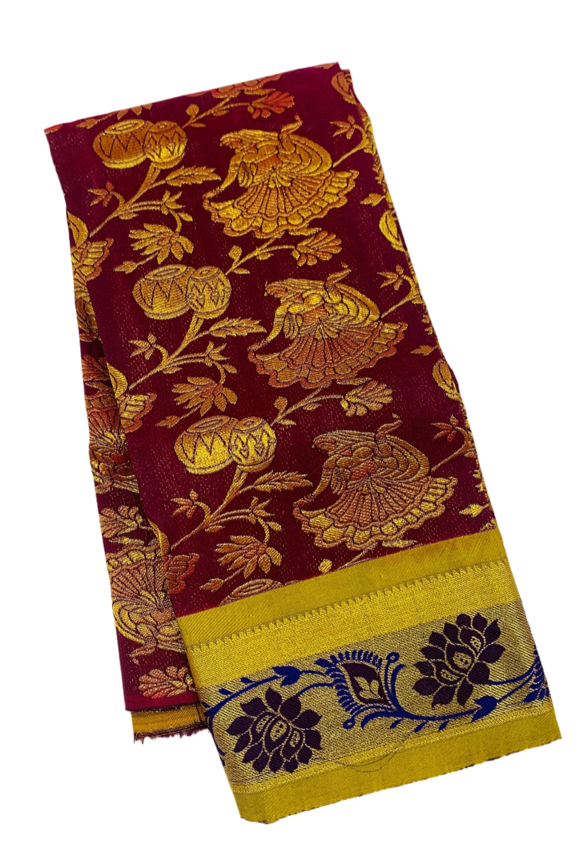 Brown Shade Vegan Silk Kids Pattu Pavadai with contrast border unstitched Pattu Pavadai material for kids for age newborn to 2 Years