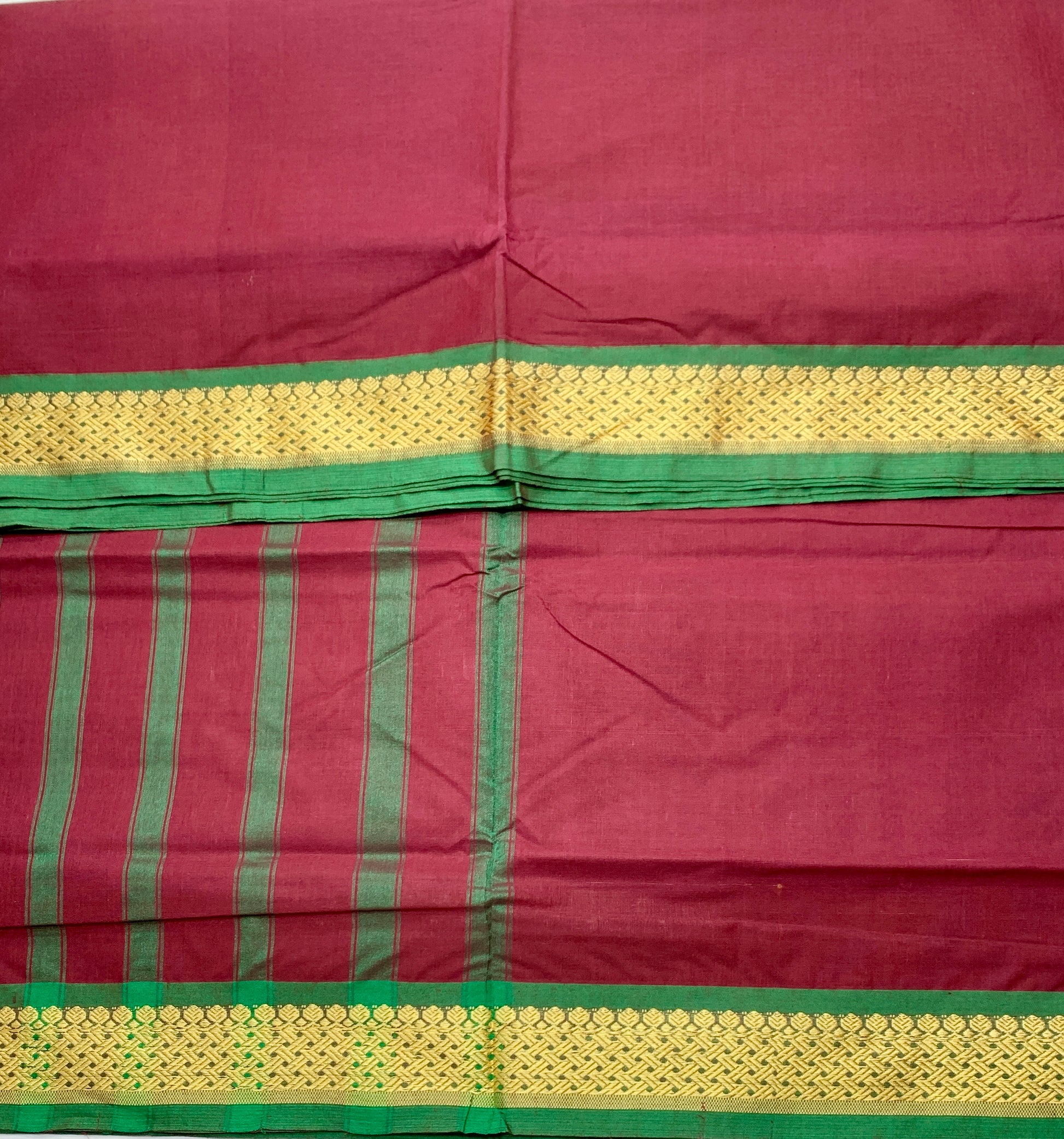 Chettinad Cotton Saree Brown Shade with Green Border.
