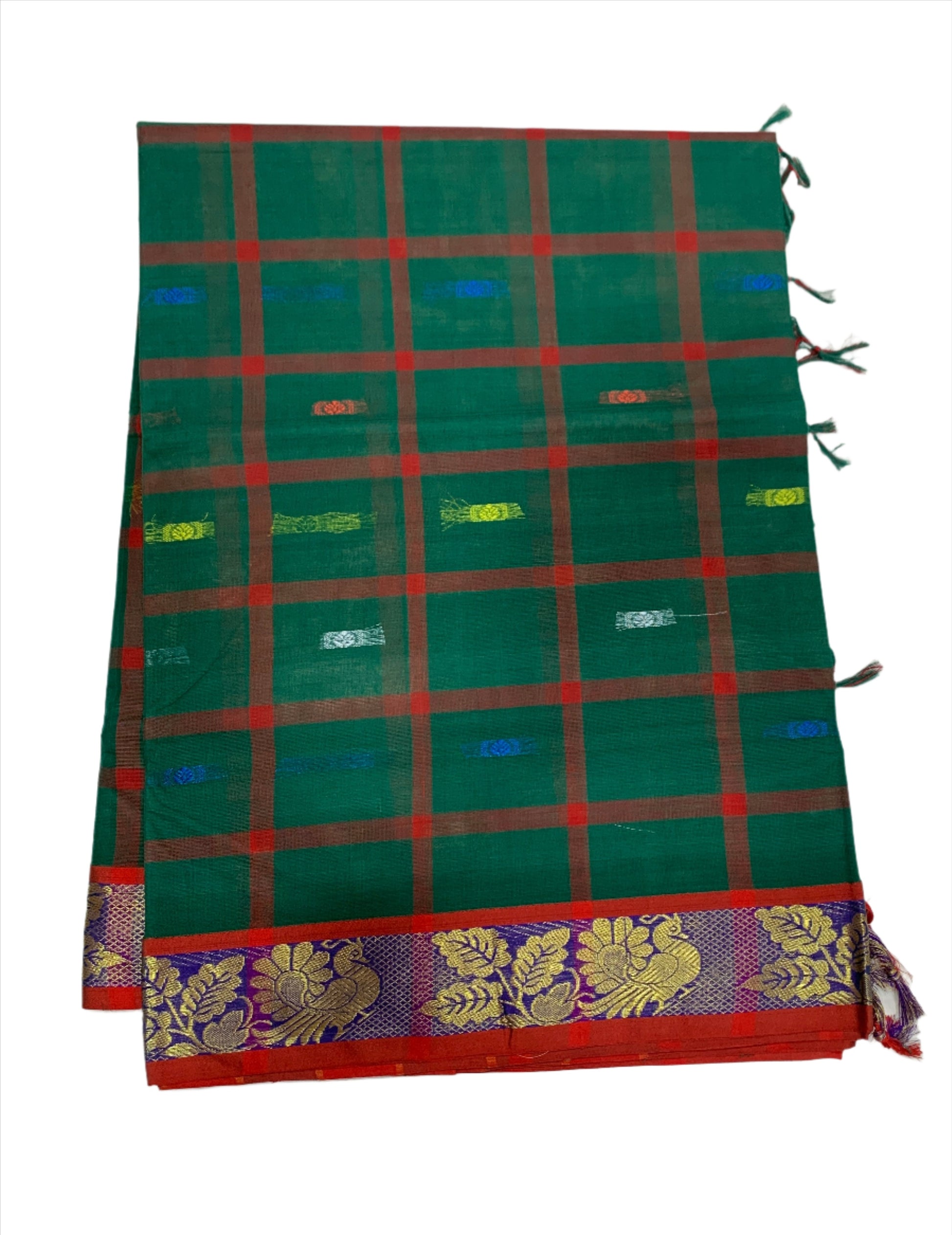 Beautiful Dark Green shade Chettinad cotton. Blue with Peacock with Leaf Design.Light weight and easy to drape.