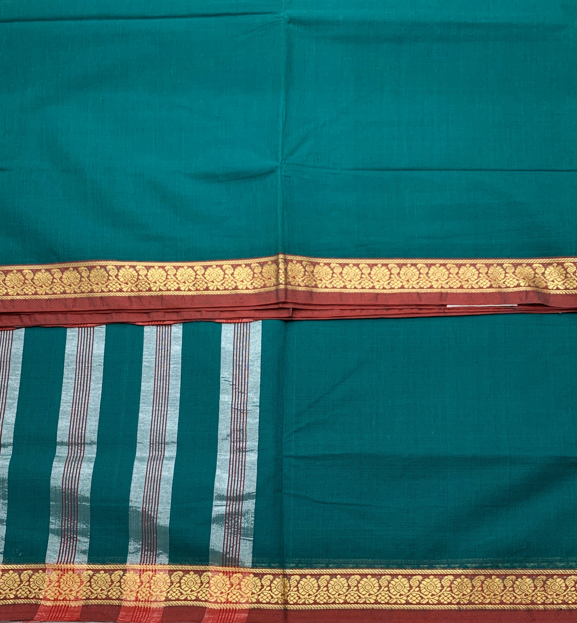 Chettinad Cotton Saree Emerald Green Colour with Brown Border