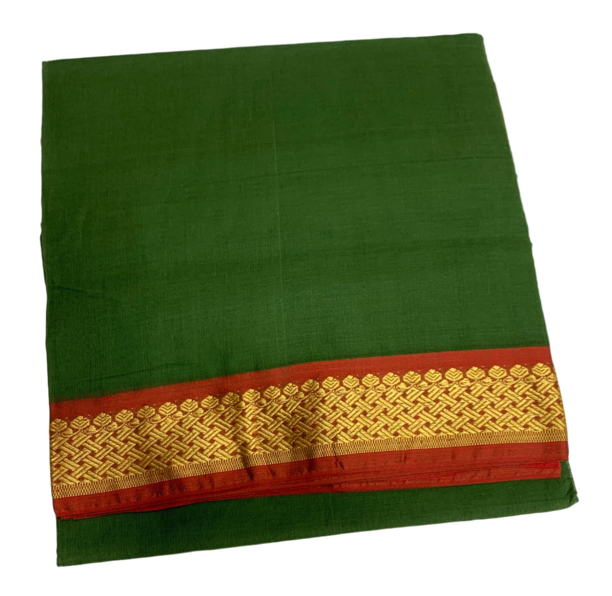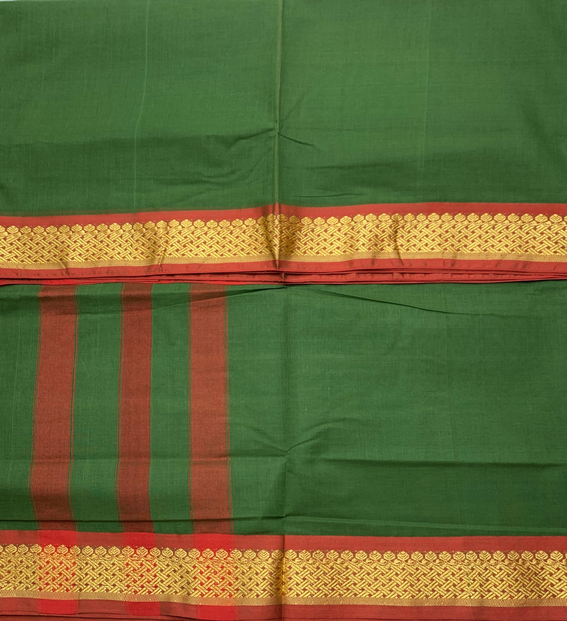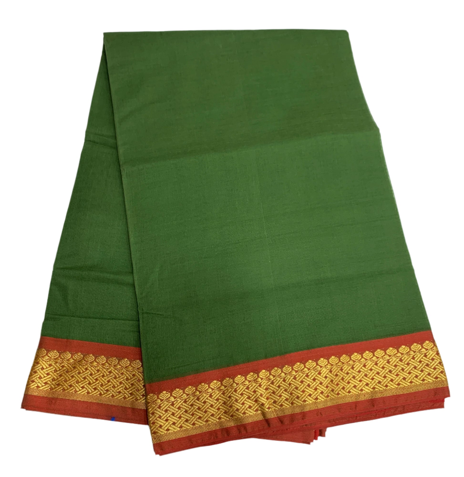 Chettinad Cotton Saree Green Colour with Maroon and Yellow Border