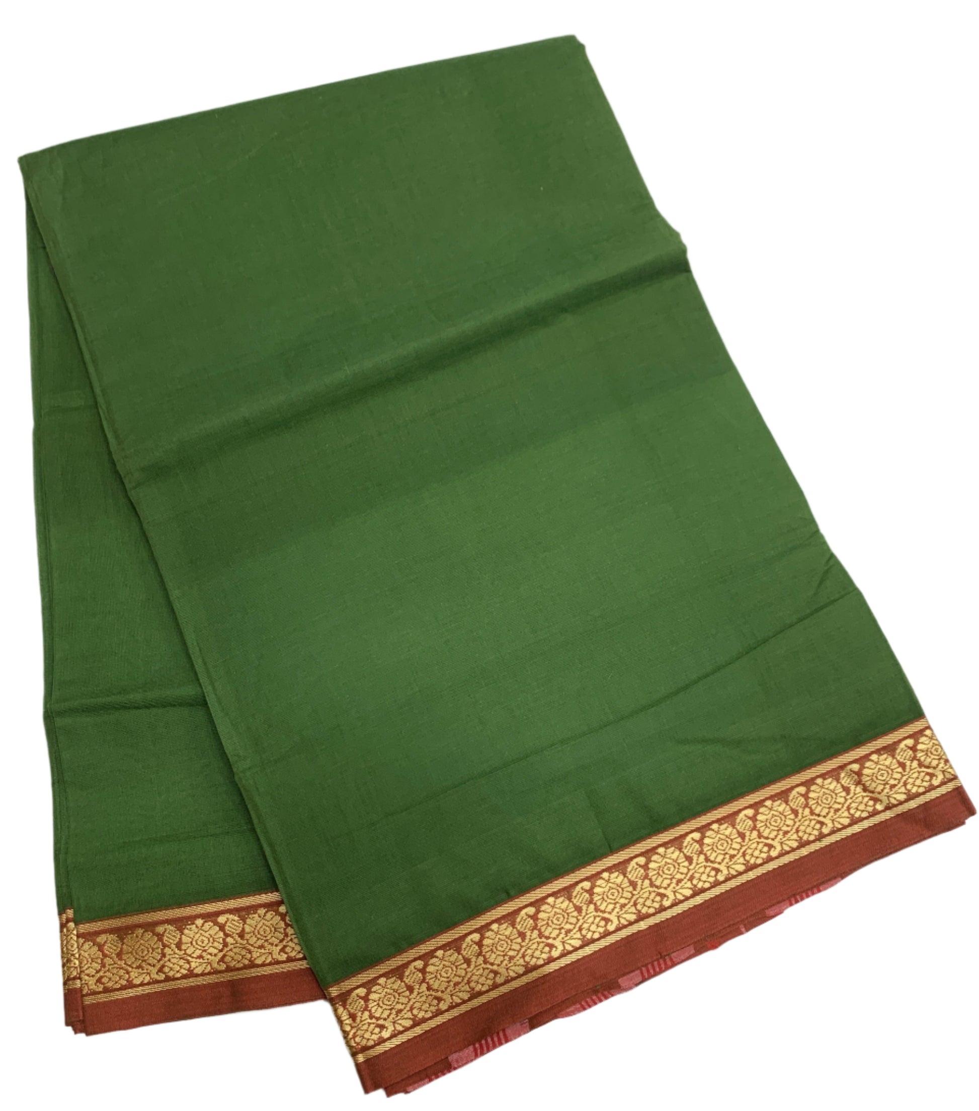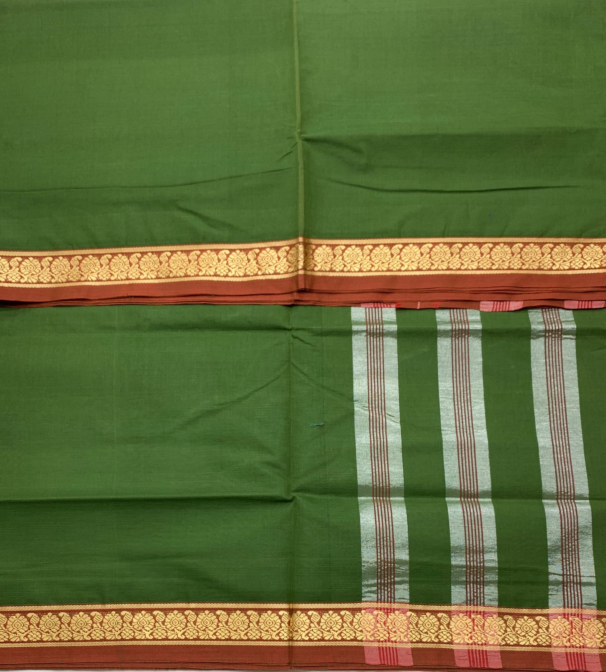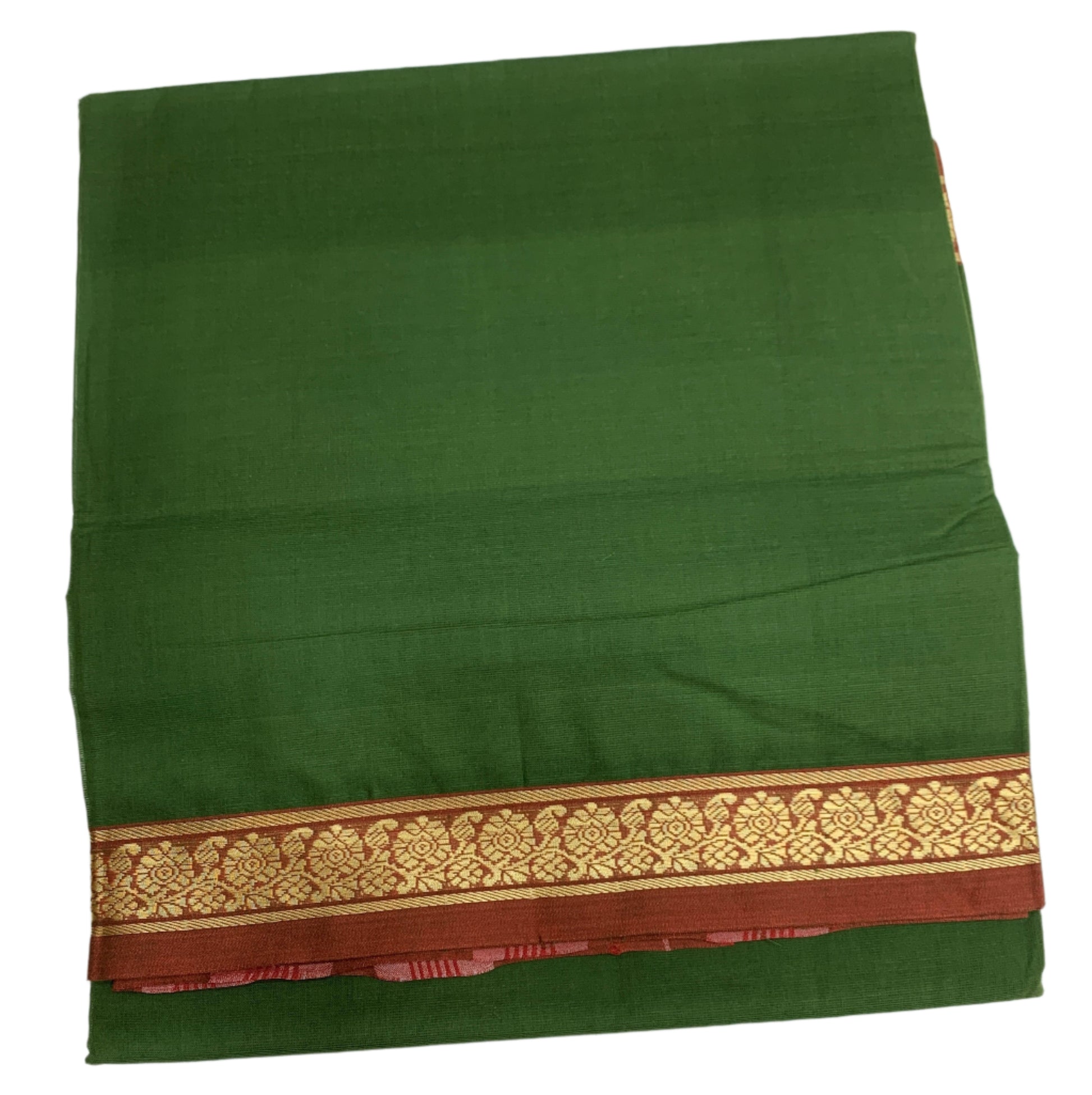 Chettinad Cotton Saree Green Colour with Maroon Border