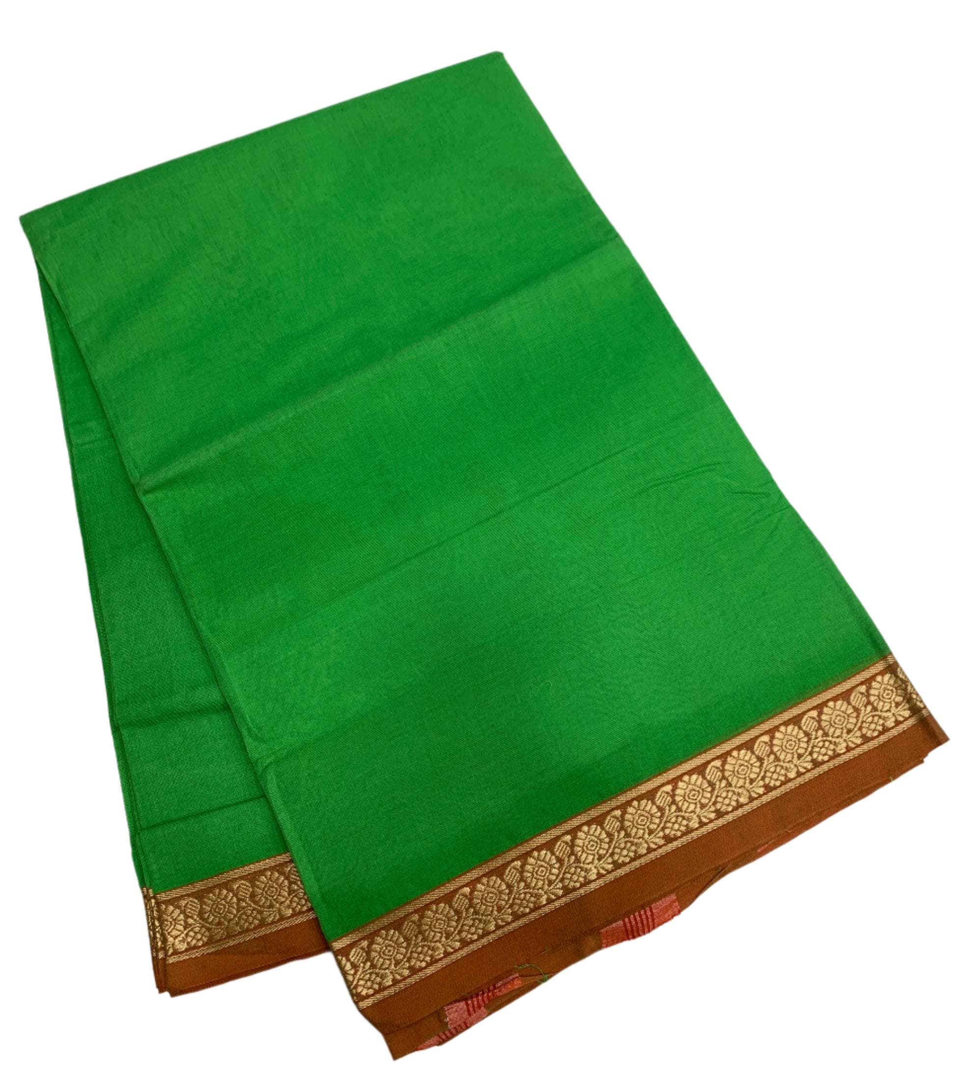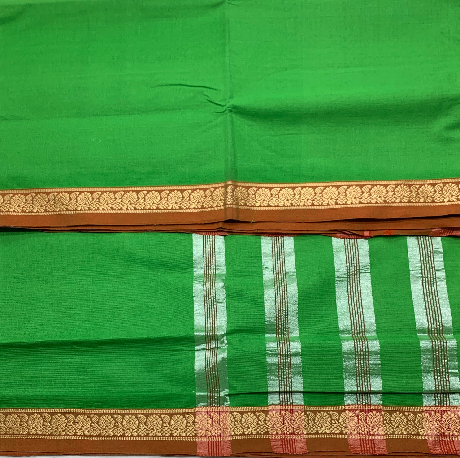 Chettinad Cotton Saree Light Green Colour with Brown Border