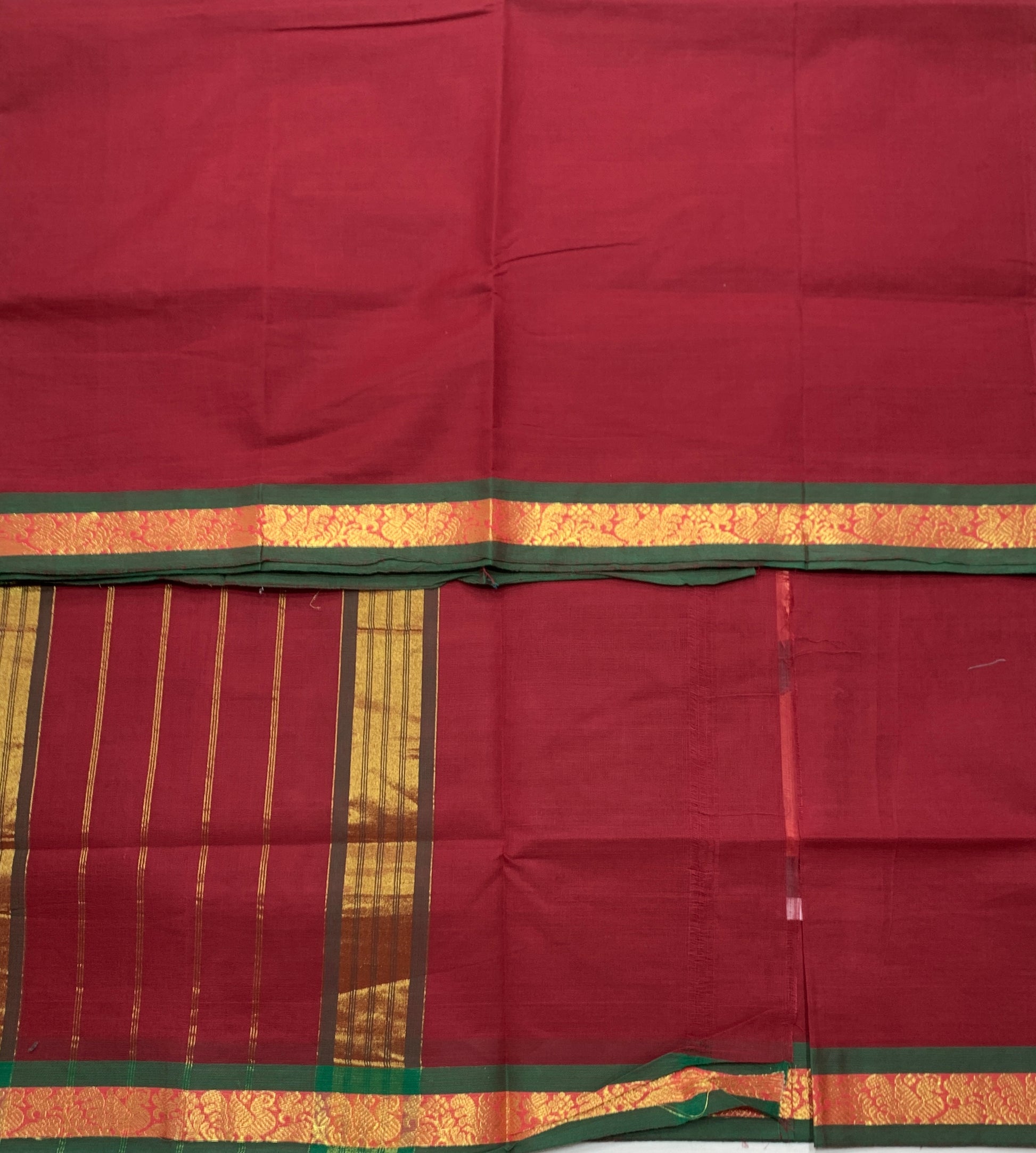 Chettinad Cotton Saree Maroon Colour with Green Border