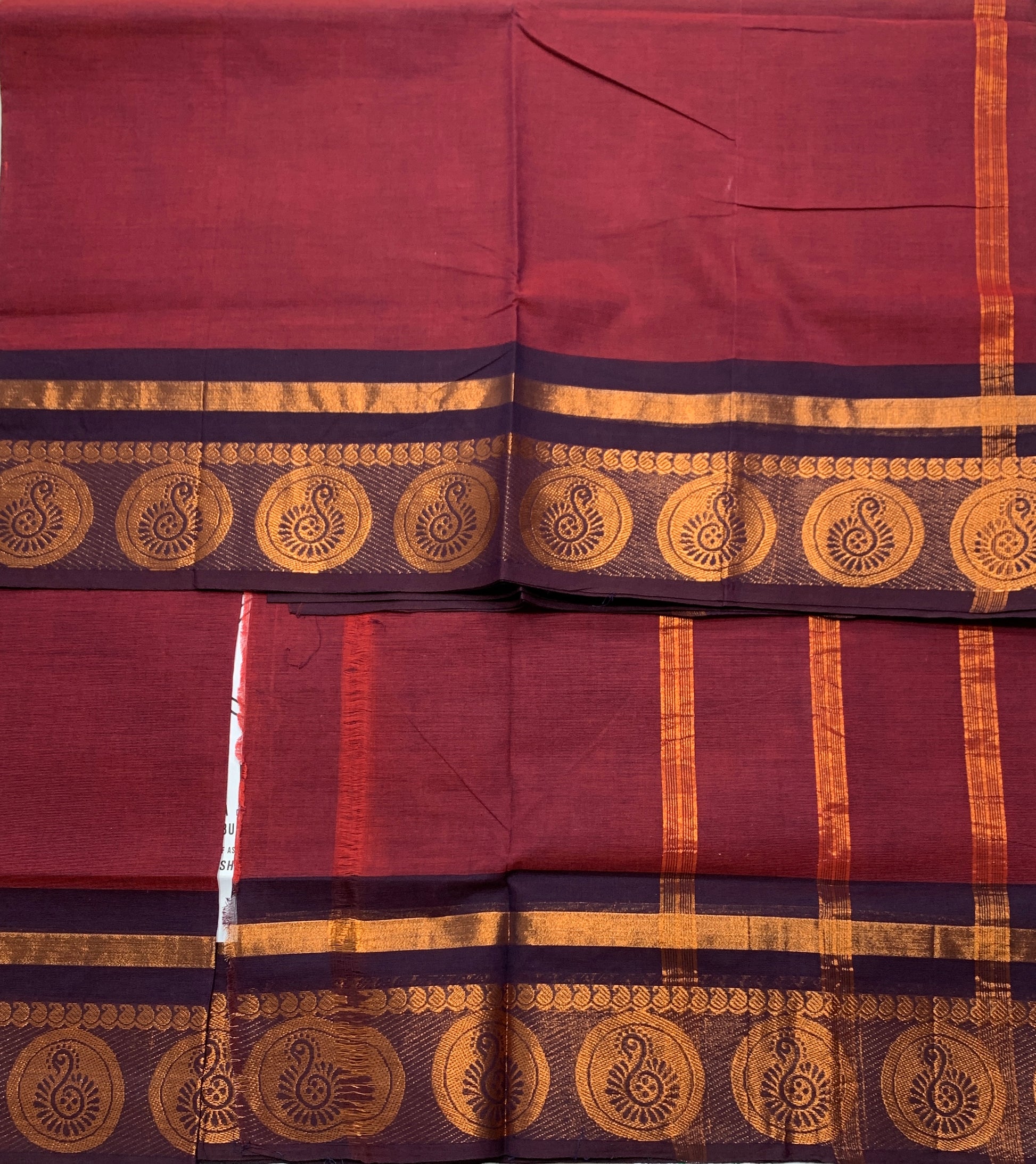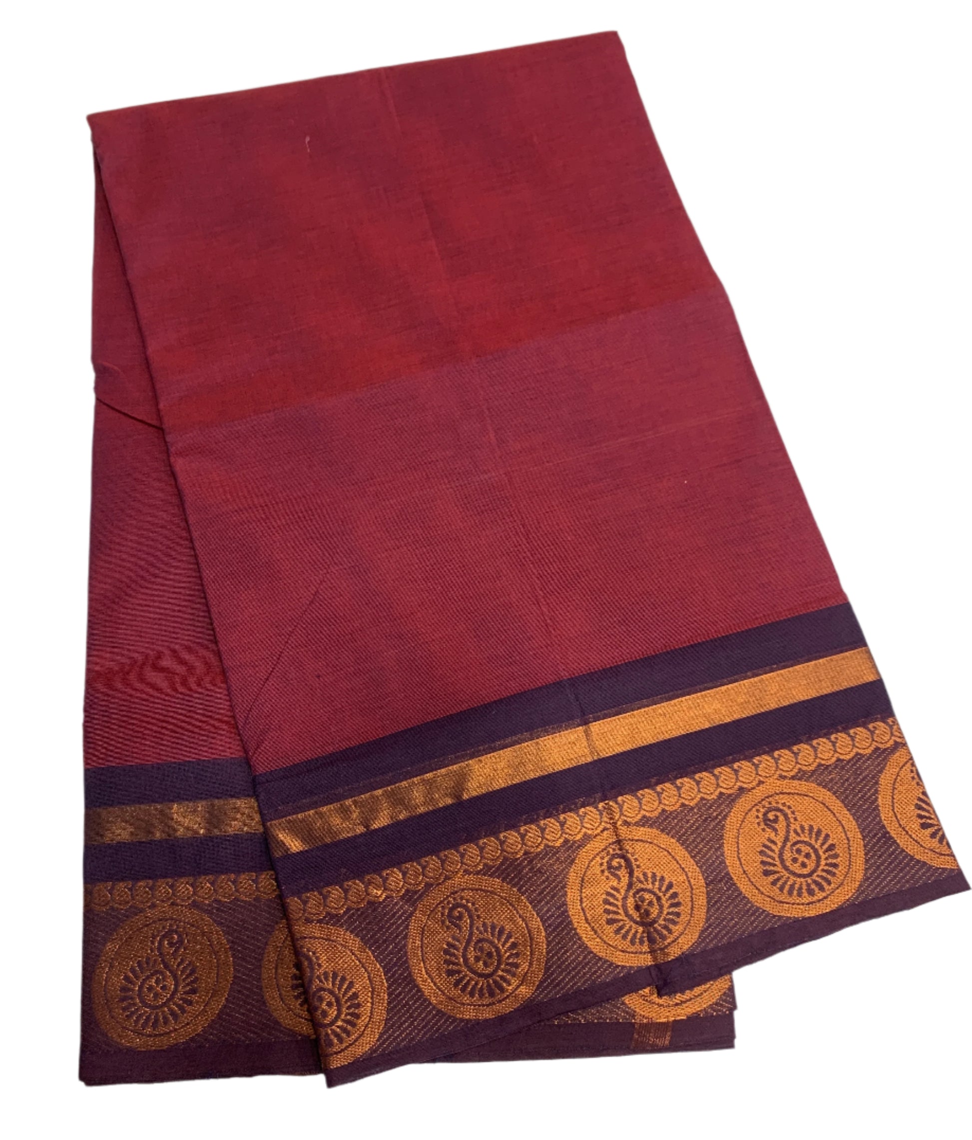 Chettinad Cotton Saree Maroon Colour with Navy Blue Border