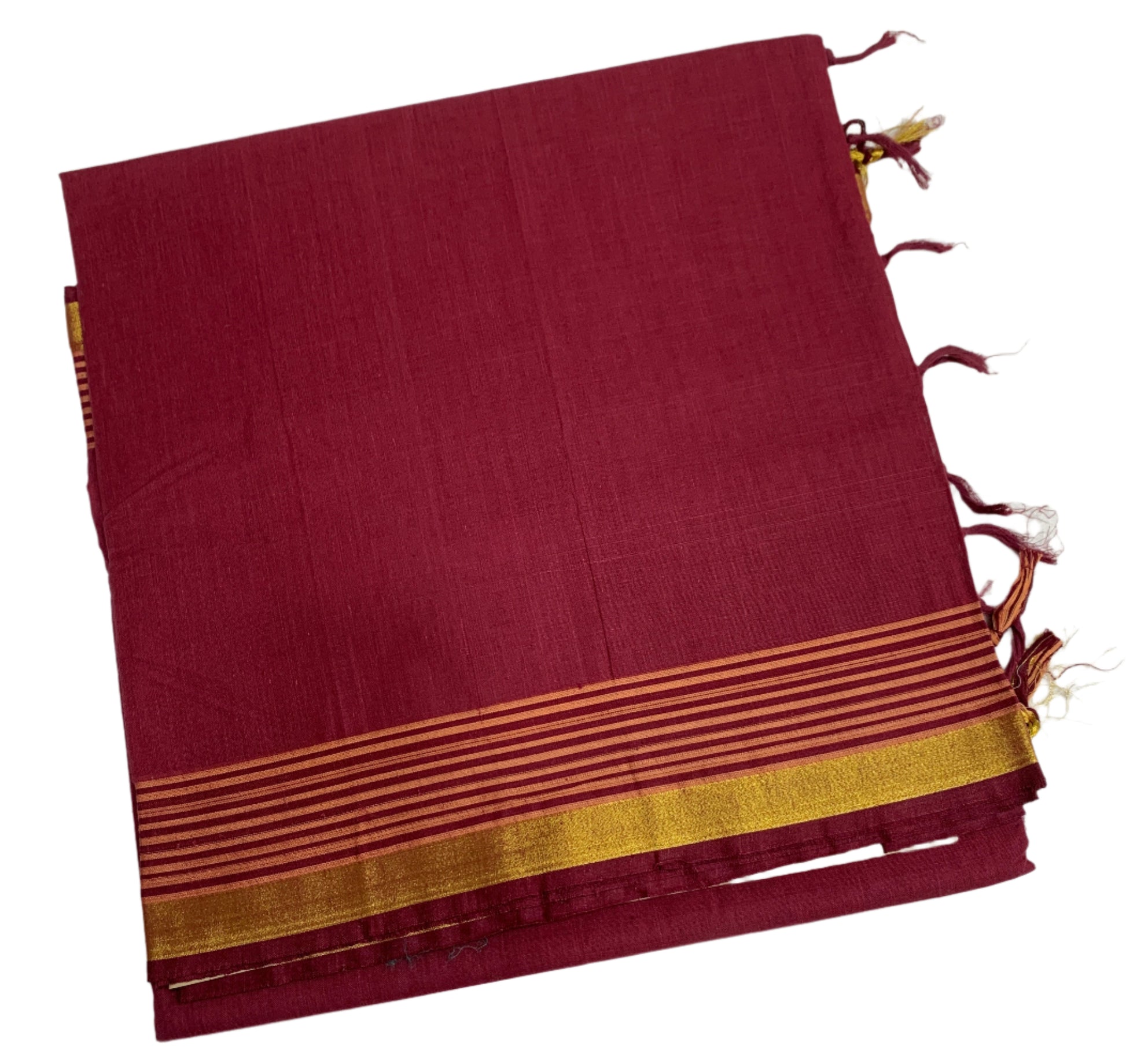 Chettinad Cotton Saree Maroon Colour with Zari Border